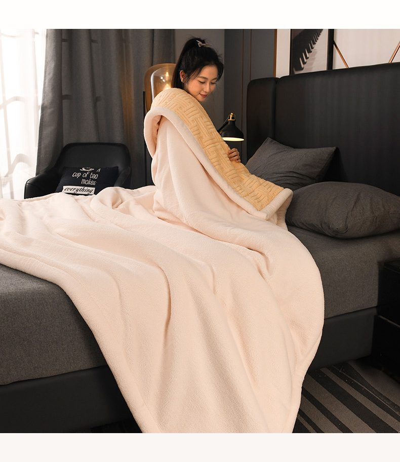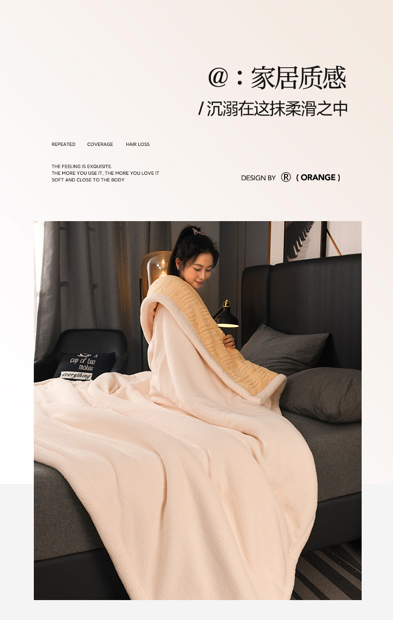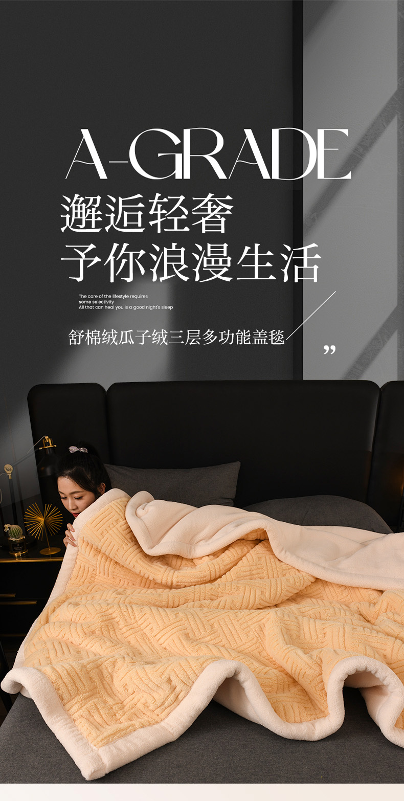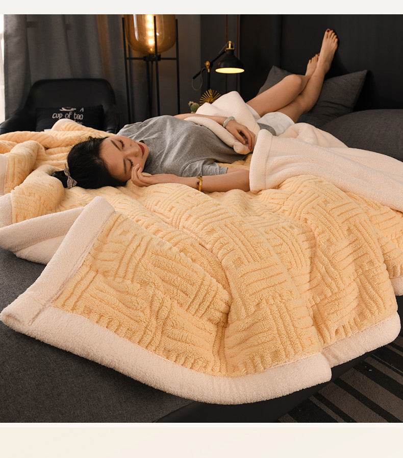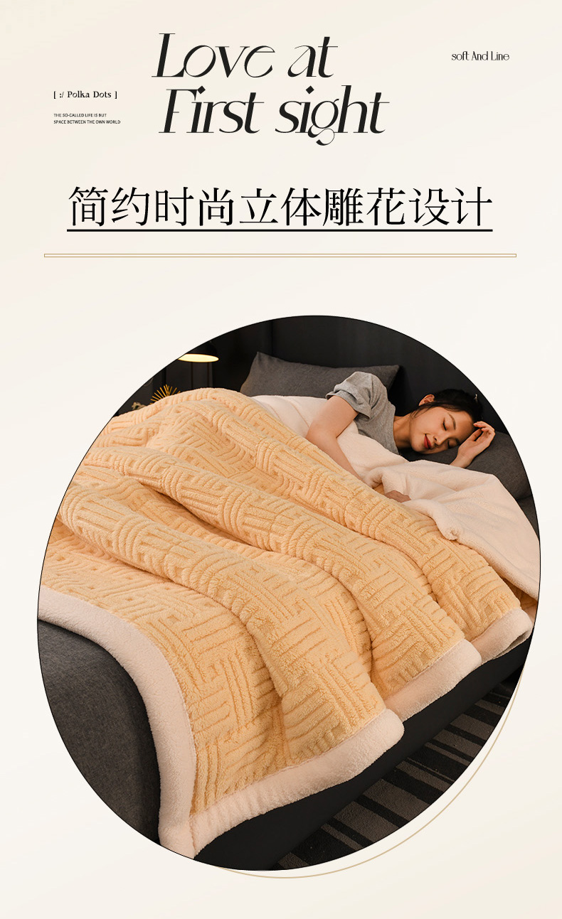 印季家纺 2025秋冬新款三层夹棉立体舒棉绒毛毯毯子多功能盖毯 柠檬黄
