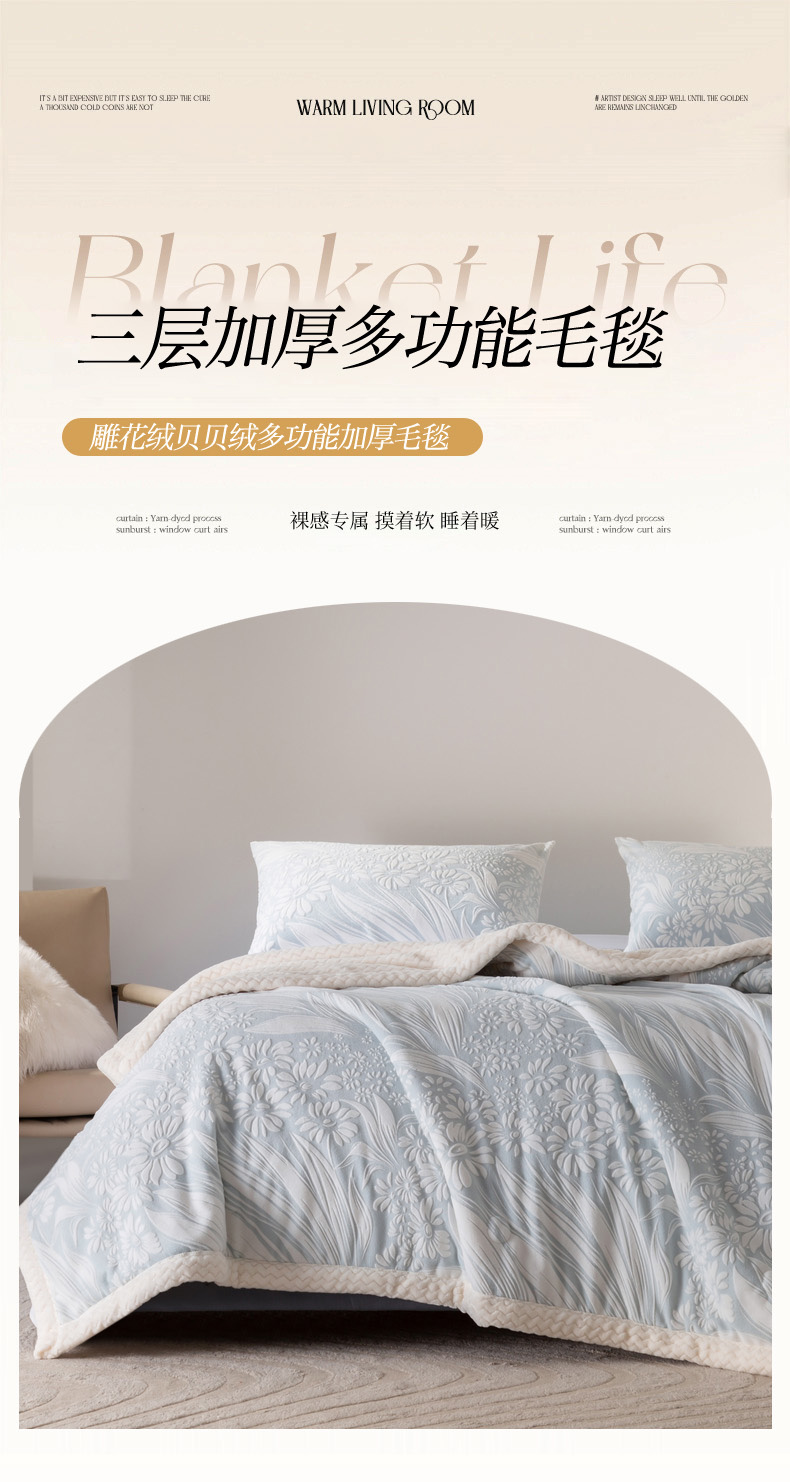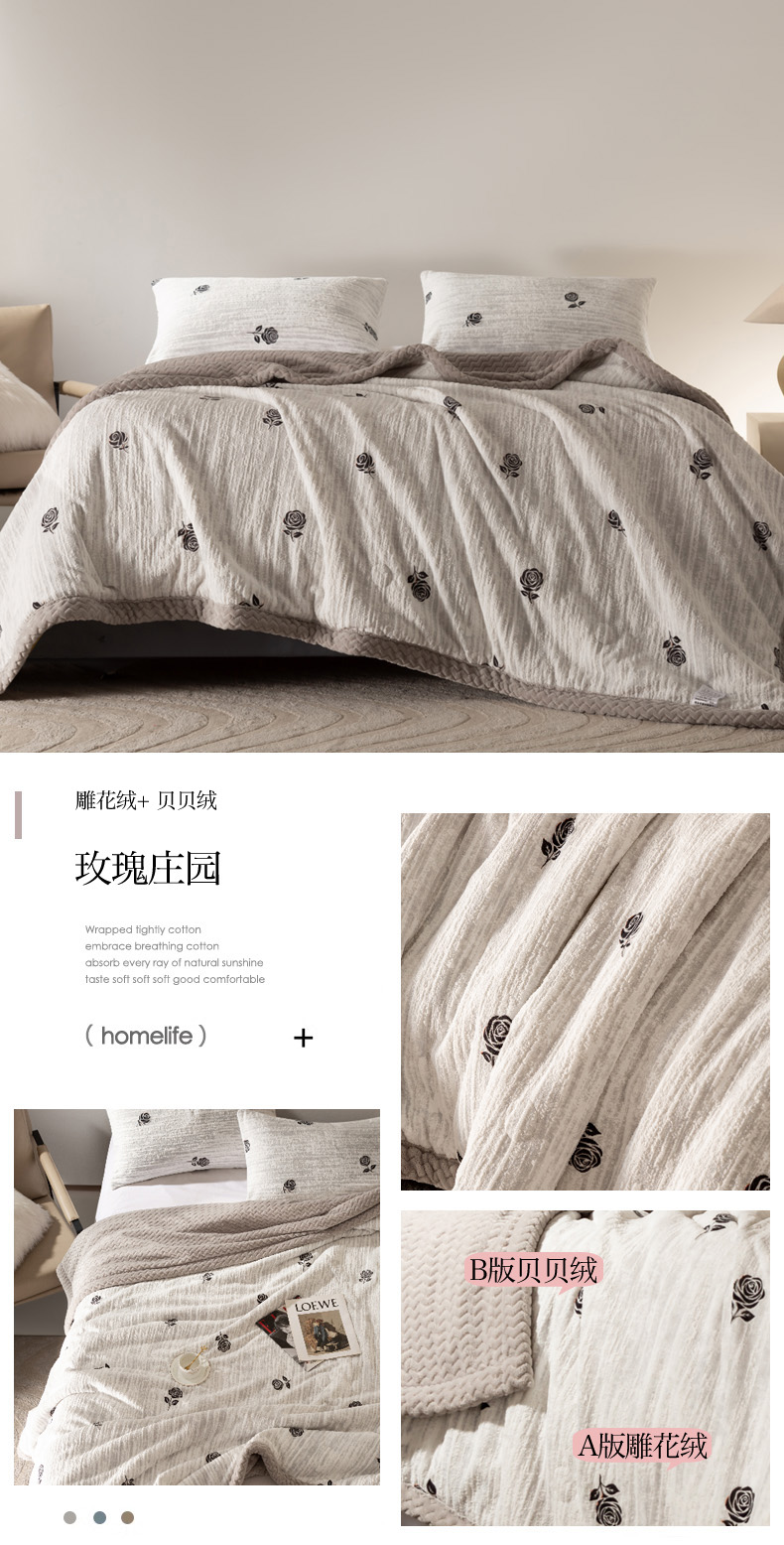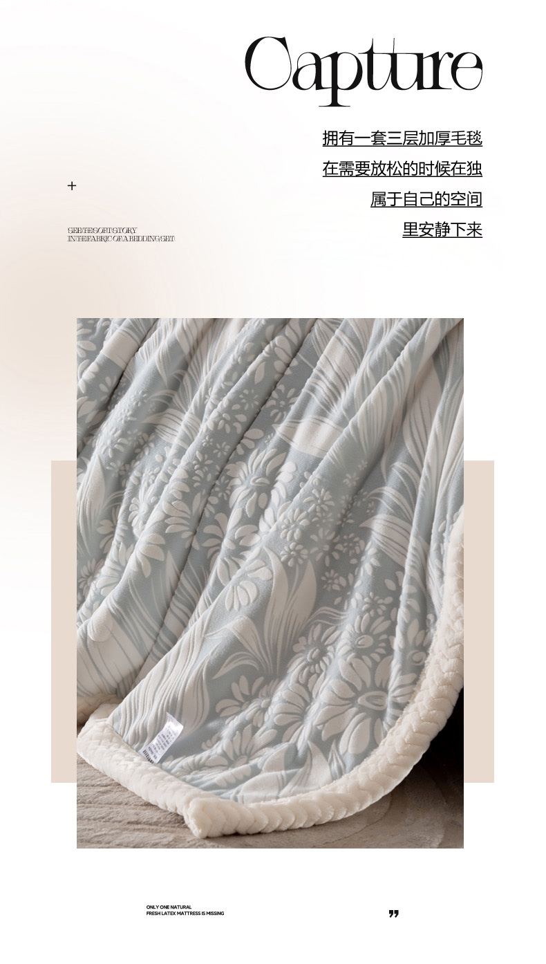 当前位置: 91家纺网 > 商品网购 > 毛毯休闲毯绒毯 > 毛毯 > 印季家纺 2025新款三层夹棉花卉款-雕花绒毛毯毯子多功能盖毯 雕花绒+羊羔绒-一叶知秋-灰色