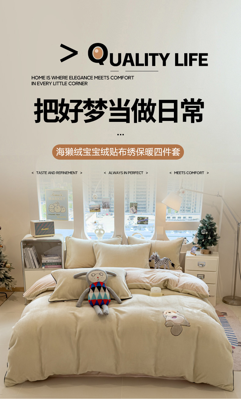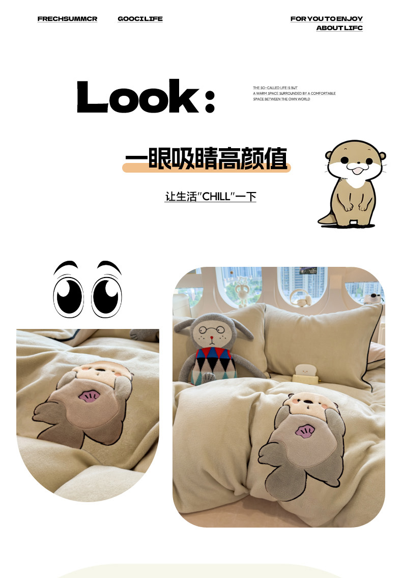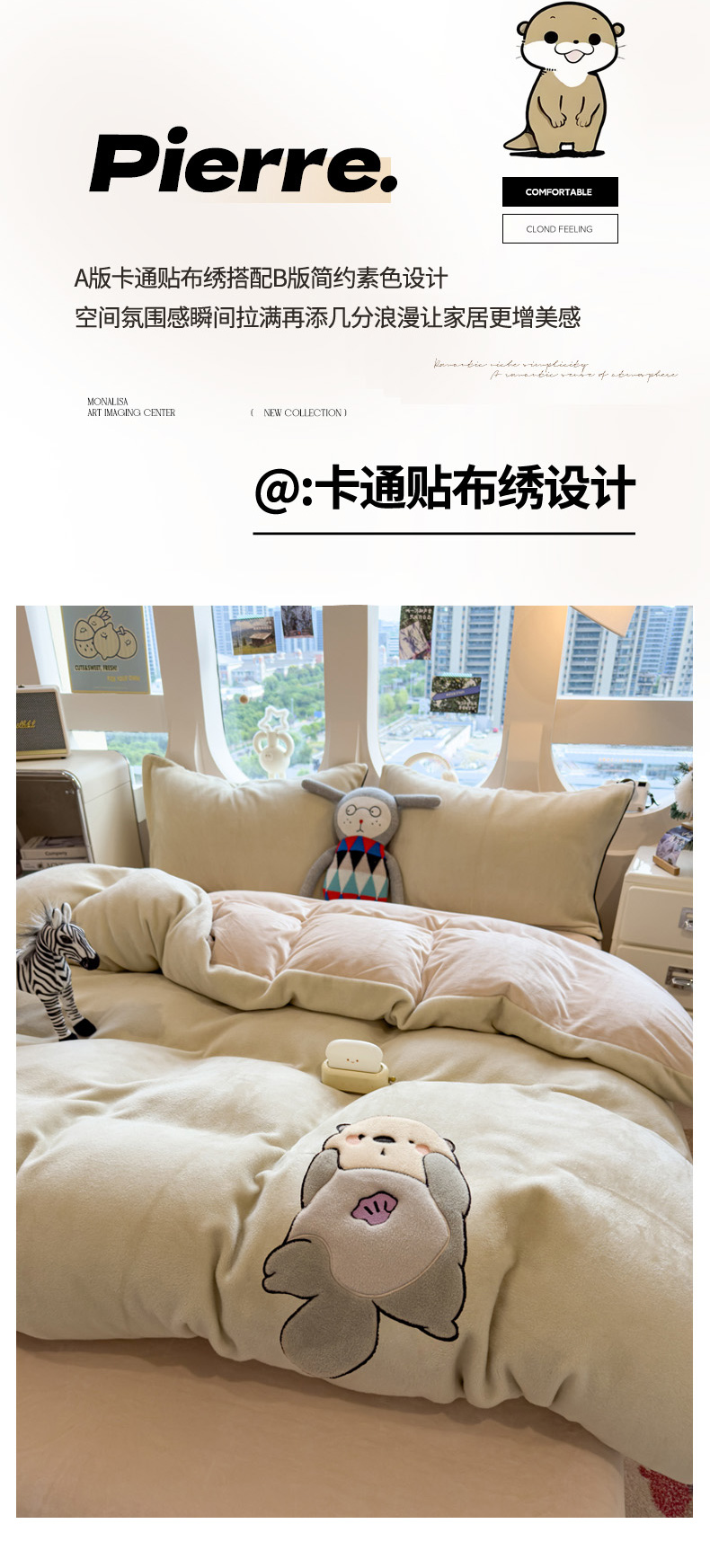 (总)印季家纺 2025新款大肚腩-海獭绒贴布绣四件套