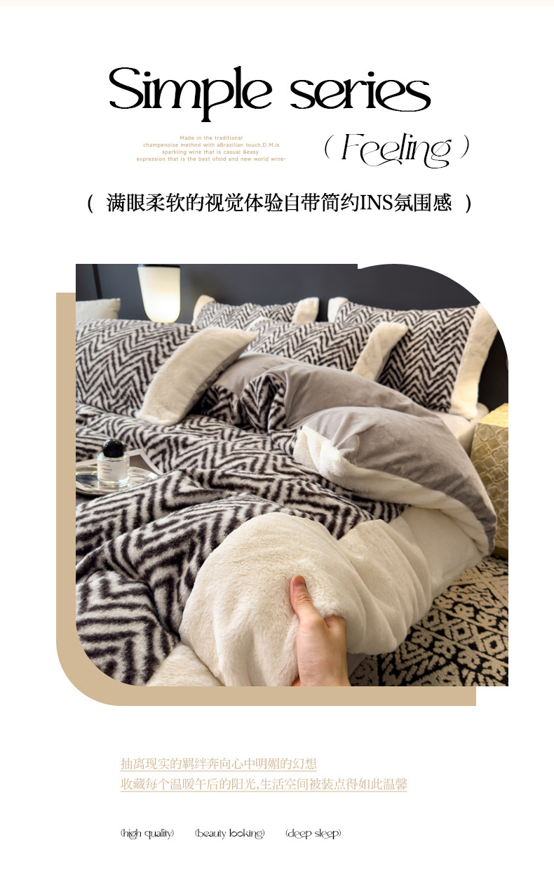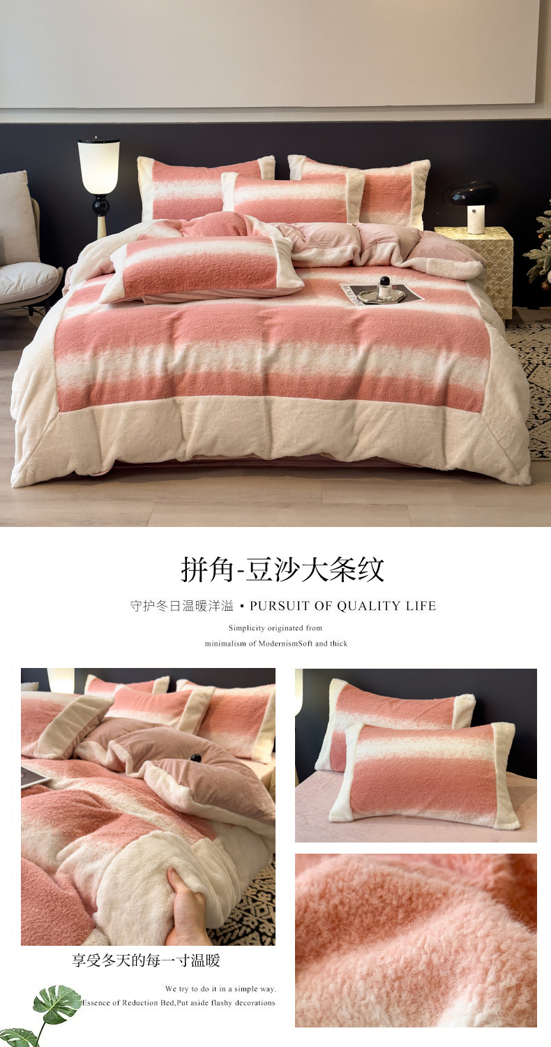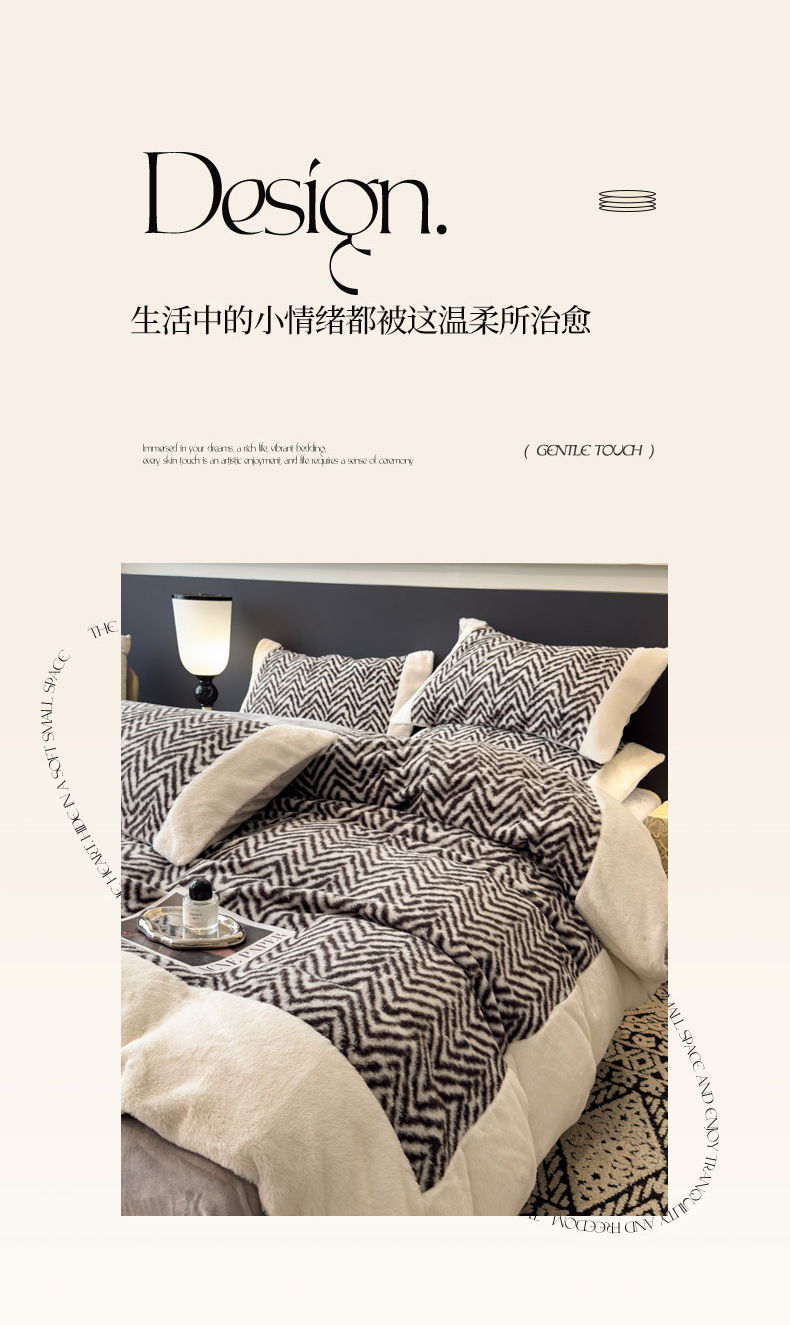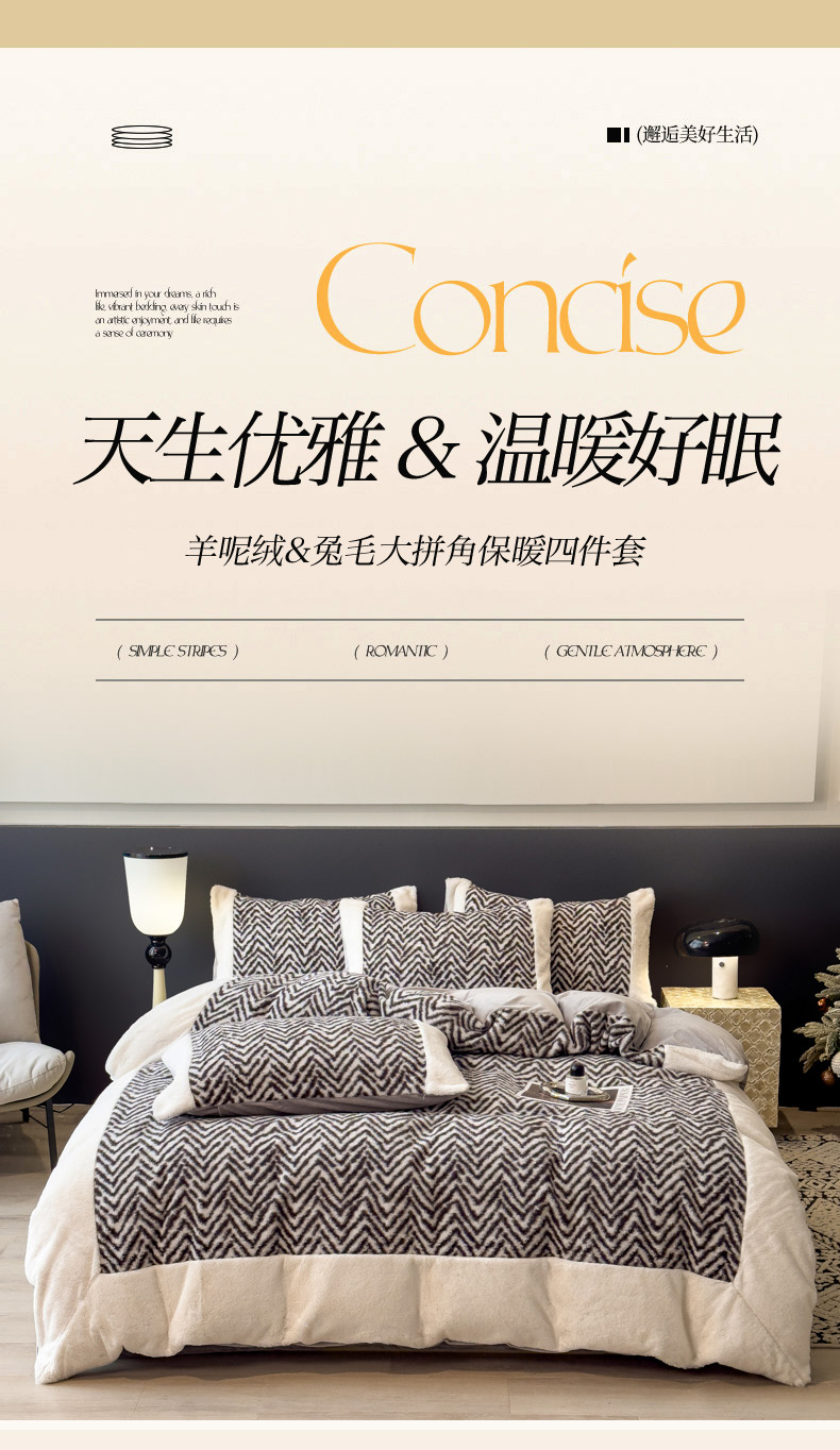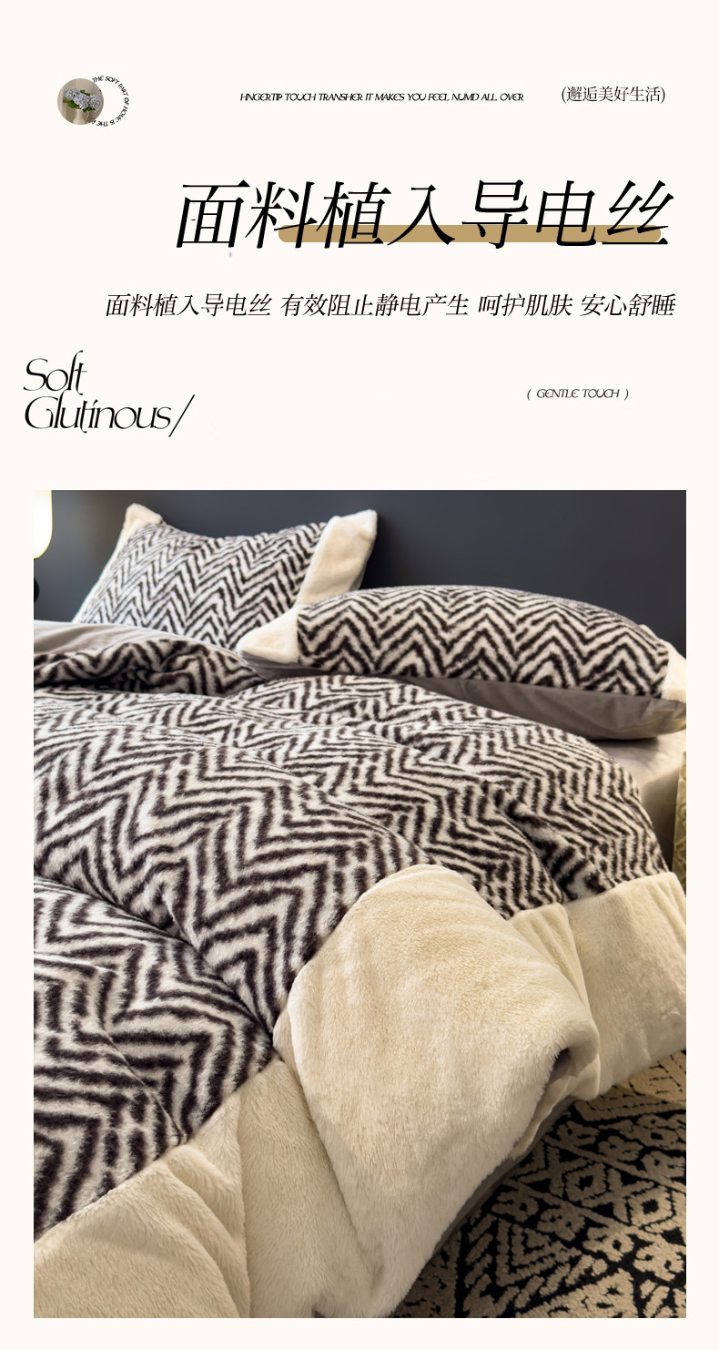 当前位置: 91家纺网 > 商品网购 > 床品套件 > 四件套 > 其它四件套 > 印季家纺 2025新款羊呢绒兔毛大拼角四件套 拼角-灰色波浪