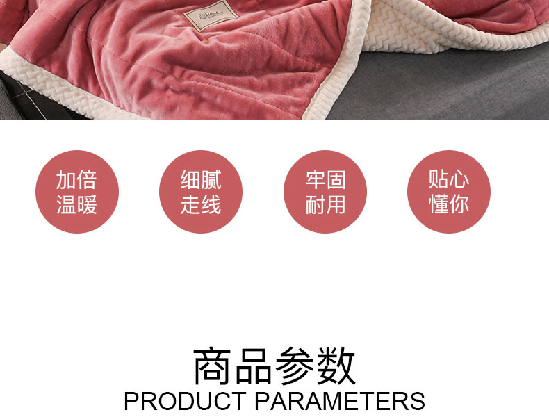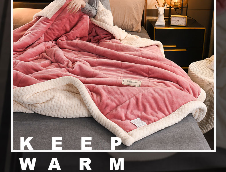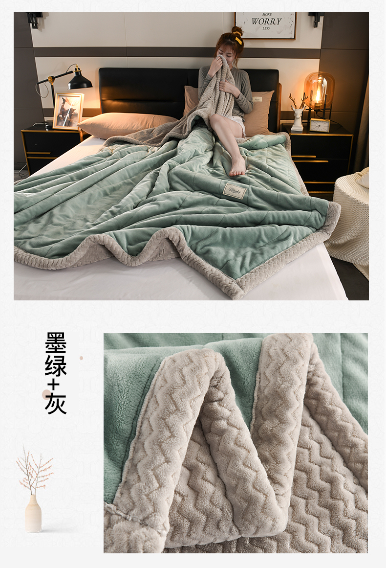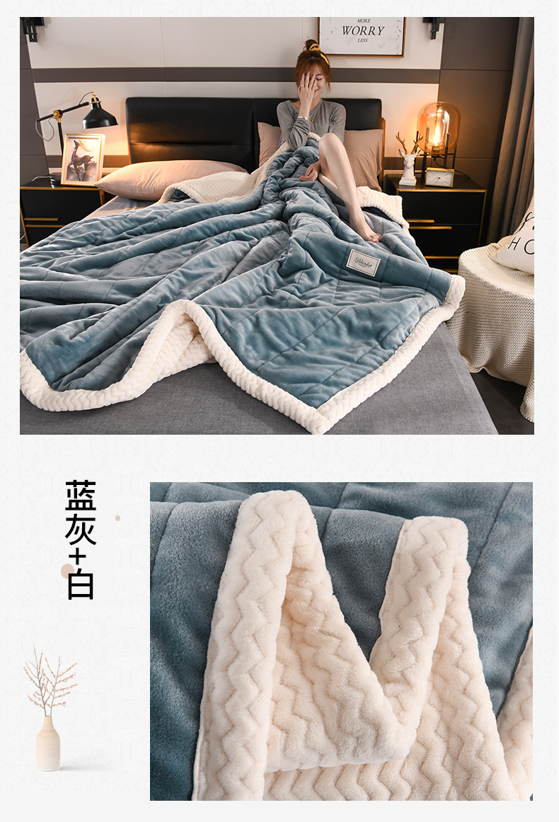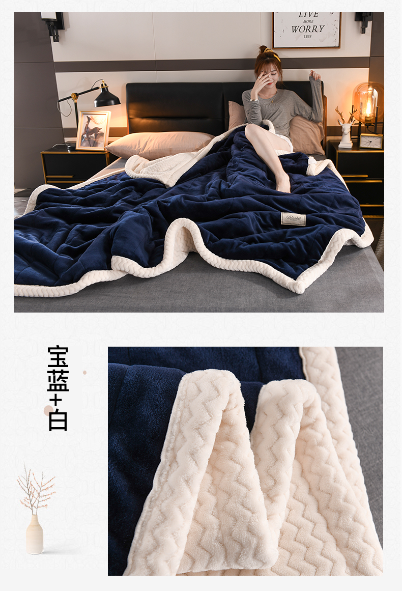 印季家纺 2025秋冬新款三层夹棉加厚复合贝贝绒毛毯毯子多功能盖毯 宝蓝+白
