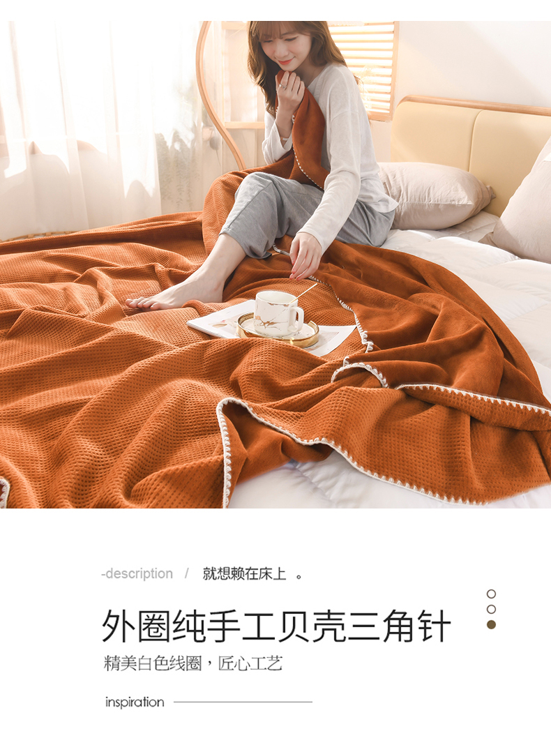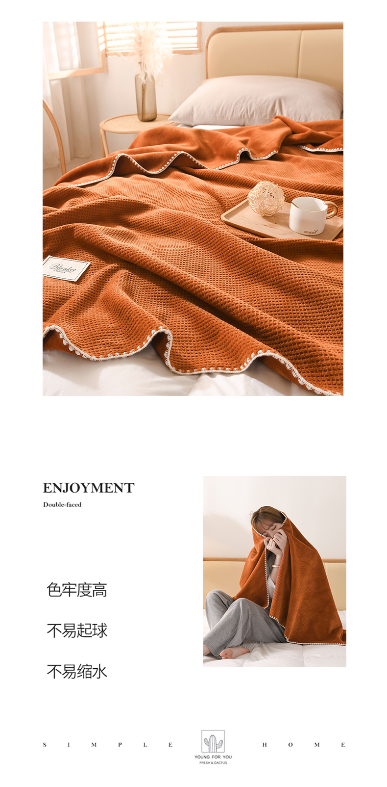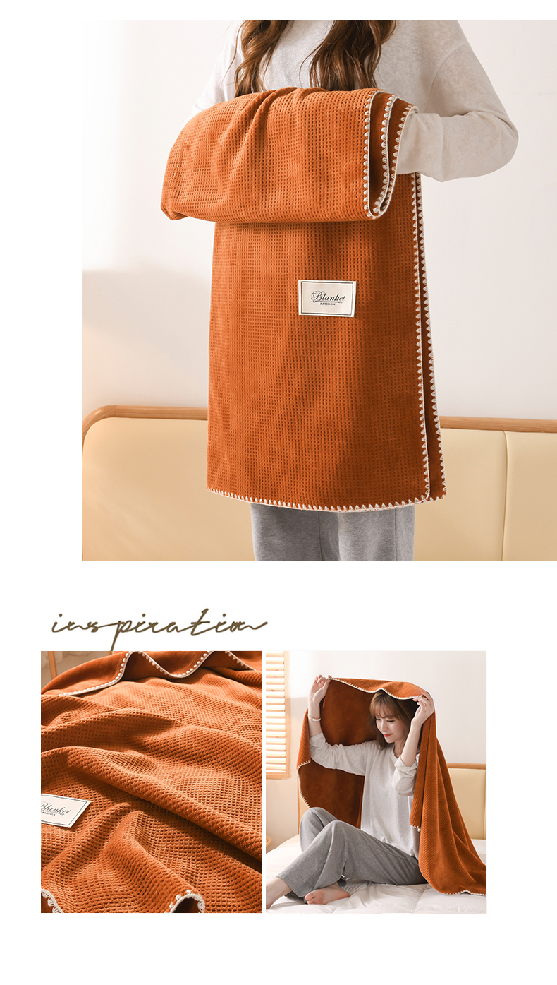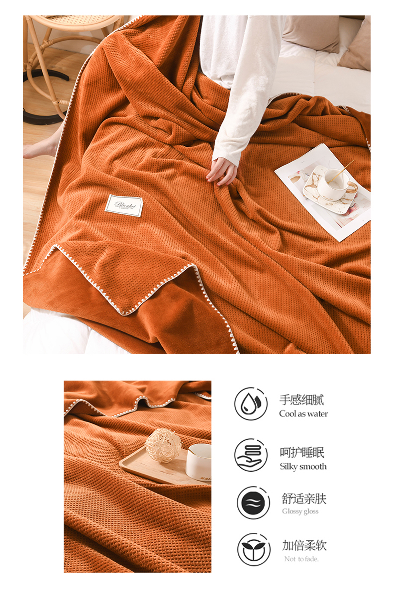 印季家纺 2025新款华夫格牛奶绒复合毛毯毯子 华夫格-橘黄