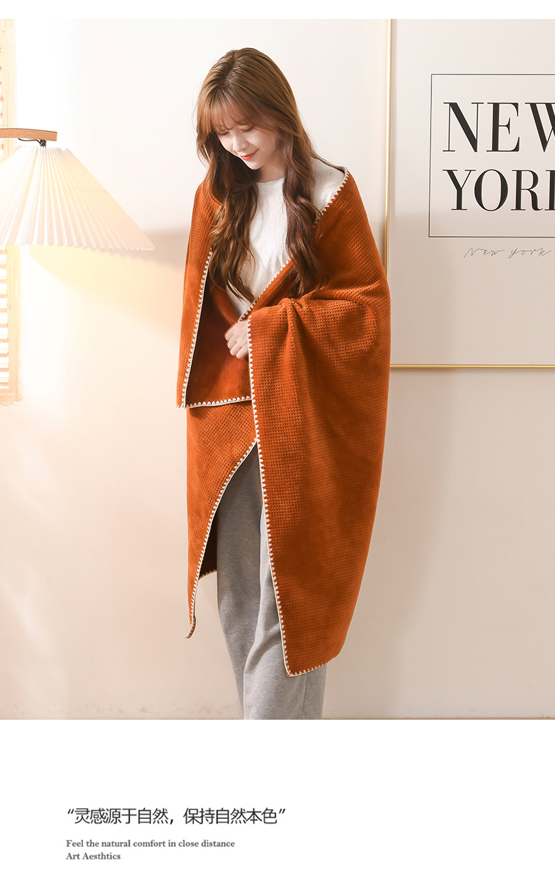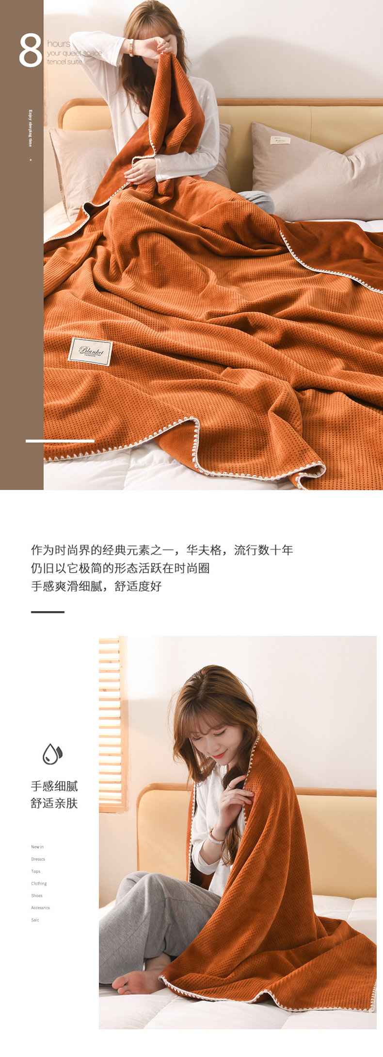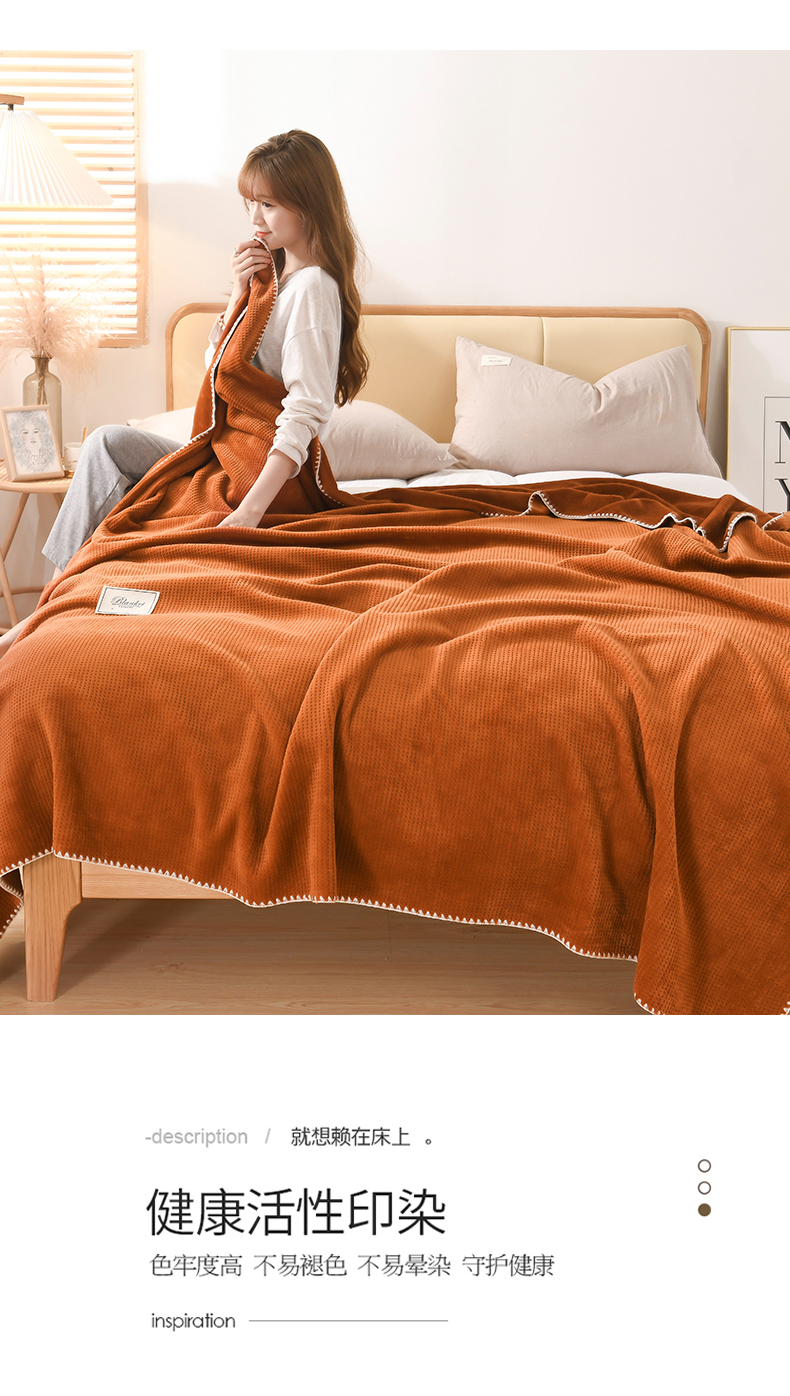 商品名称:印季家纺 2025新款华夫格牛奶绒复合毛毯毯子 华夫格-橘黄