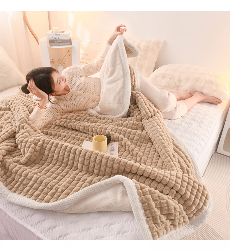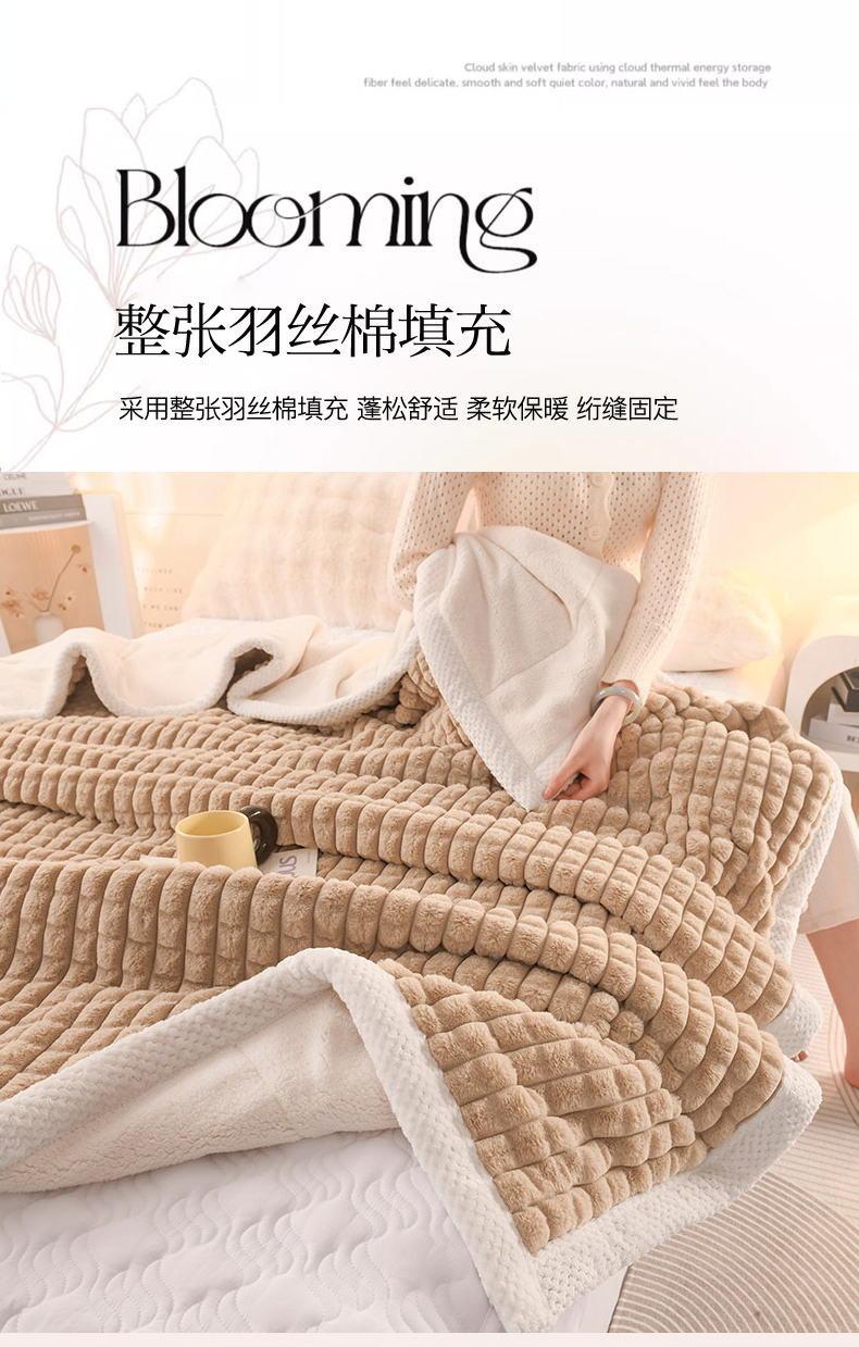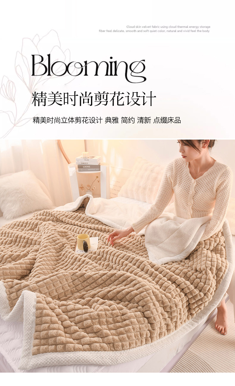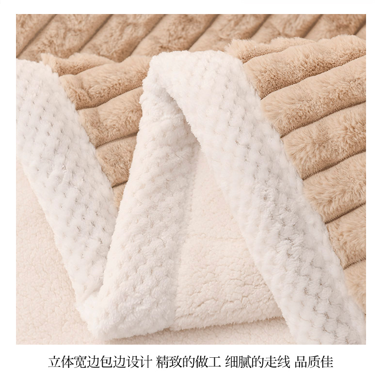 印季家纺 2025新款三层夹棉立体剪花兔毛绒毛毯毯子多功能盖毯-亮场景 驼色
