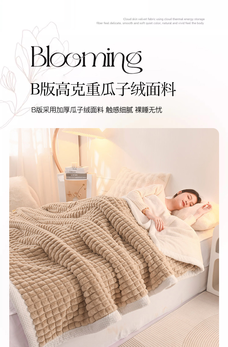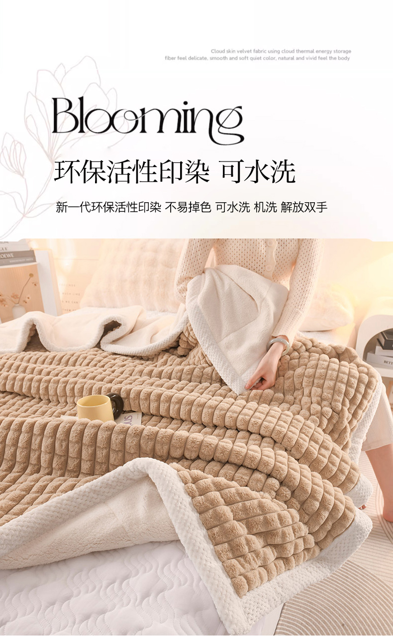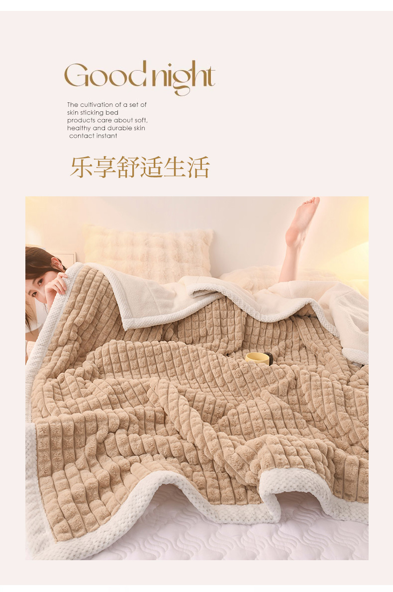 印季家纺 2025新款三层夹棉立体剪花兔毛绒毛毯毯子多功能盖毯-亮场景 驼色