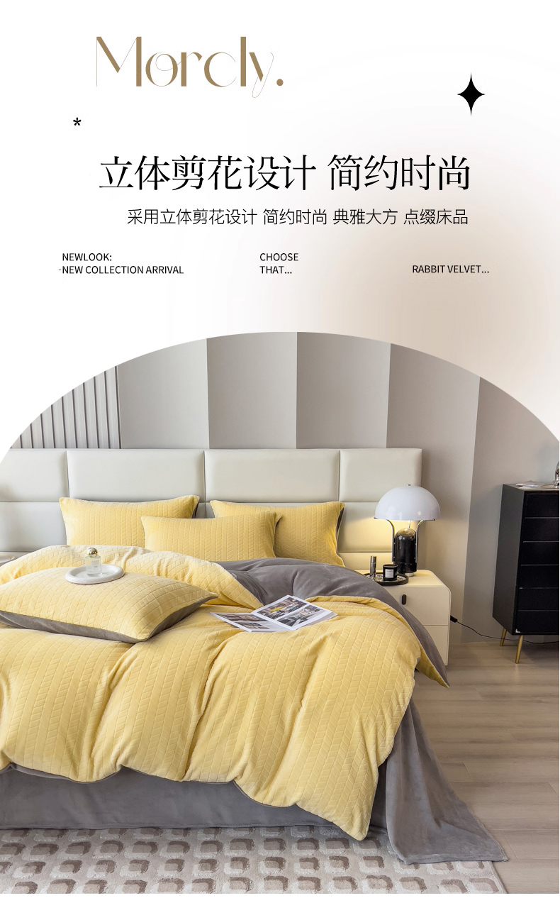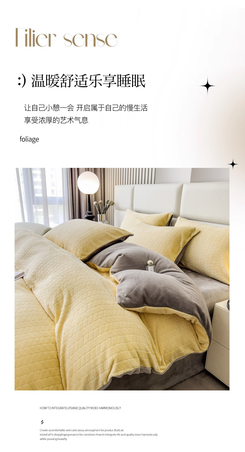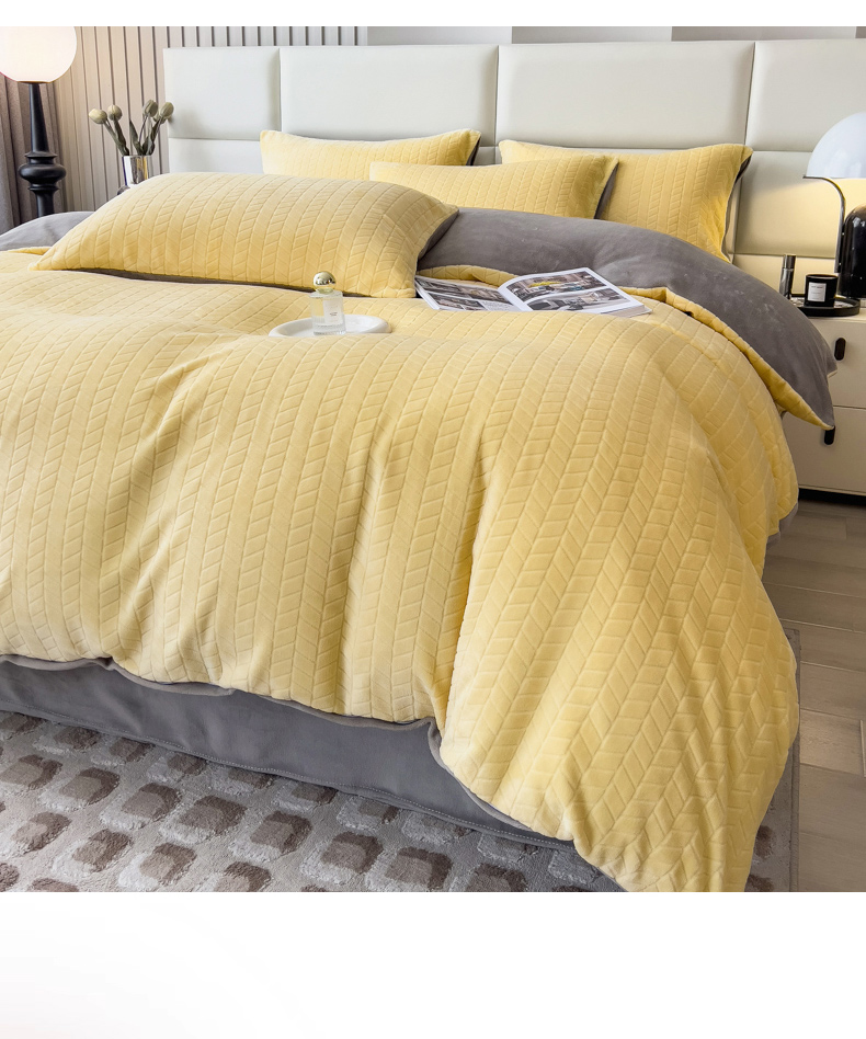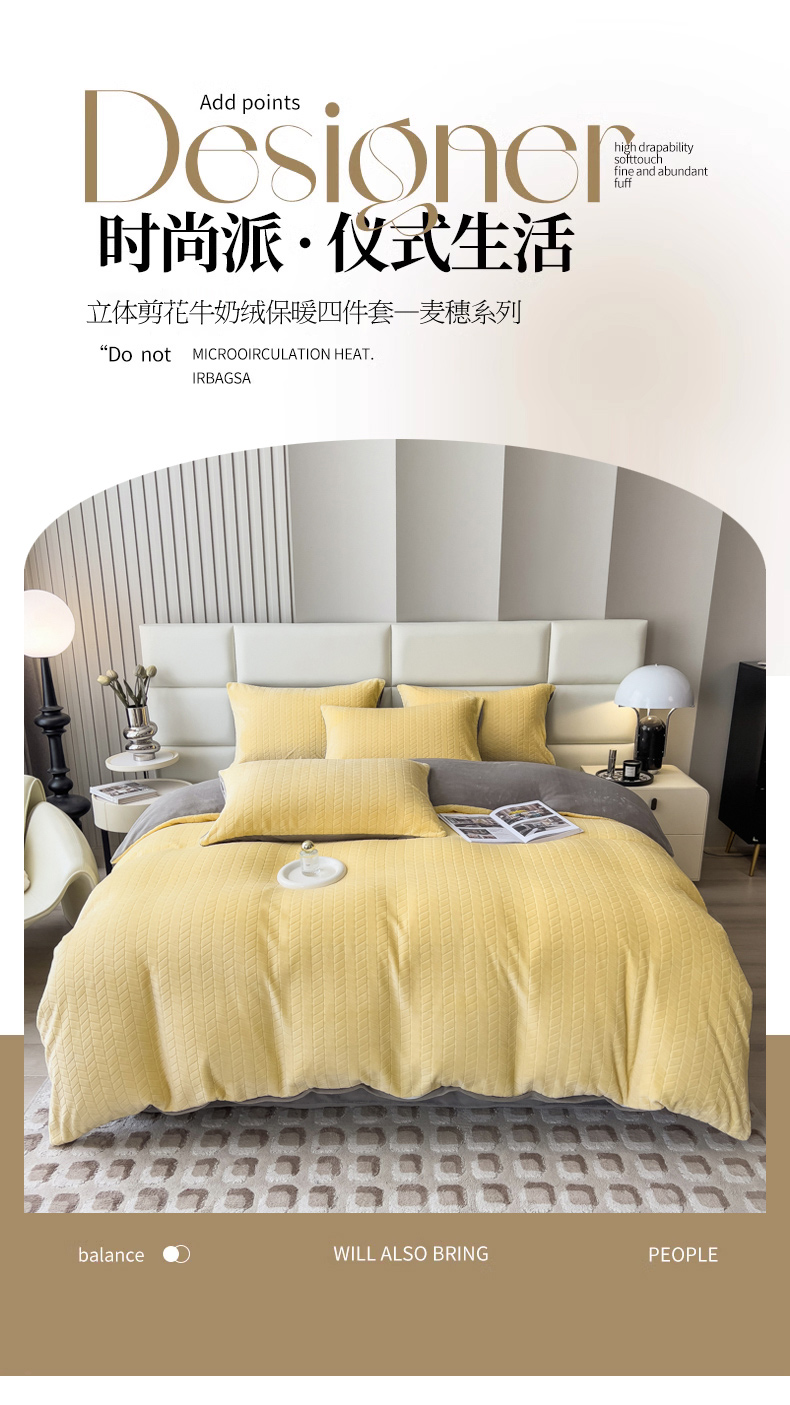 当前位置: 91家纺网 > 商品网购 > 床品套件 > 四件套 > 牛奶绒四件套 > 印季家纺 2025新款立体剪花麦穗牛奶绒四件套 亮黄-灰