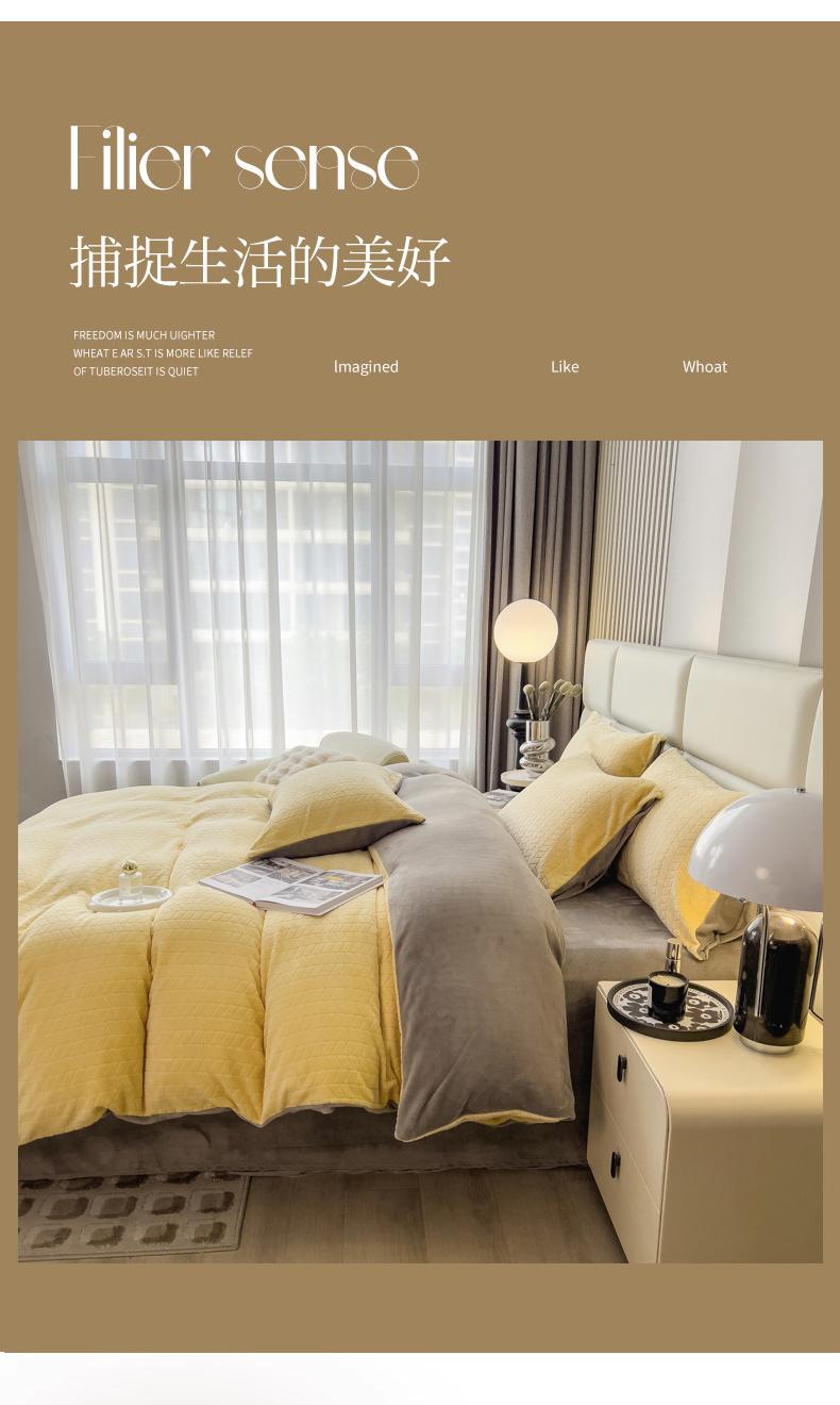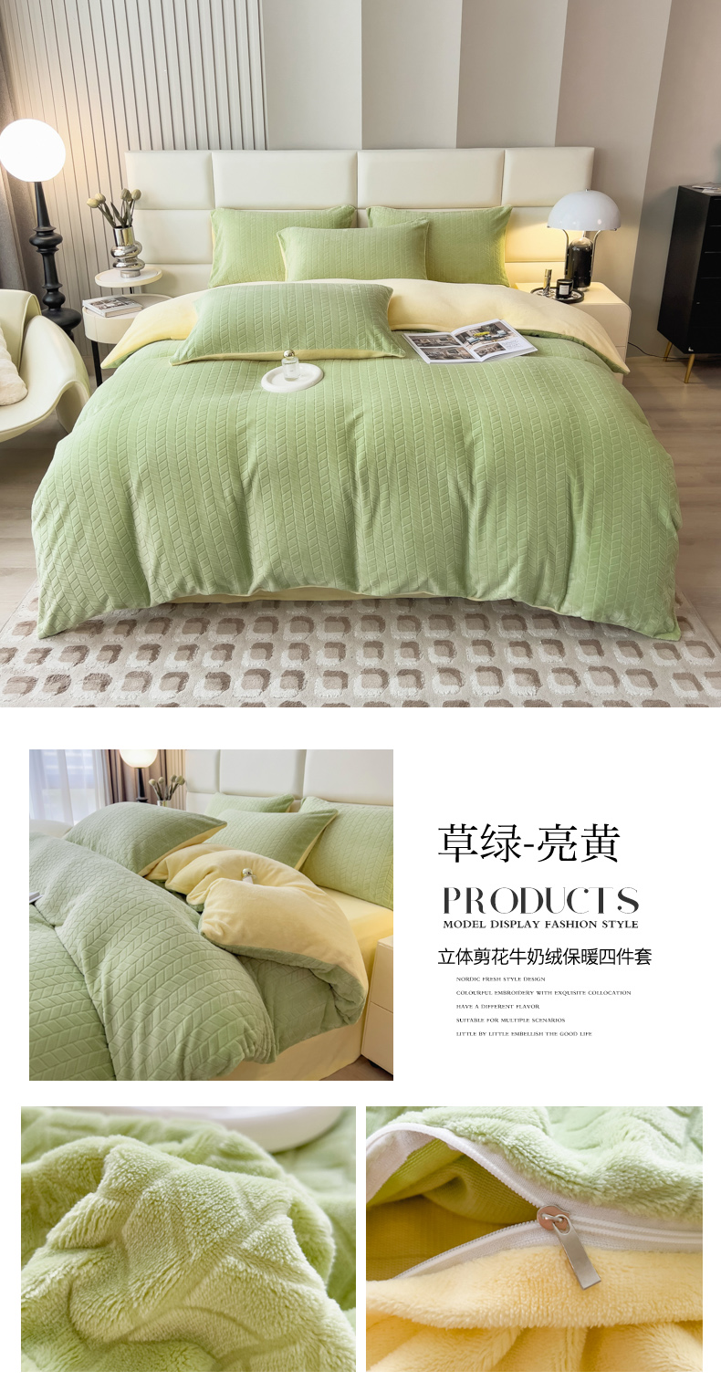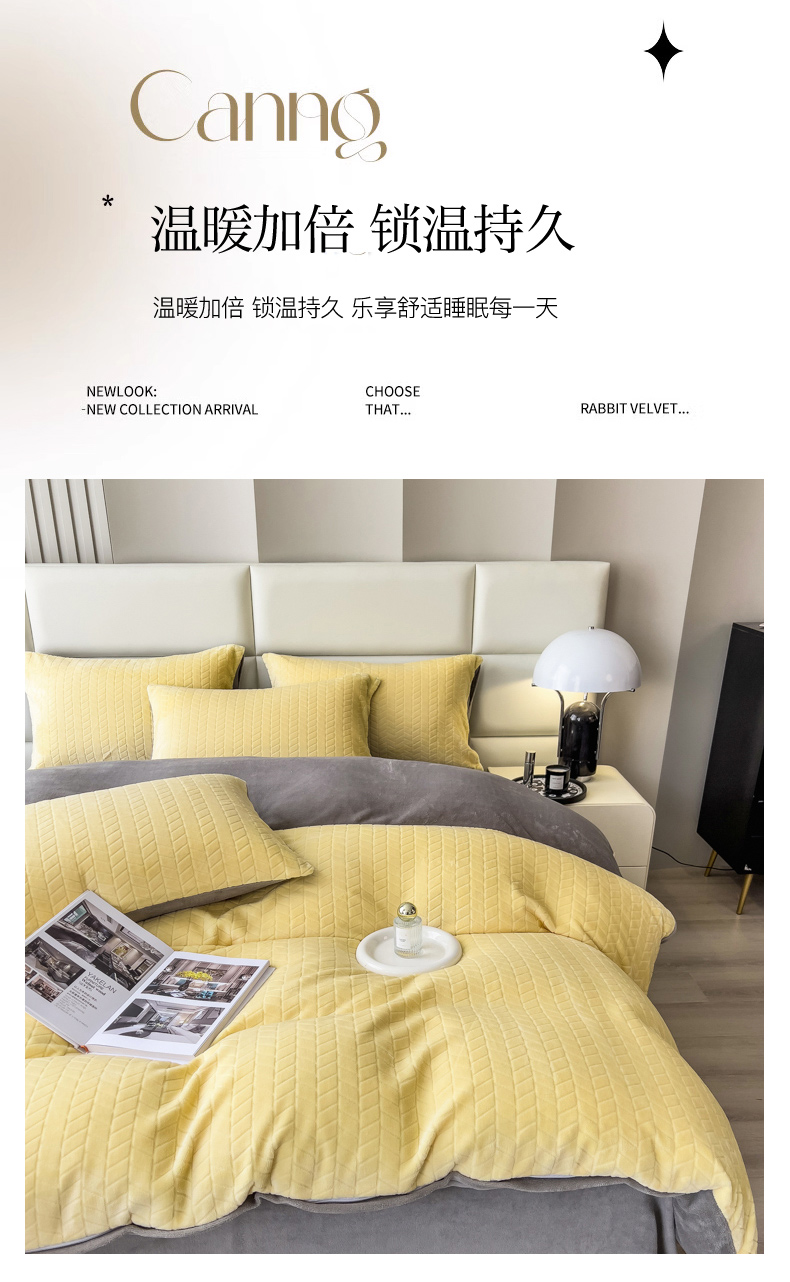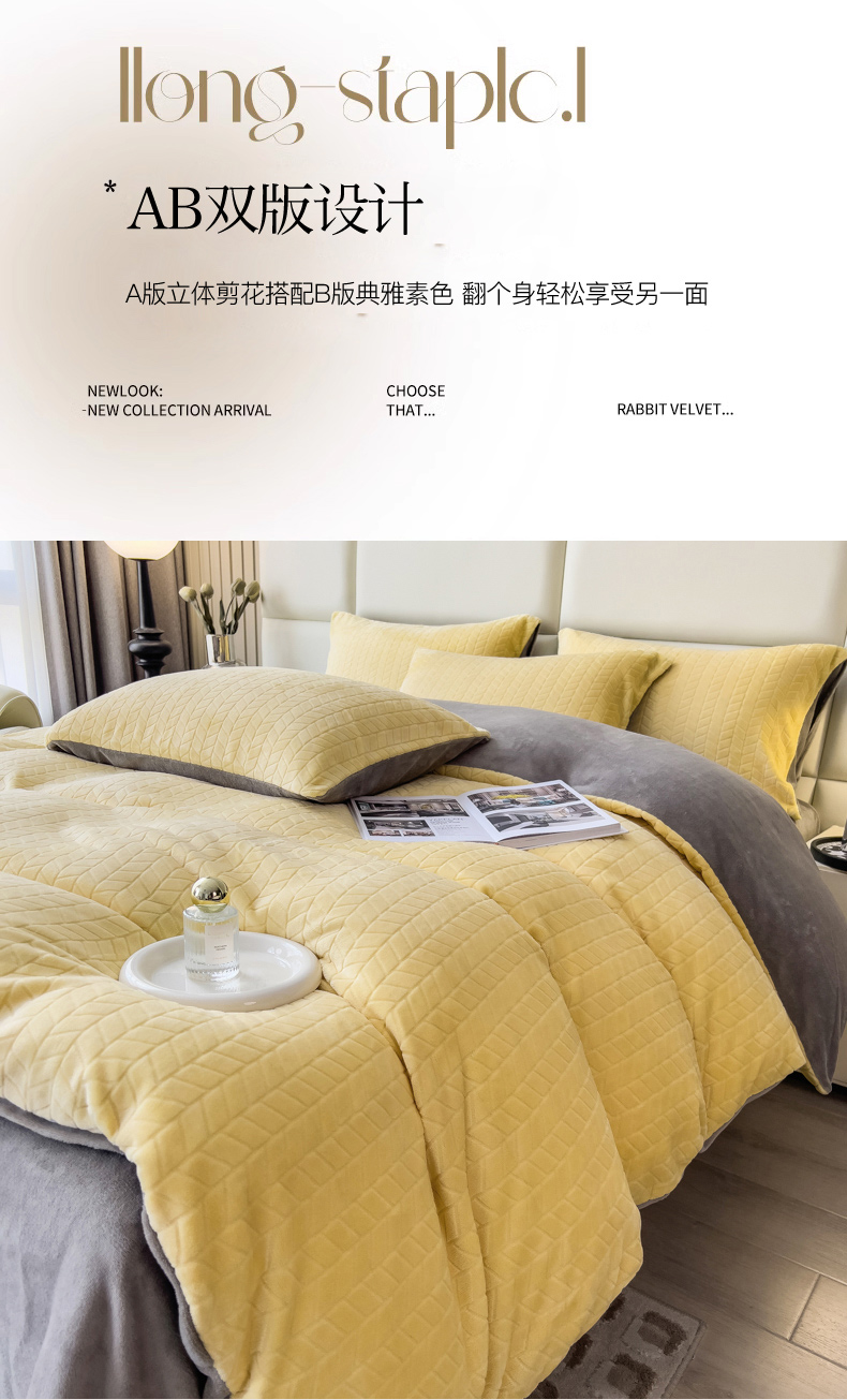 当前位置: 91家纺网 > 商品网购 > 床品套件 > 四件套 > 牛奶绒四件套 > 印季家纺 2025新款立体剪花麦穗牛奶绒四件套 亮黄-灰