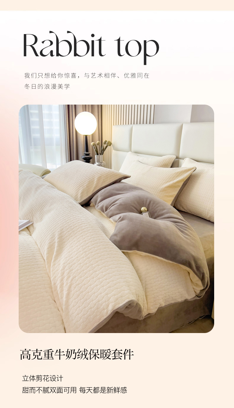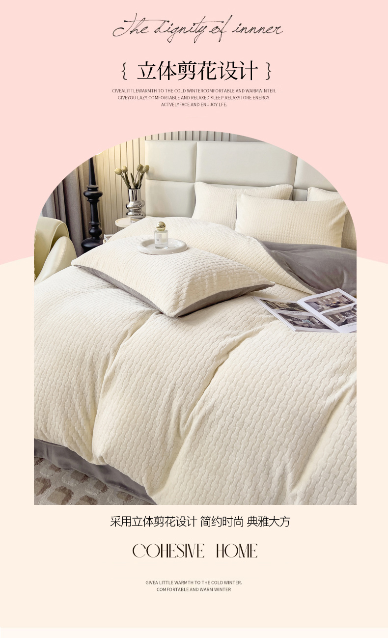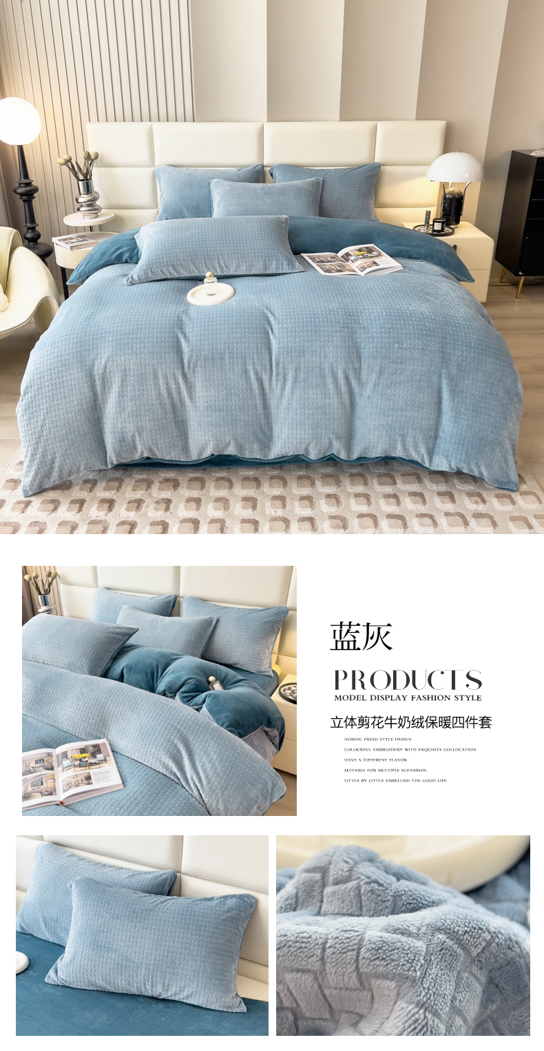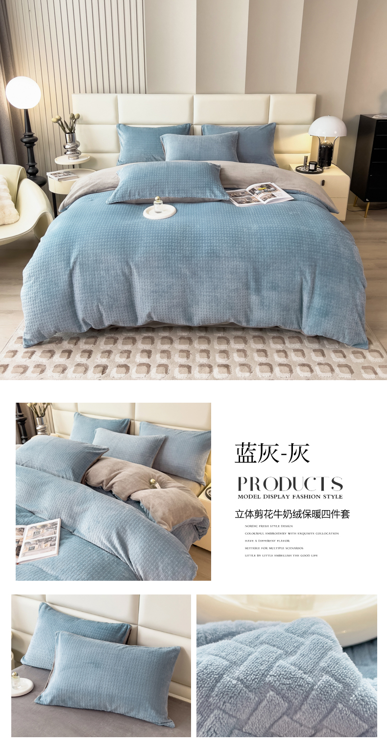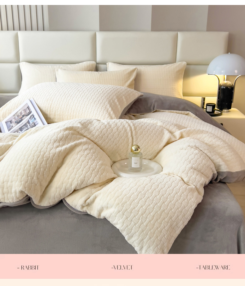 当前位置: 91家纺网 > 商品网购 > 床品套件 > 四件套 > 牛奶绒四件套 > 印季家纺 2025新款立体剪花十字结牛奶绒四件套 奶白-灰