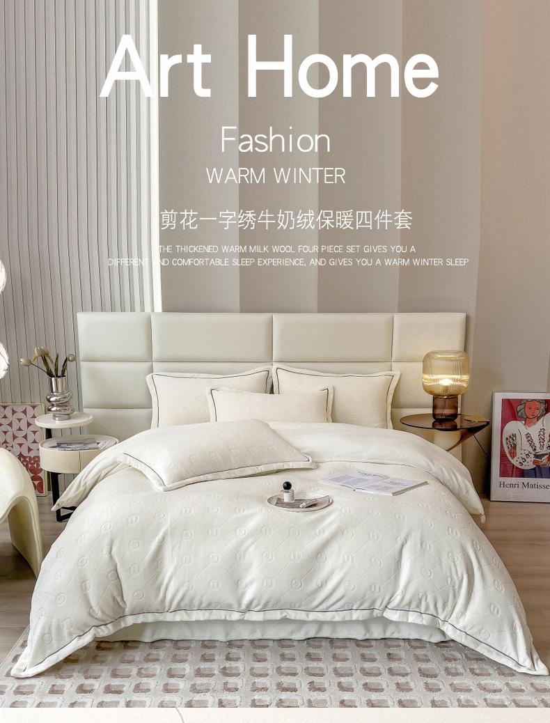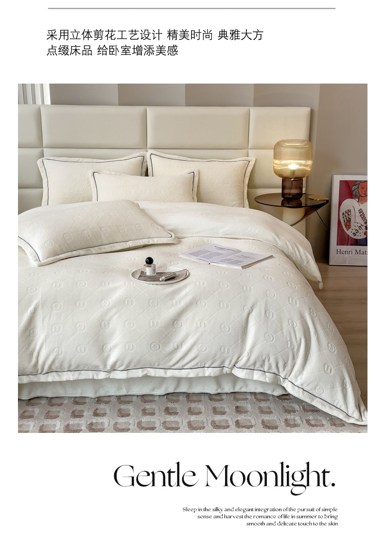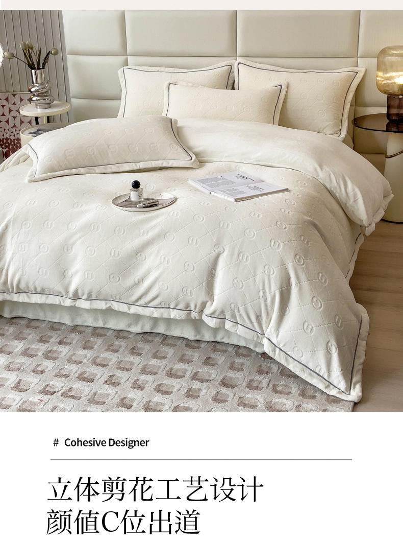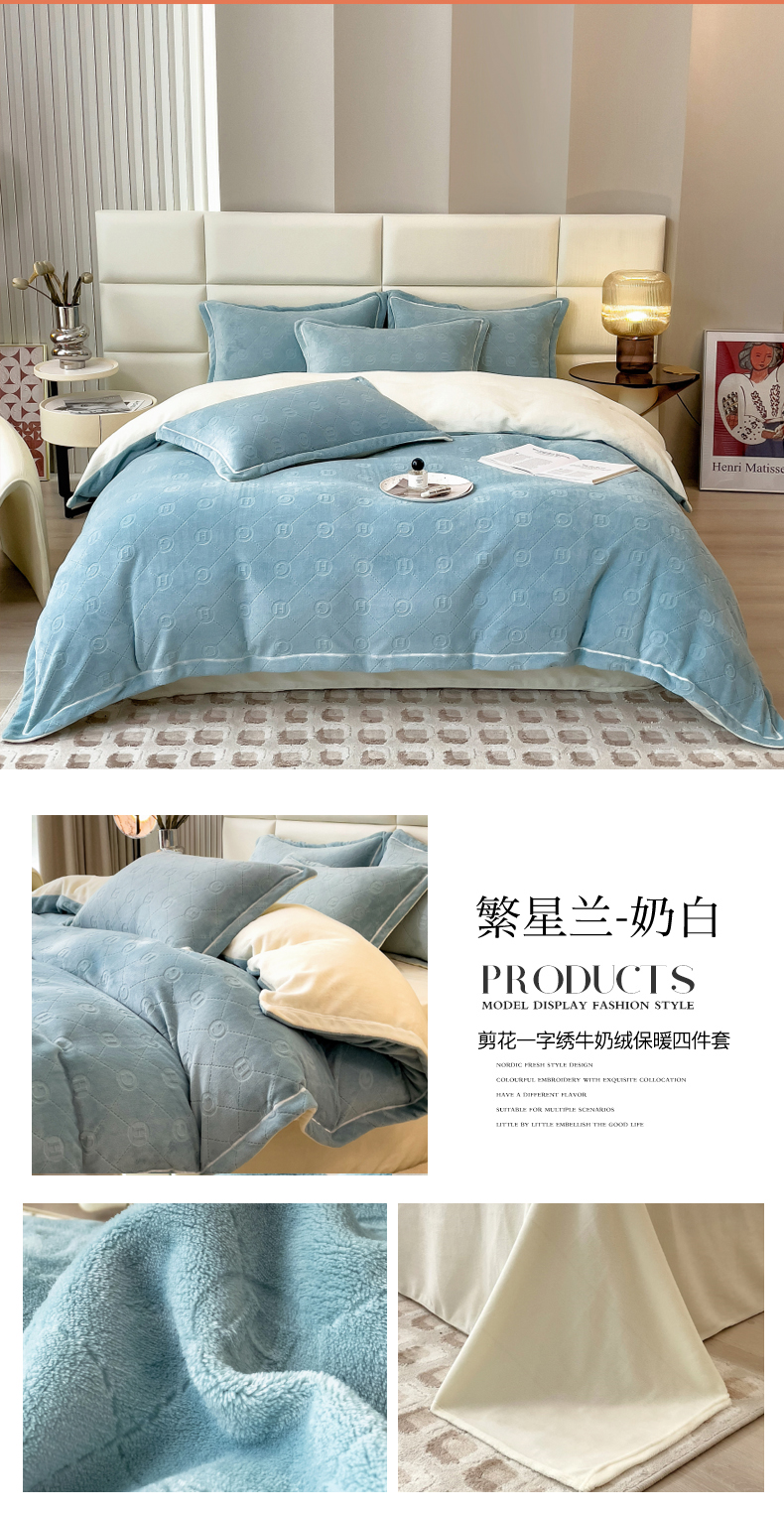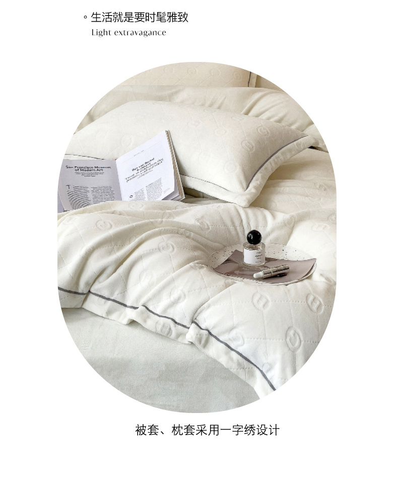 当前位置: 91家纺网 > 商品网购 > 床品套件 > 四件套 > 牛奶绒四件套 > 印季家纺 2025新款HG剪花一字绣牛奶绒四件套 奶白