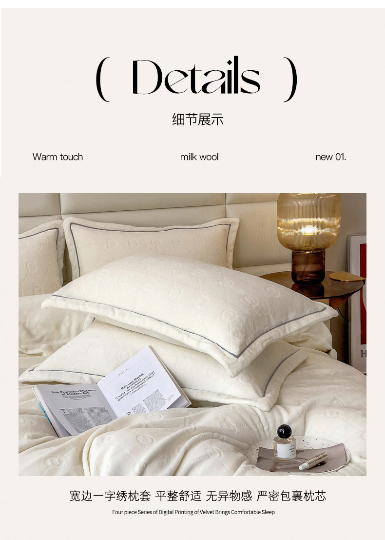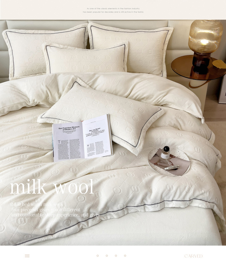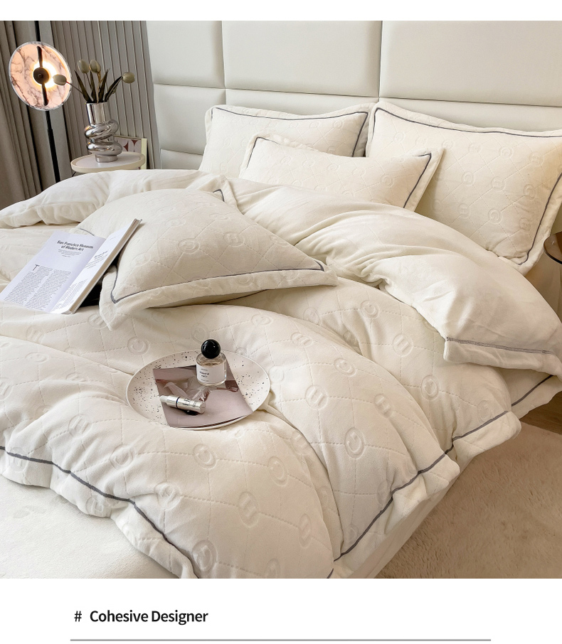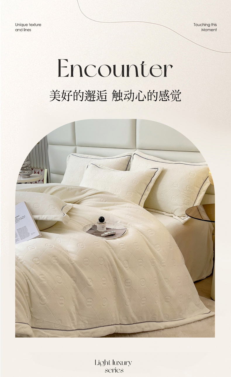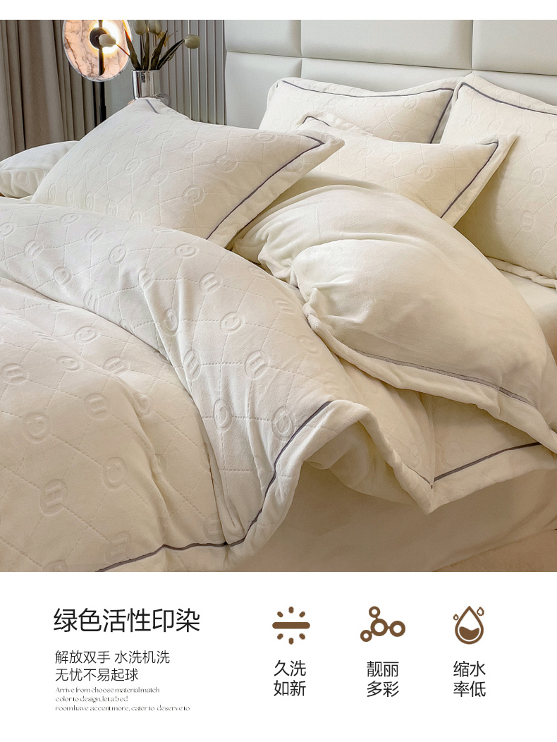 当前位置: 91家纺网 > 商品网购 > 床品套件 > 四件套 > 牛奶绒四件套 > 印季家纺 2025新款HG剪花一字绣牛奶绒四件套 奶白