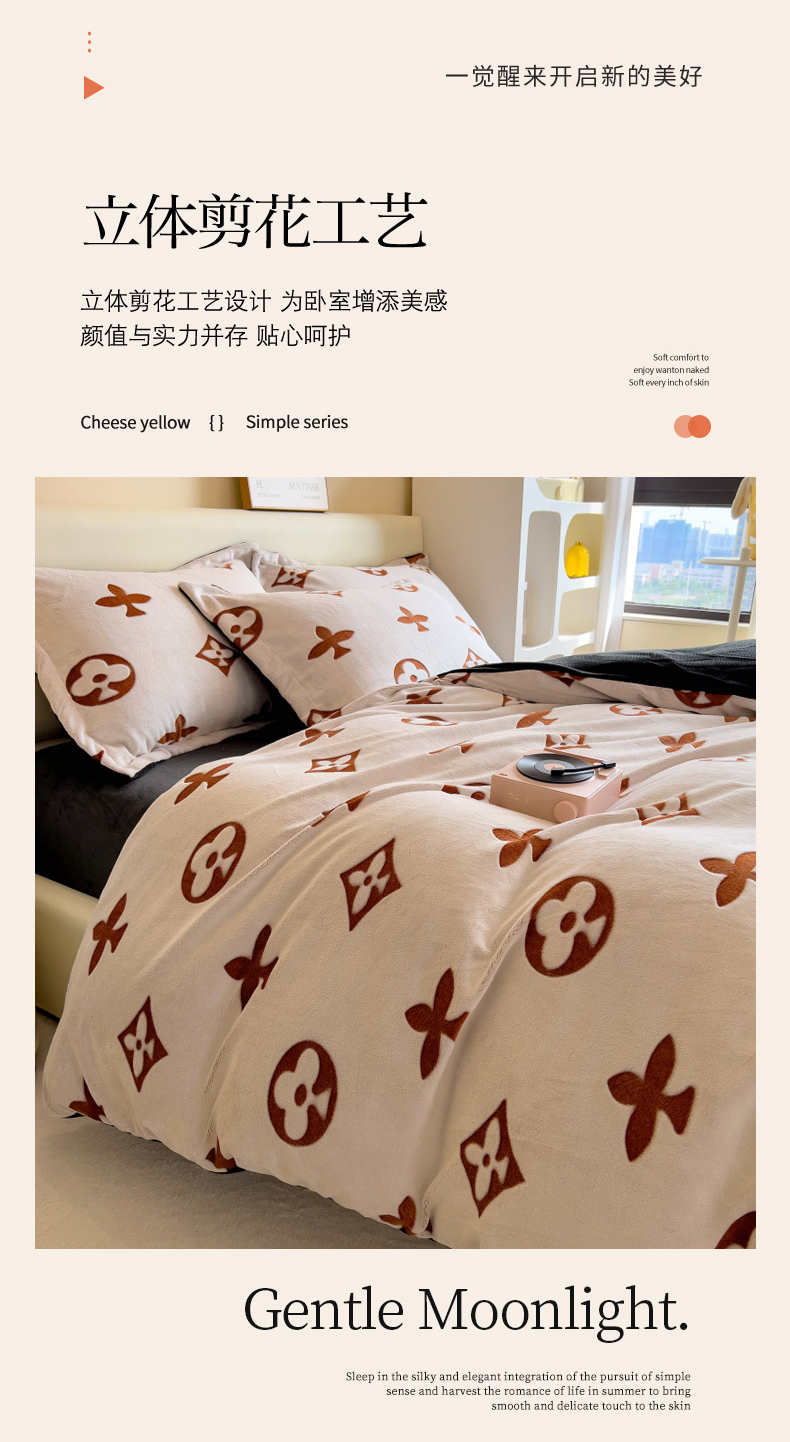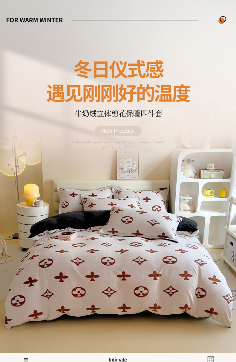当前位置: 91家纺网 > 商品网购 > 床品套件 > 四件套 > 牛奶绒四件套 > 印季家纺 2025新款背印立体剪花牛奶绒四件套 梅花-橙