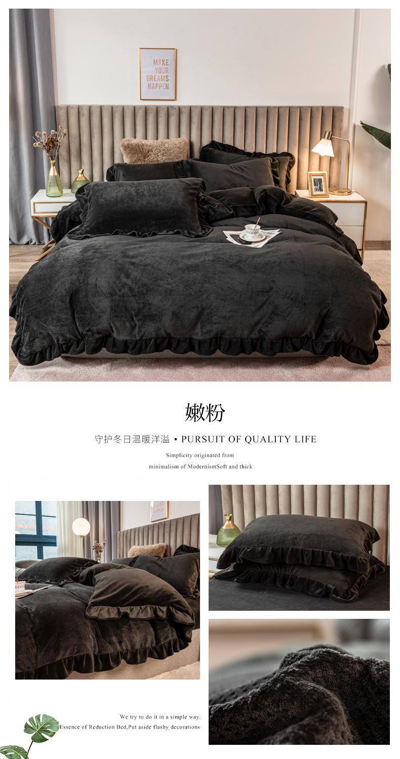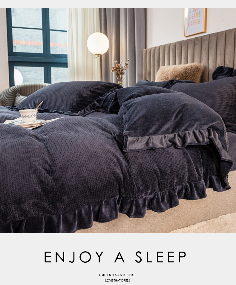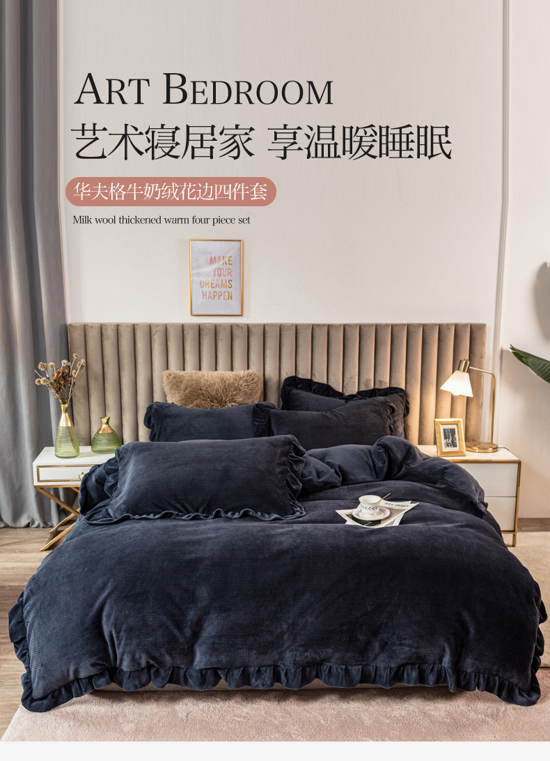 (总)印季家纺 2025新款华夫格牛奶绒花边四件套