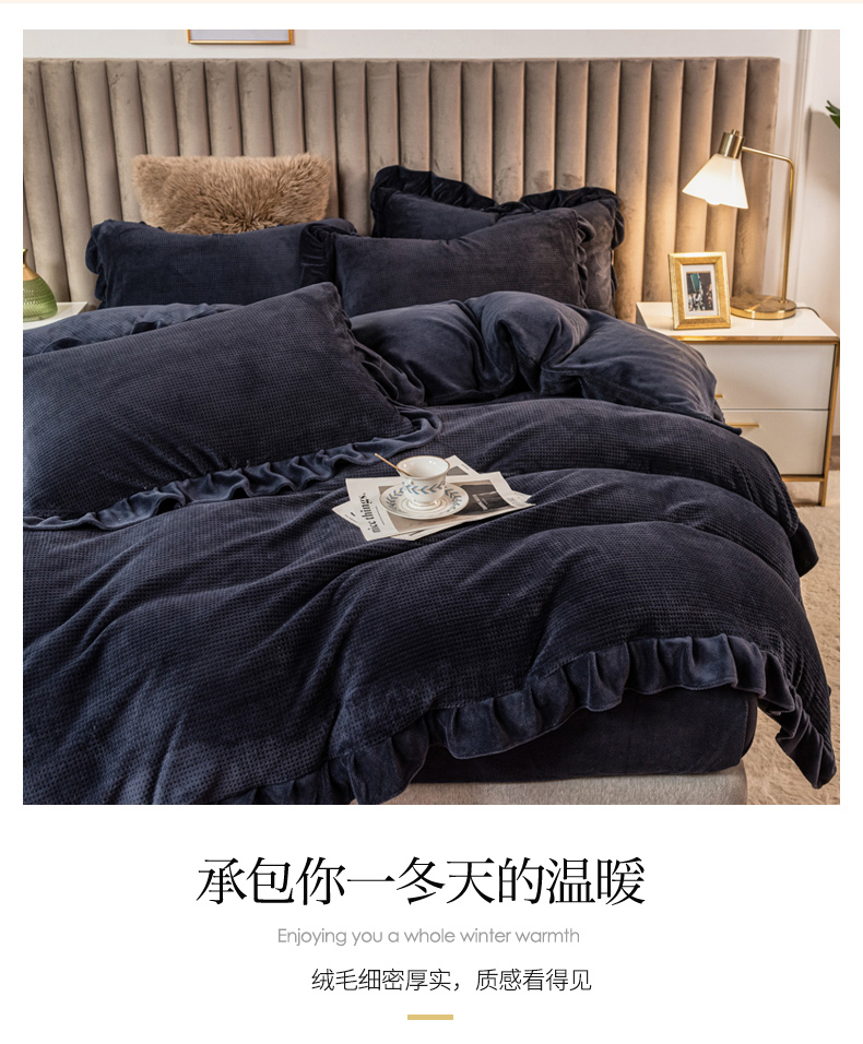 商品名称:(总)印季家纺 2025新款华夫格牛奶绒花边四件套