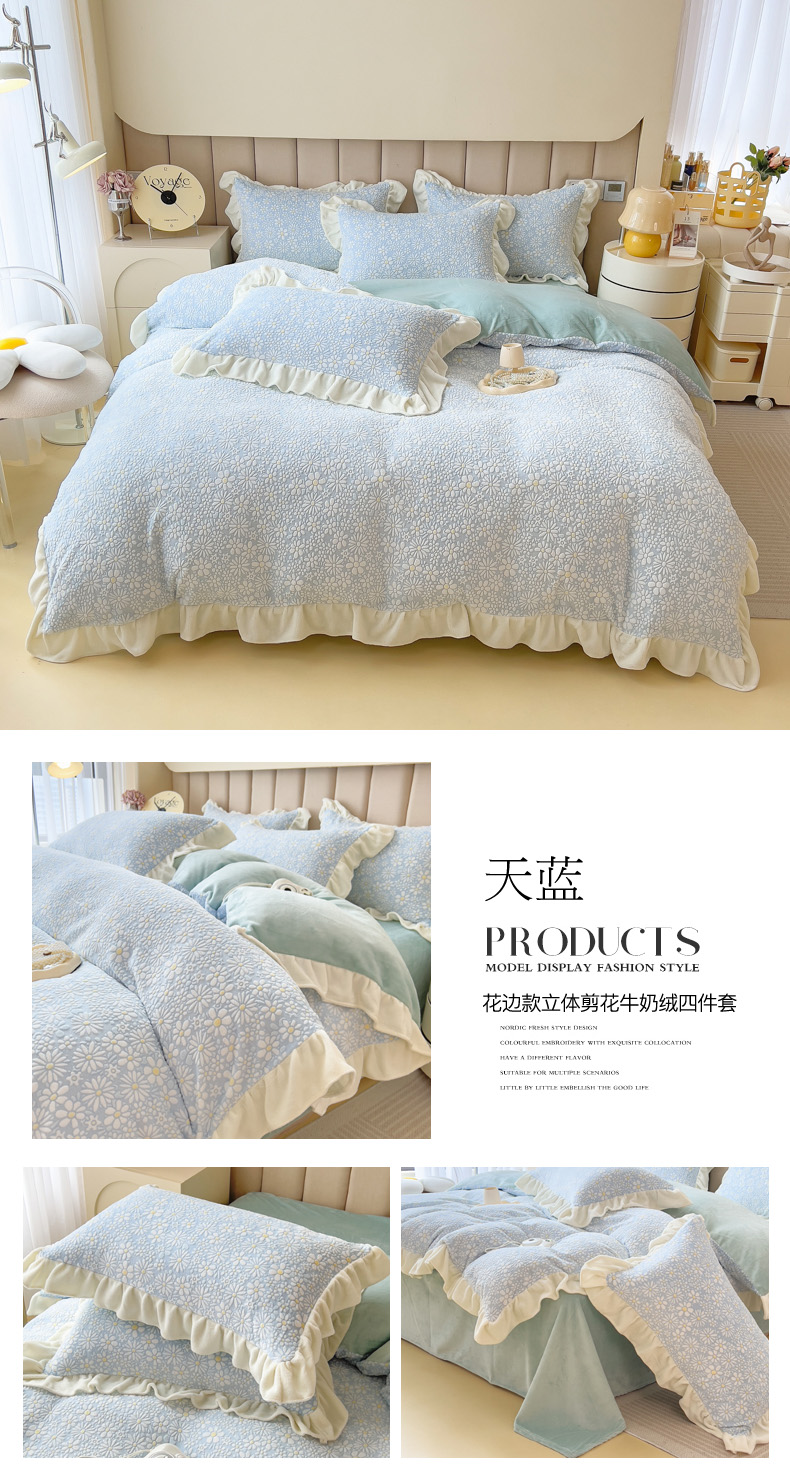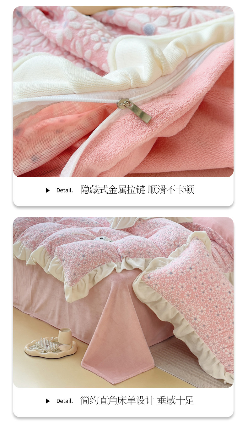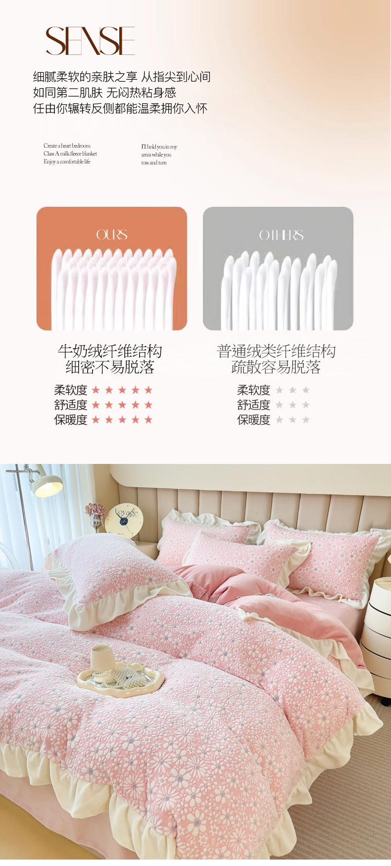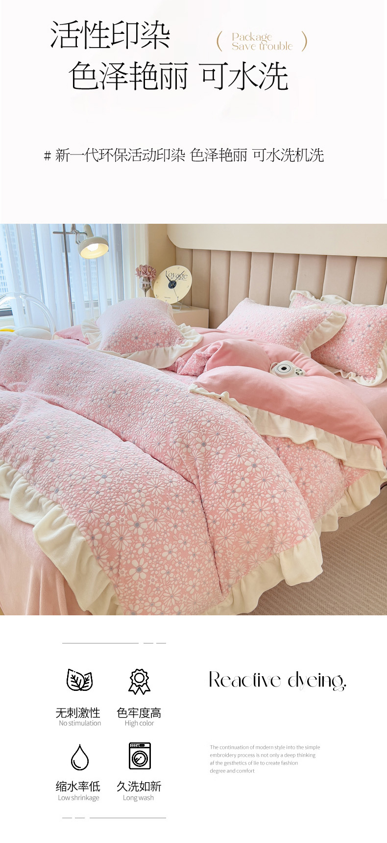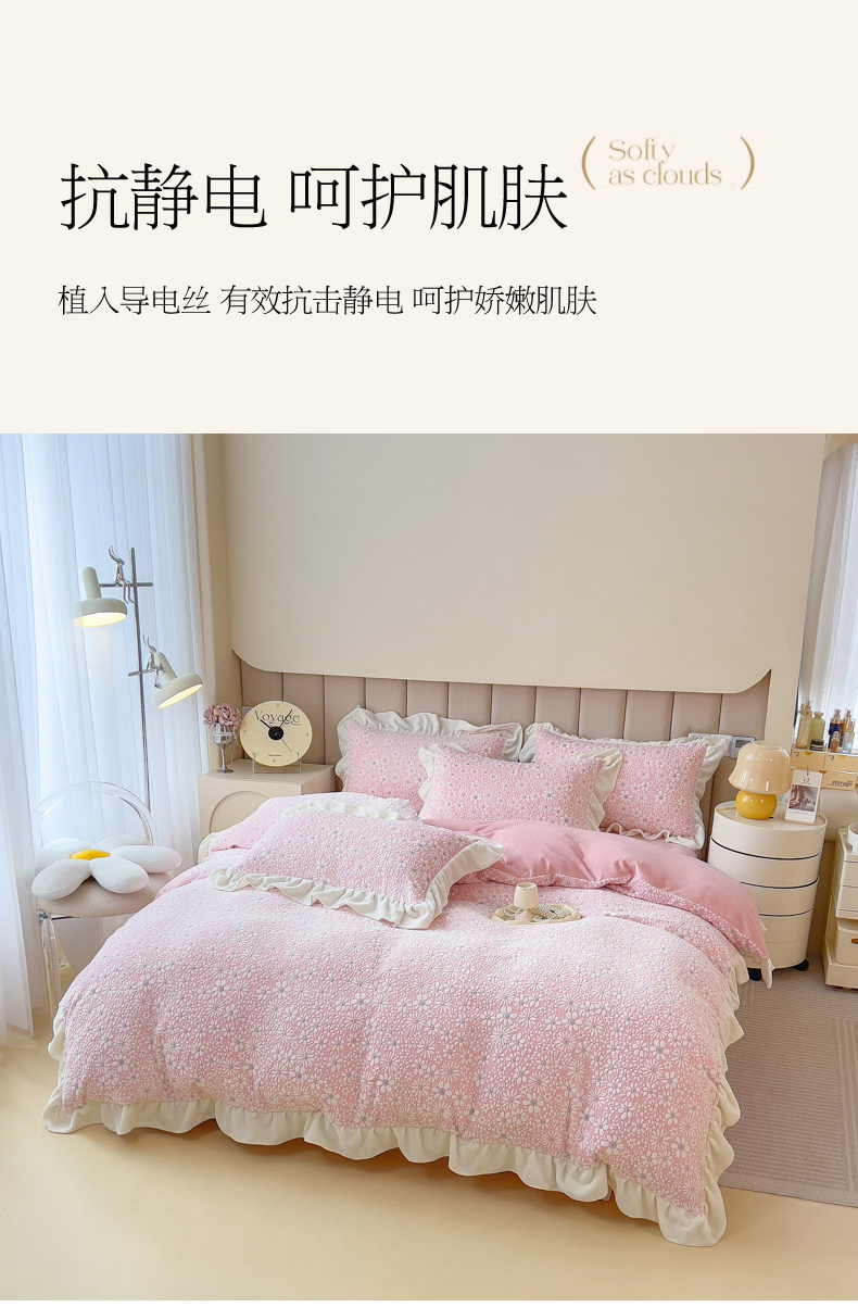当前位置: 91家纺网 > 商品网购 > 床品套件 > 四件套 > 牛奶绒四件套 > 印季家纺 2025新款花边款立体剪花牛奶绒四件套 粉红