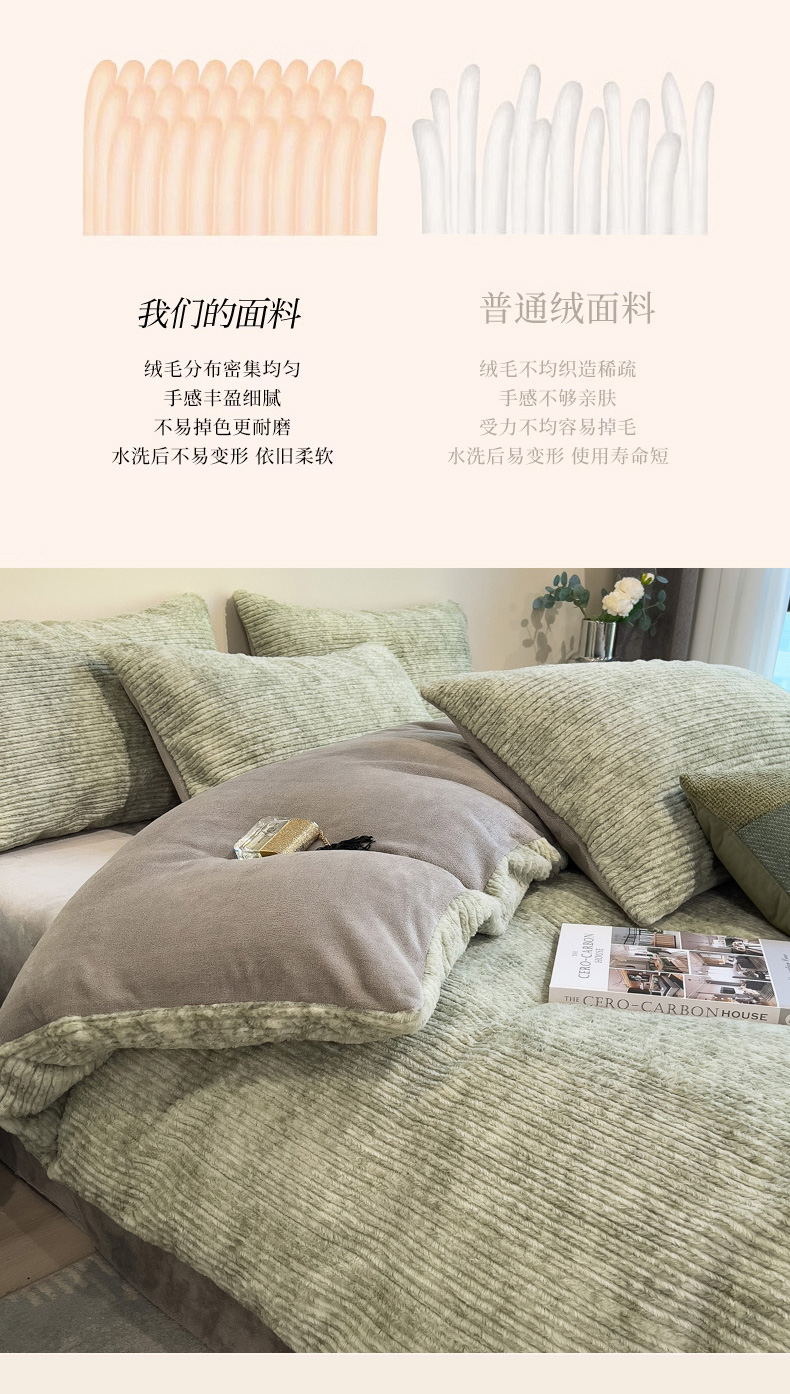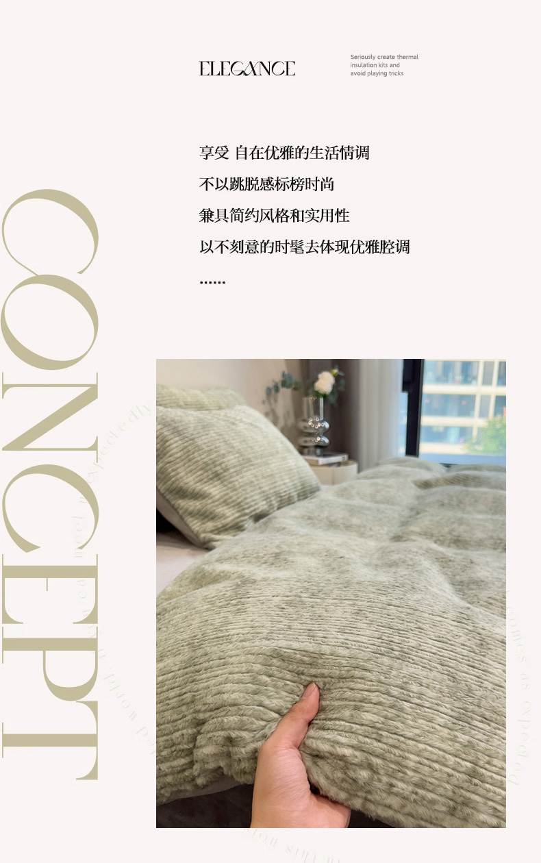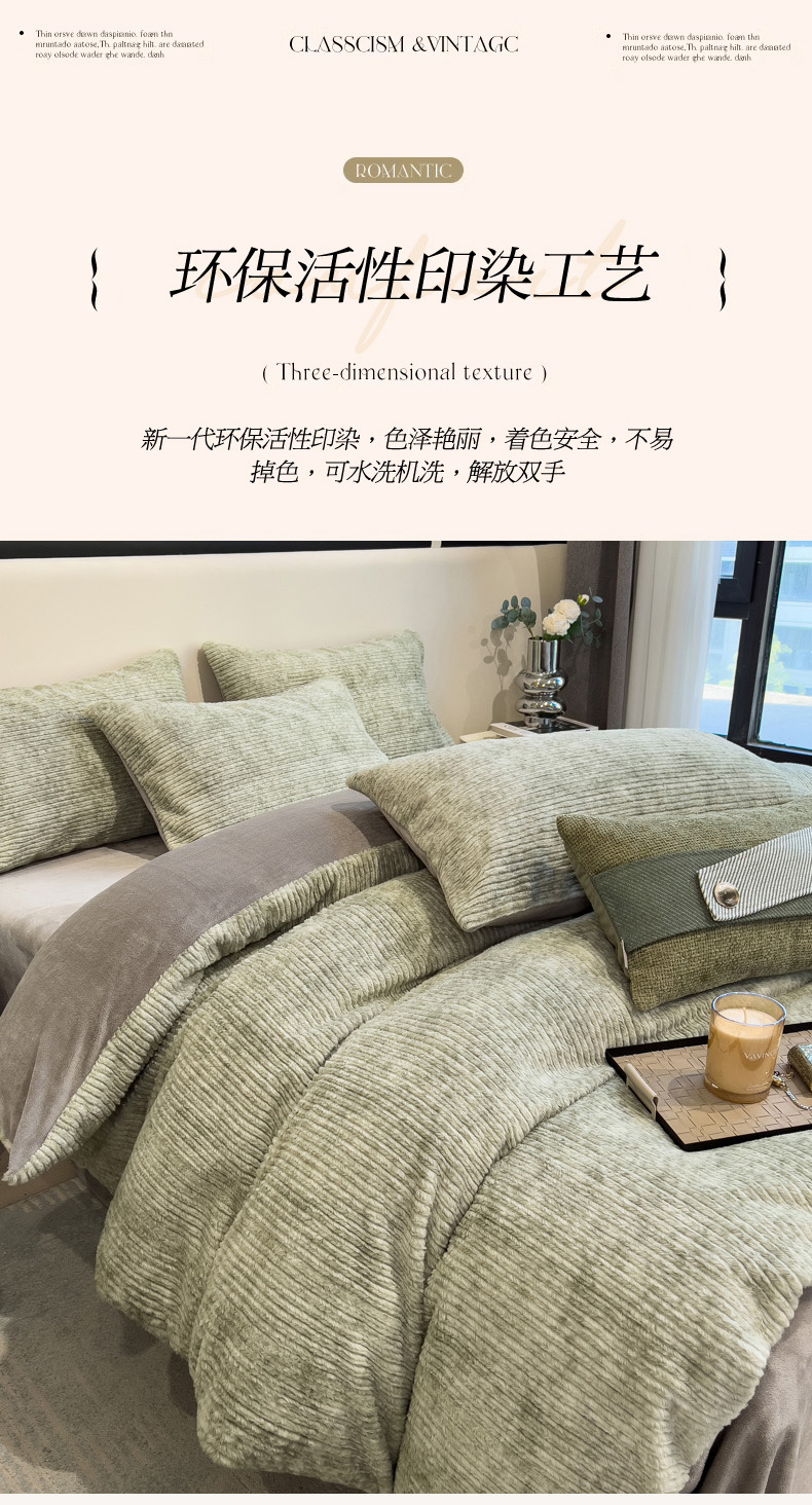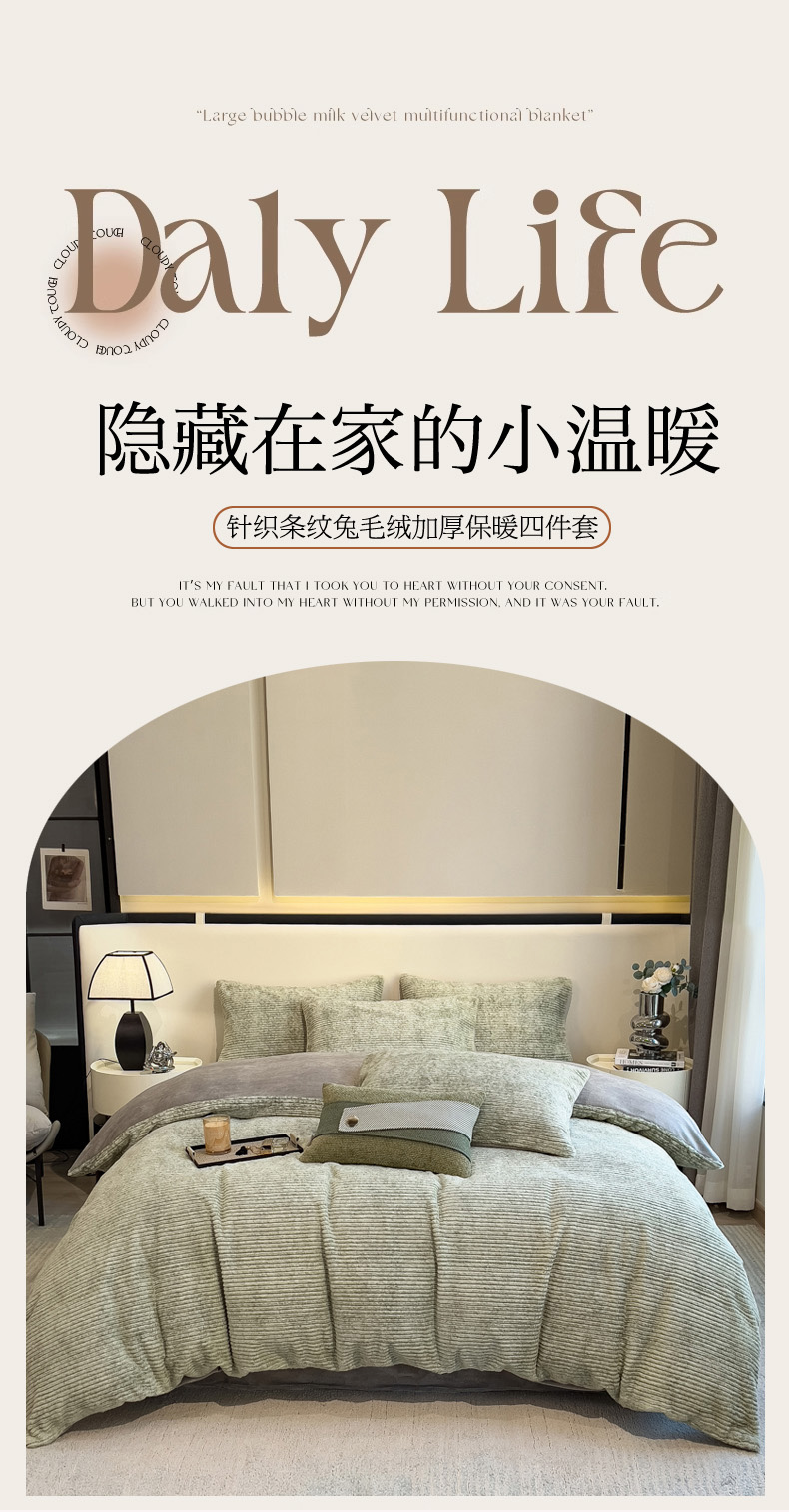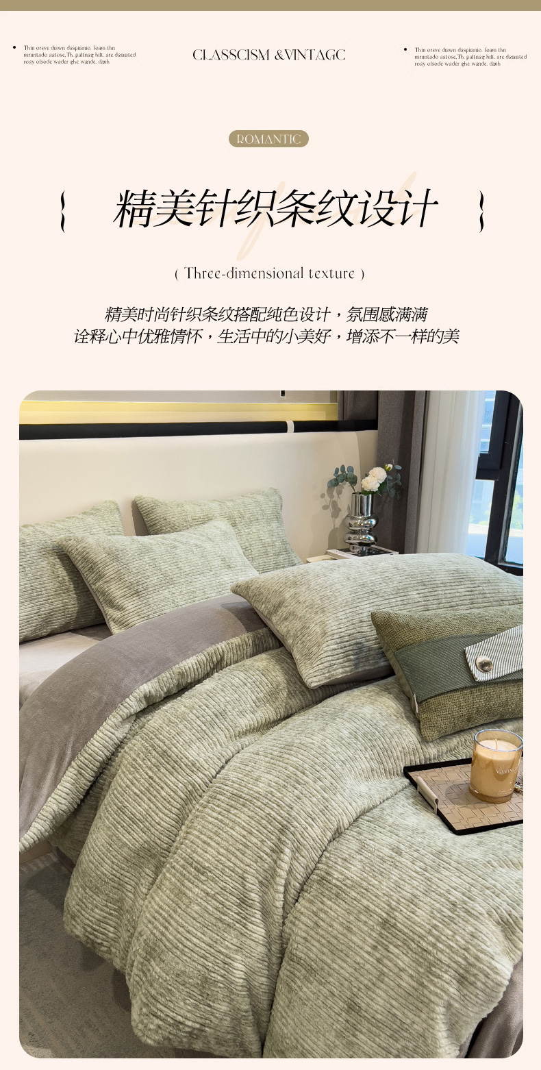 当前位置: 91家纺网 > 商品网购 > 床品套件 > 四件套 > 其它四件套 > 印季家纺 2025新款针织兔毛条纹四件套 草绿-马丁灰