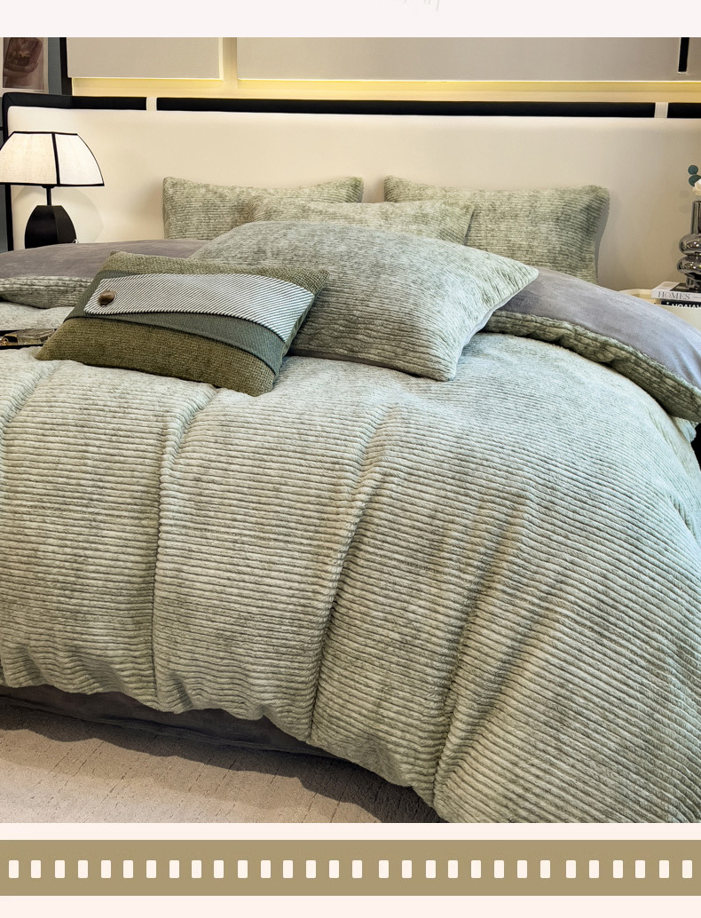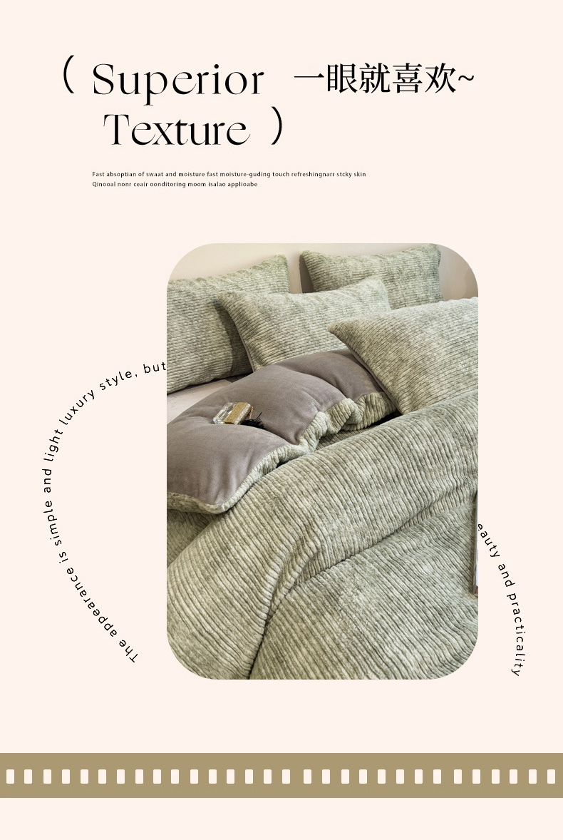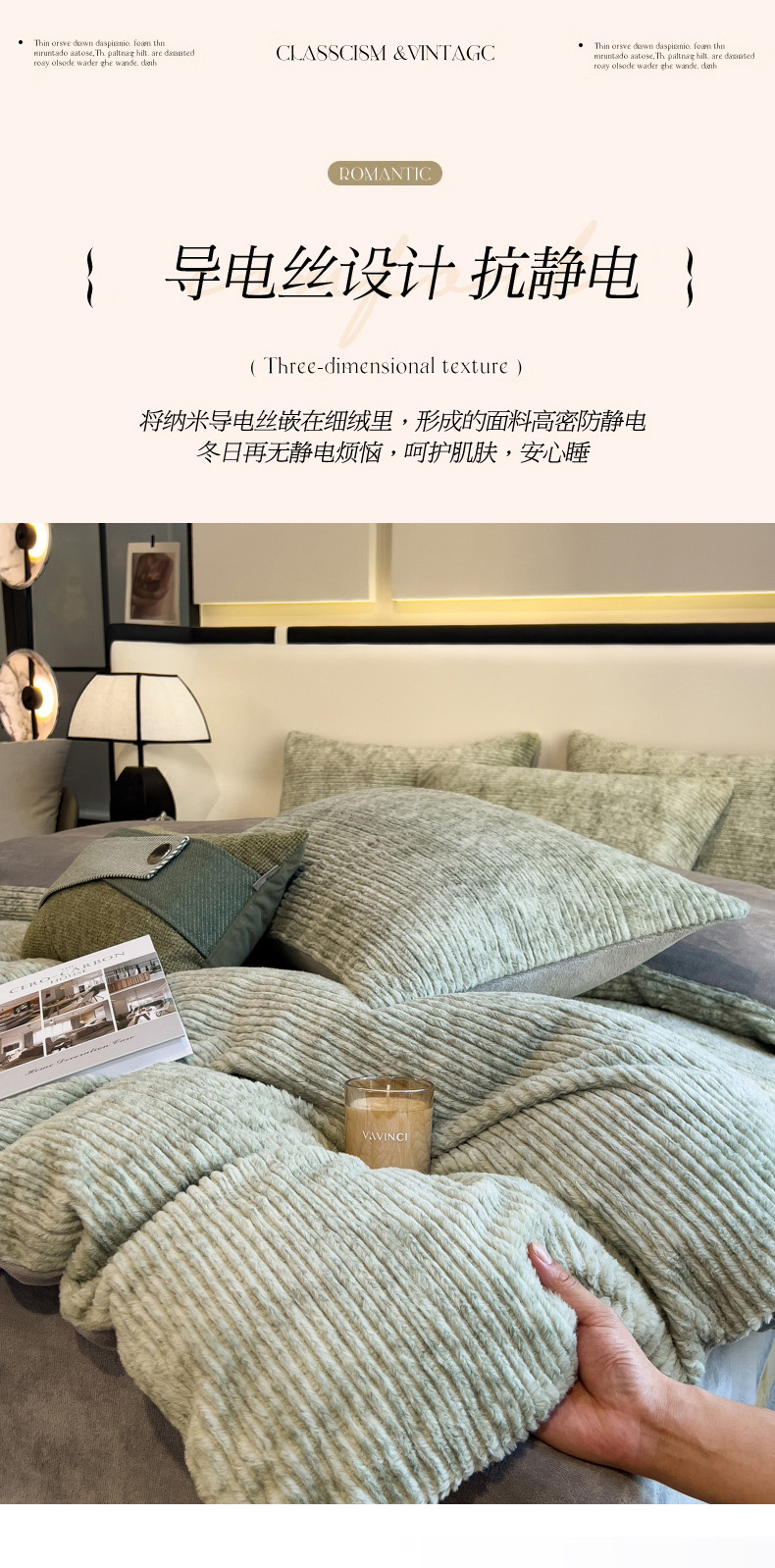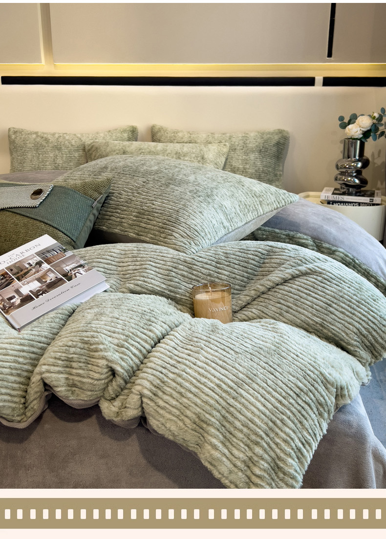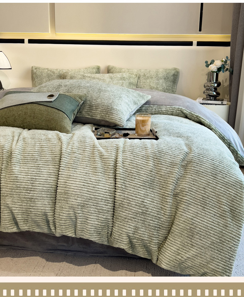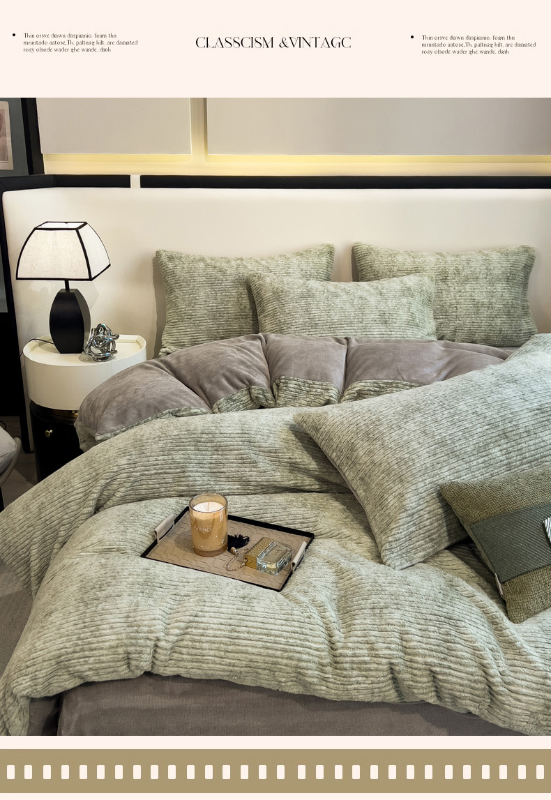 当前位置: 91家纺网 > 商品网购 > 床品套件 > 四件套 > 其它四件套 > 印季家纺 2025新款针织兔毛条纹四件套 草绿-马丁灰