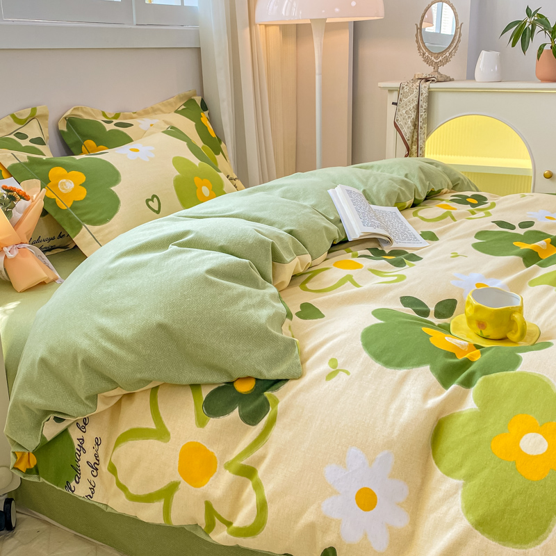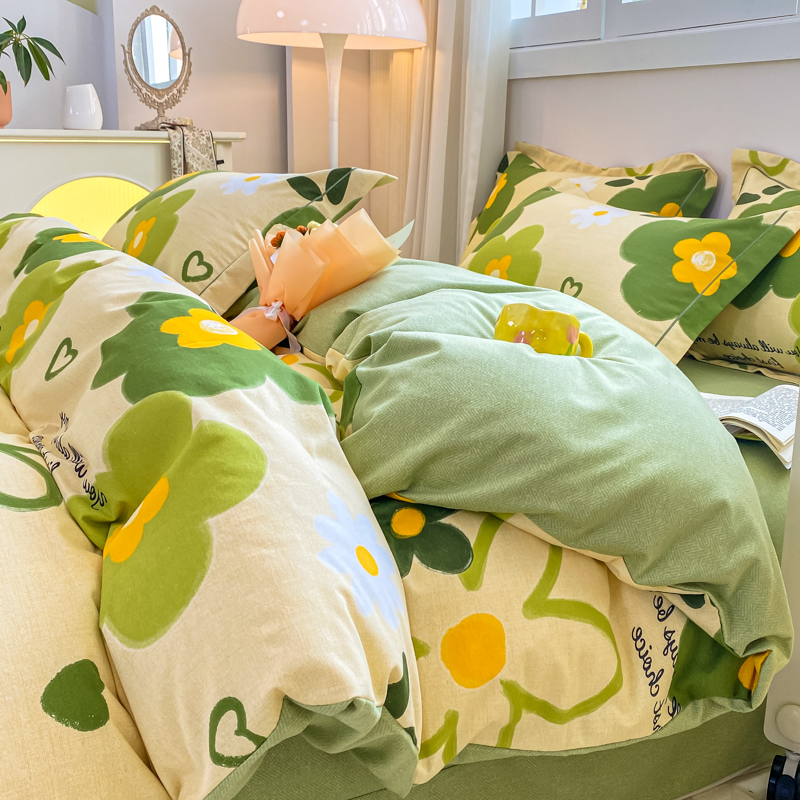 凌鼎 2025新款喷气加厚磨毛四件套系列1 彼岸花绿