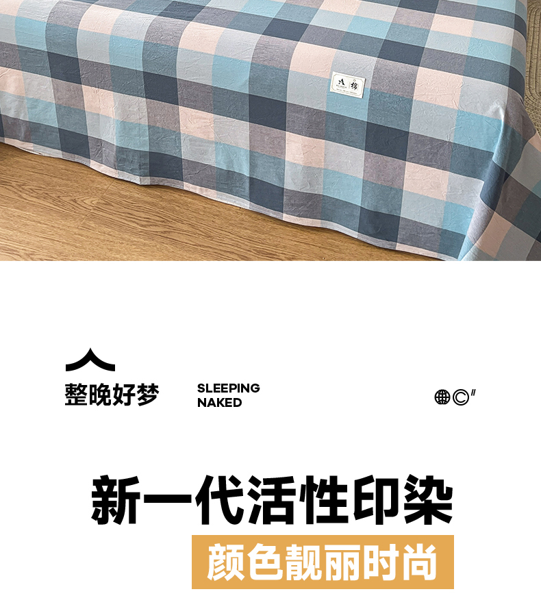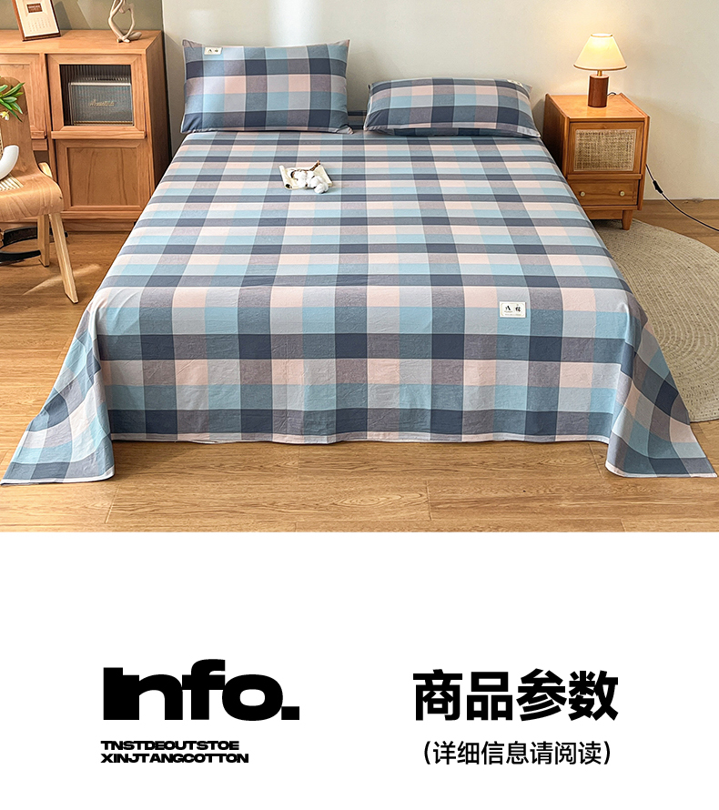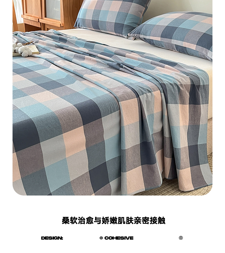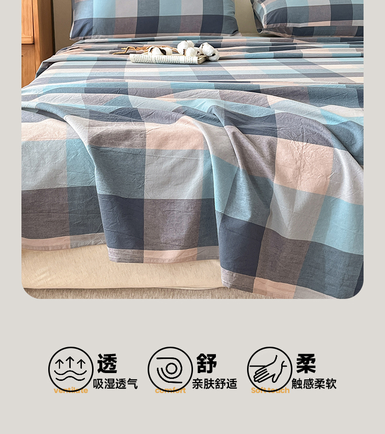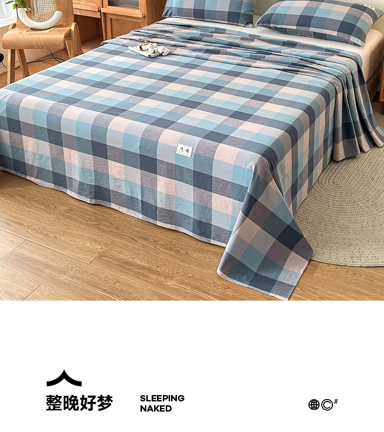 • 91家纺网 家纺一手货源 找家纺 21度C 2026新款A类全棉水洗棉母婴级床单 青蓝格