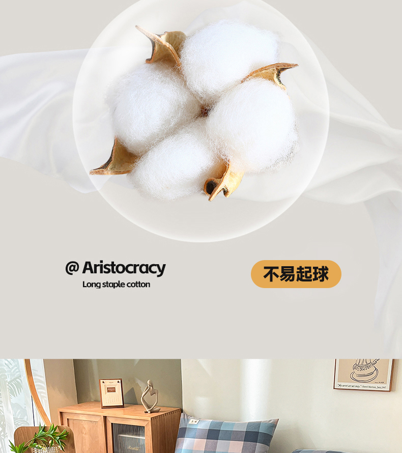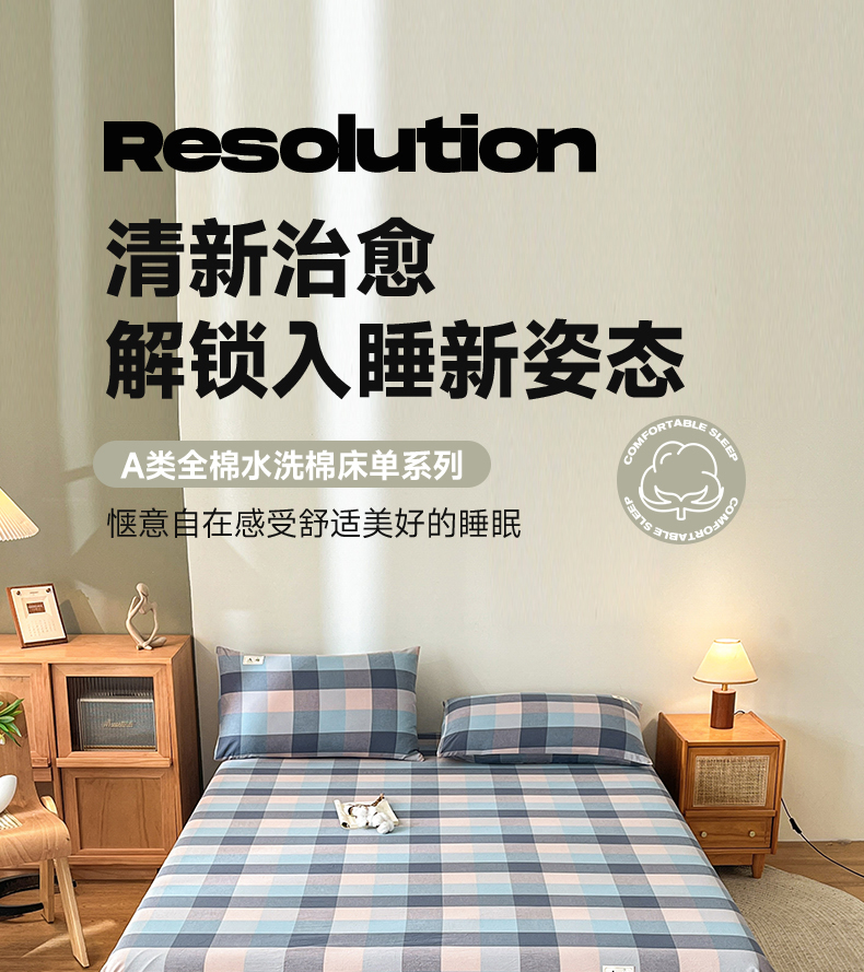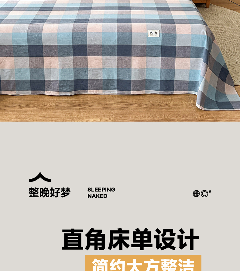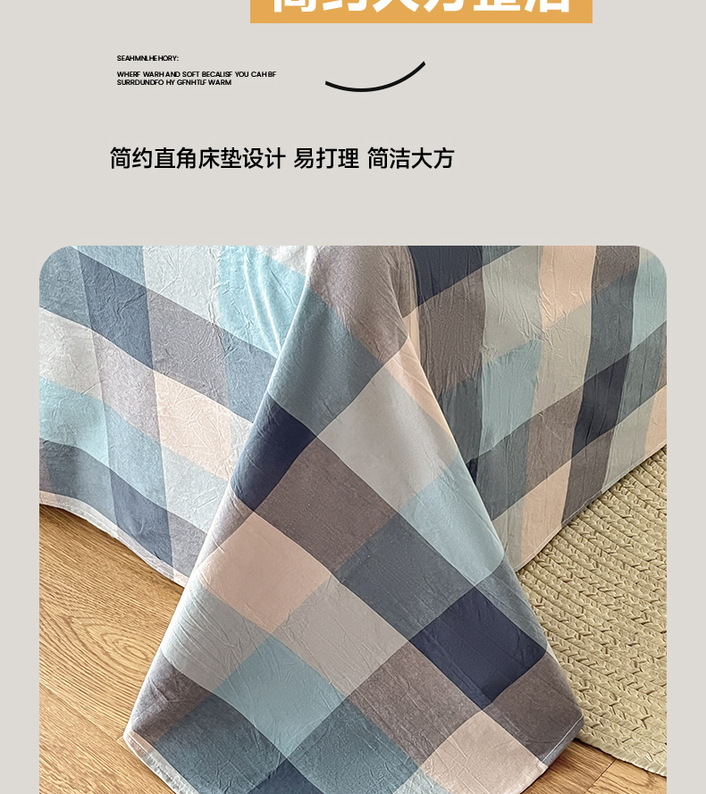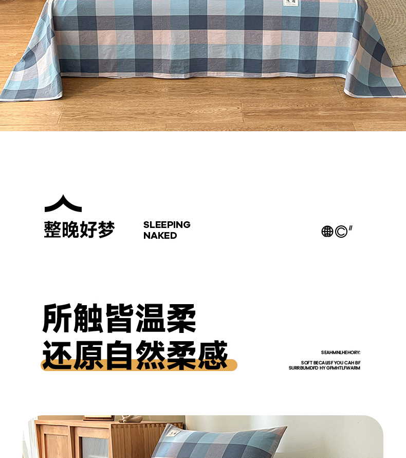 • 91家纺网 家纺一手货源 找家纺 21度C 2026新款A类全棉水洗棉母婴级床单 青蓝格