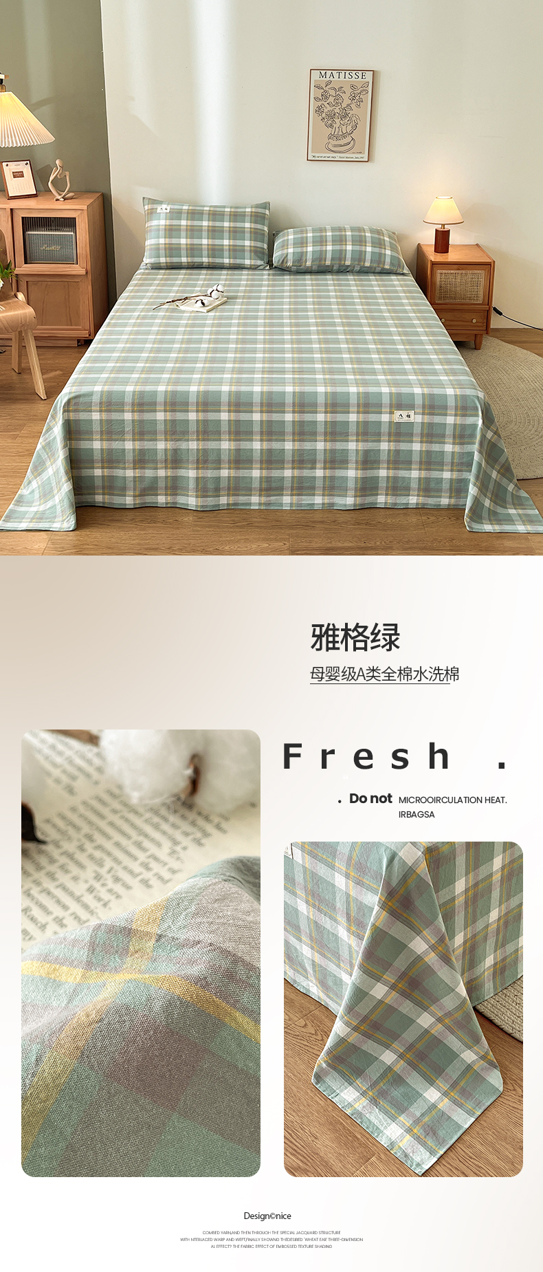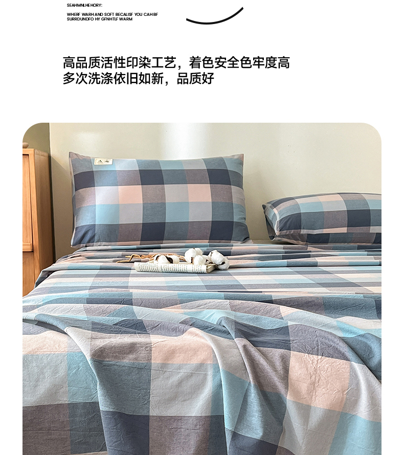21度C 2026新款A类全棉水洗棉母婴级床单 青蓝格
