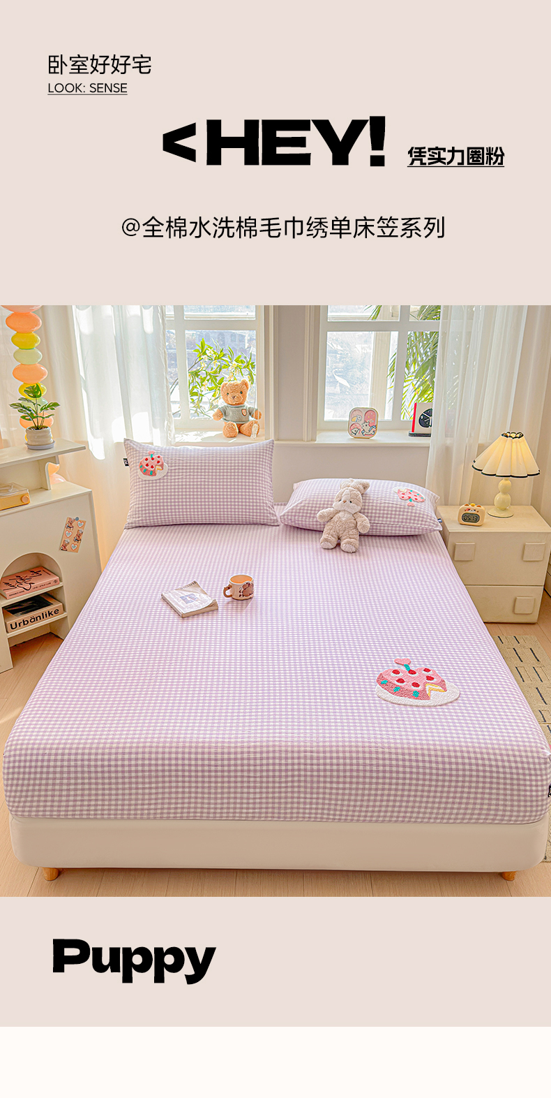 (总)乐美家纺 2025新款A类高克重贴布绣牛奶绒床笠三件套,快乐小狗,可爱狮,萌萌星,面包熊,蘑菇熊,南瓜小猪,太阳狮,桃可爱,星星兔,早安小狮子