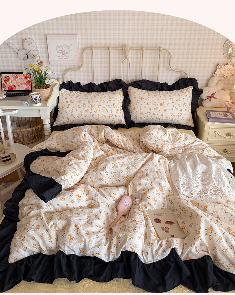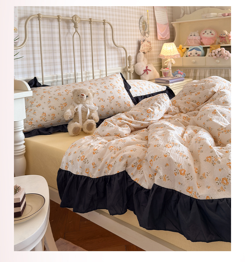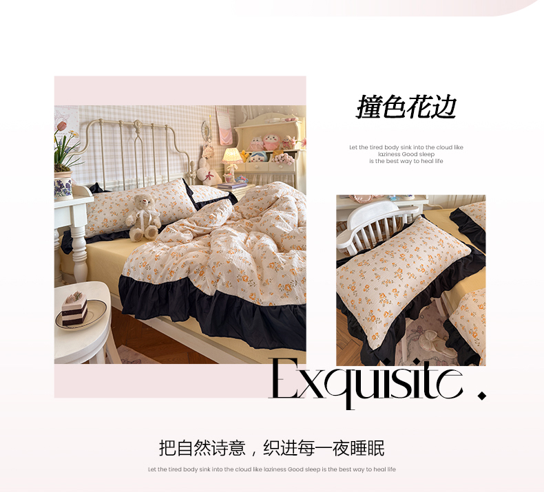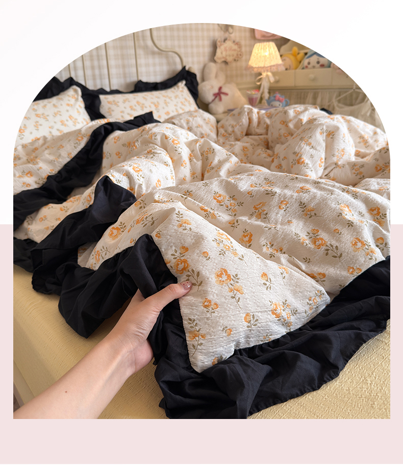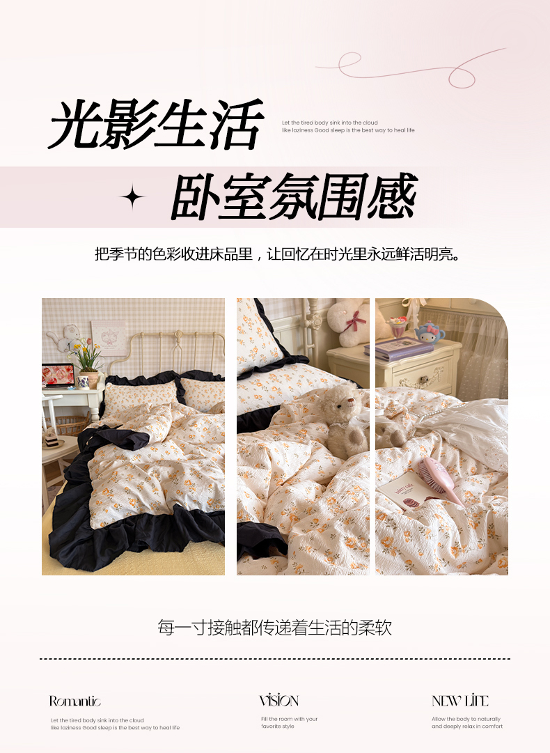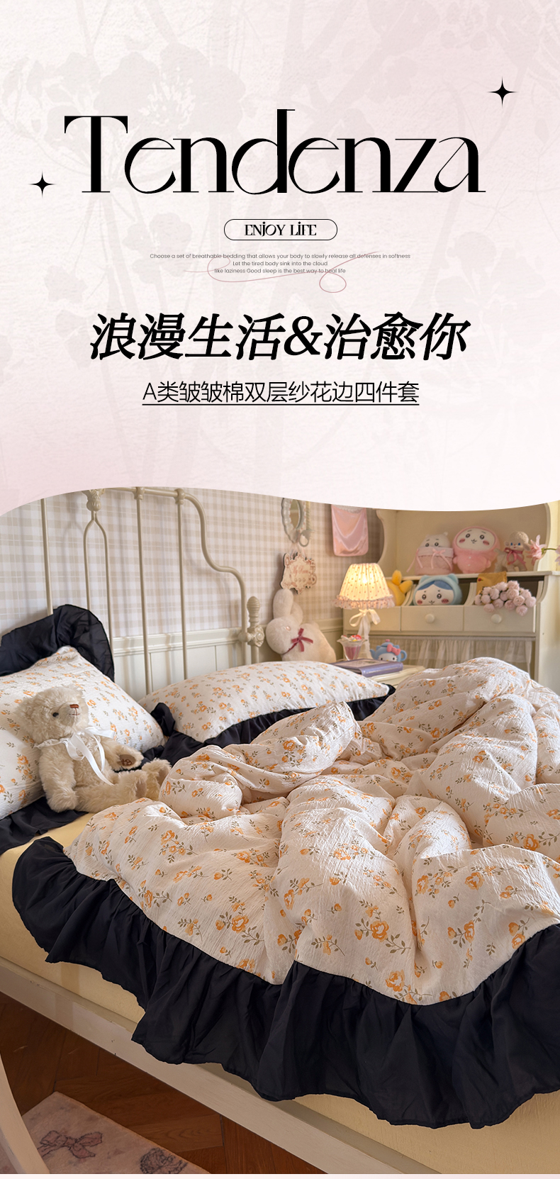 当前位置: 91家纺网 > 商品网购 > 床品套件 > 四件套 > 双层纱四件套 > 优卡迪家纺馆 2026新款皱皱棉双层纱黑花边四件套下载文件包含买家秀 拂晓