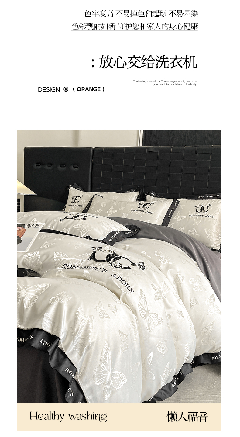 当前位置: 91家纺网 > 商品网购 > 床品套件 > 四件套 > 其它四件套 > 宇航家纺 2026新款专版厚织亮丝提花水洗真丝四件套梦蝶系列 爱意白拼深灰