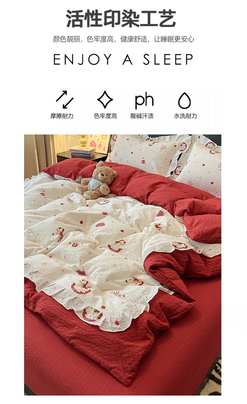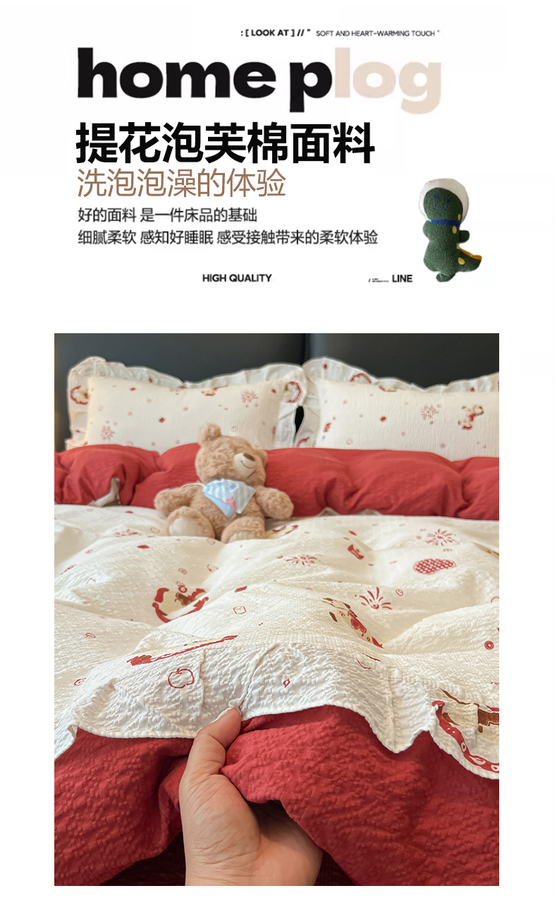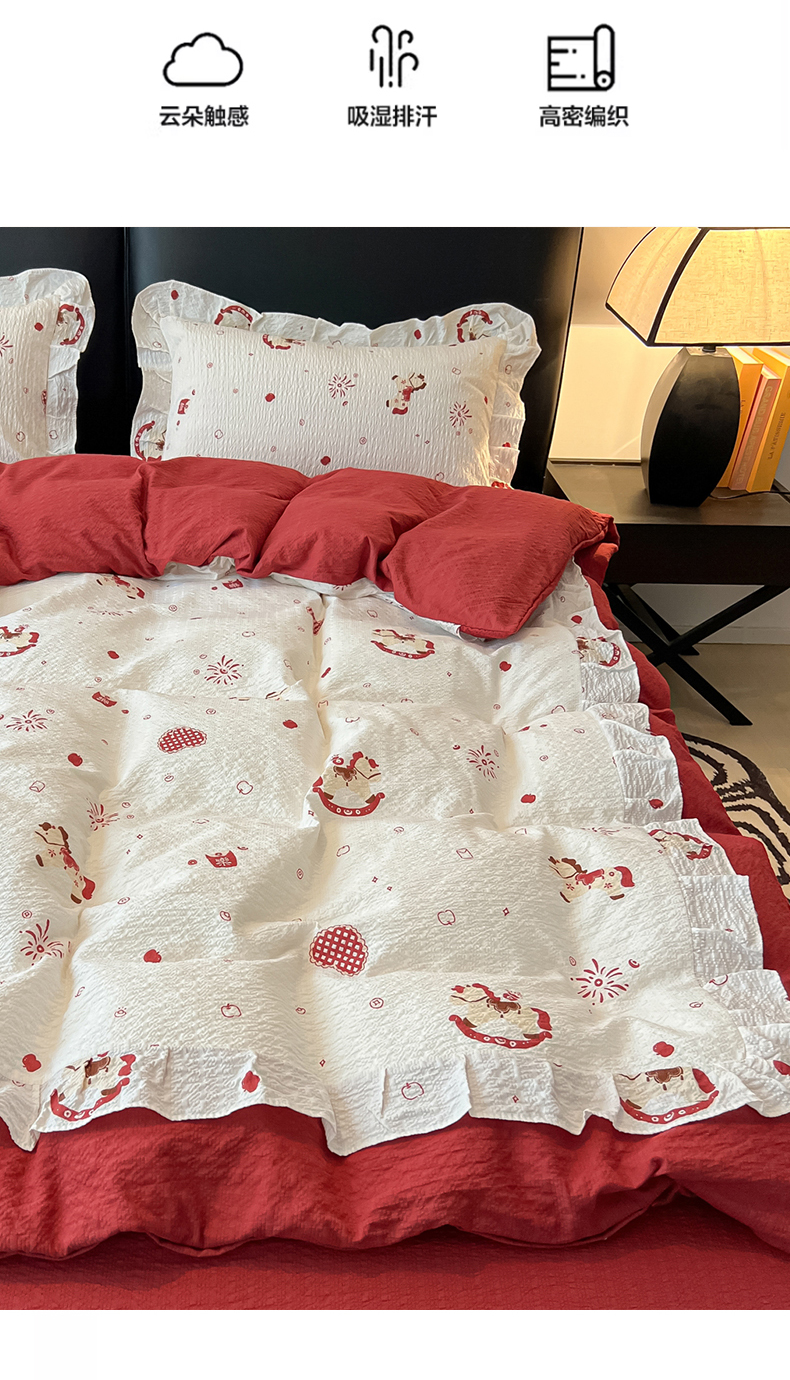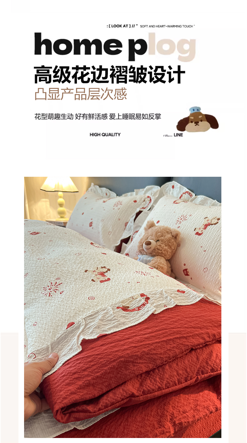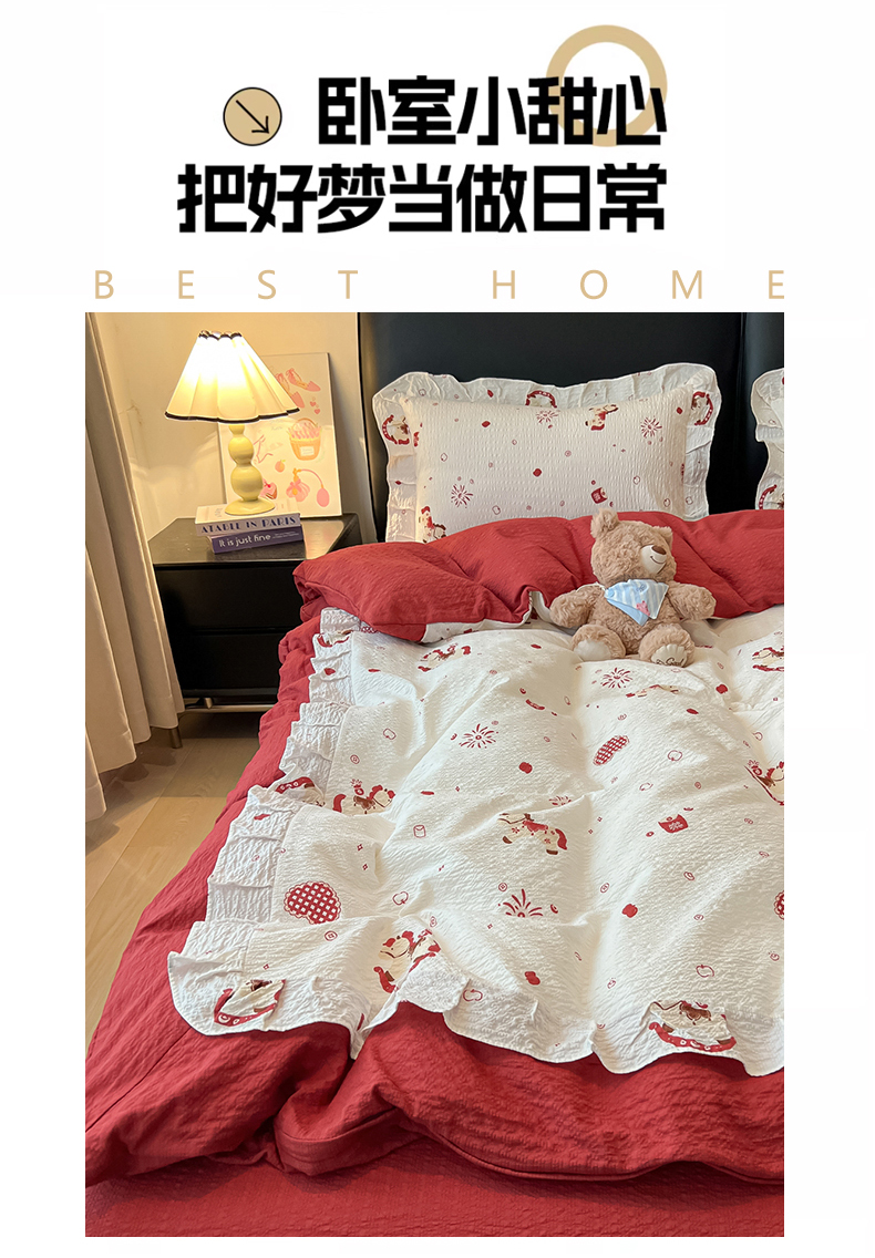 当前位置: 91家纺网 > 商品网购 > 床品套件 > 四件套 > 其它四件套 > 子钦家纺 2026春夏新款提花泡芙棉花边拼角工艺床单床笠四件套-卡哇伊 卡哇伊-马年大吉