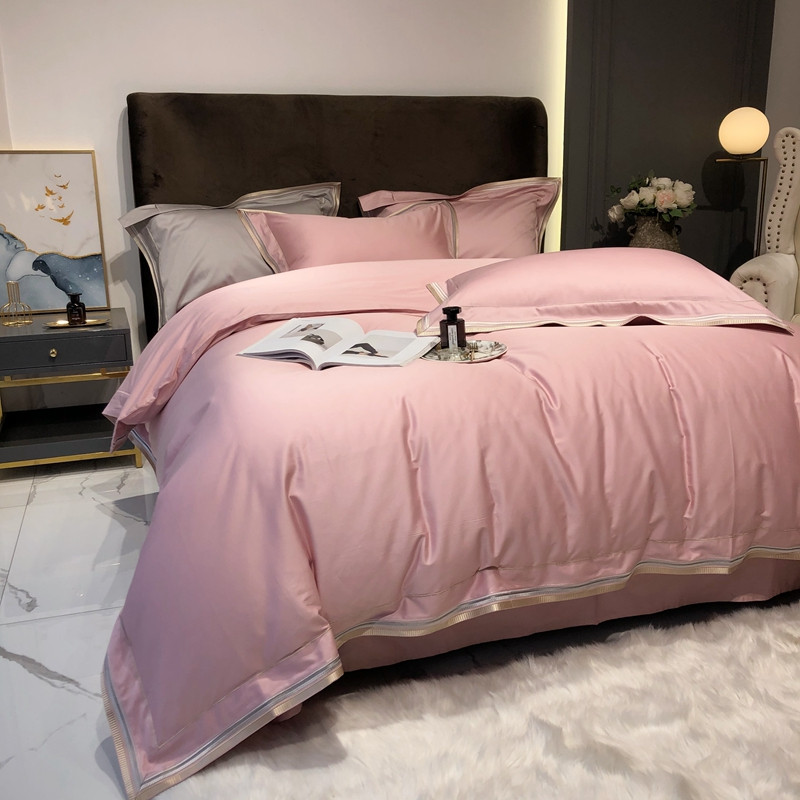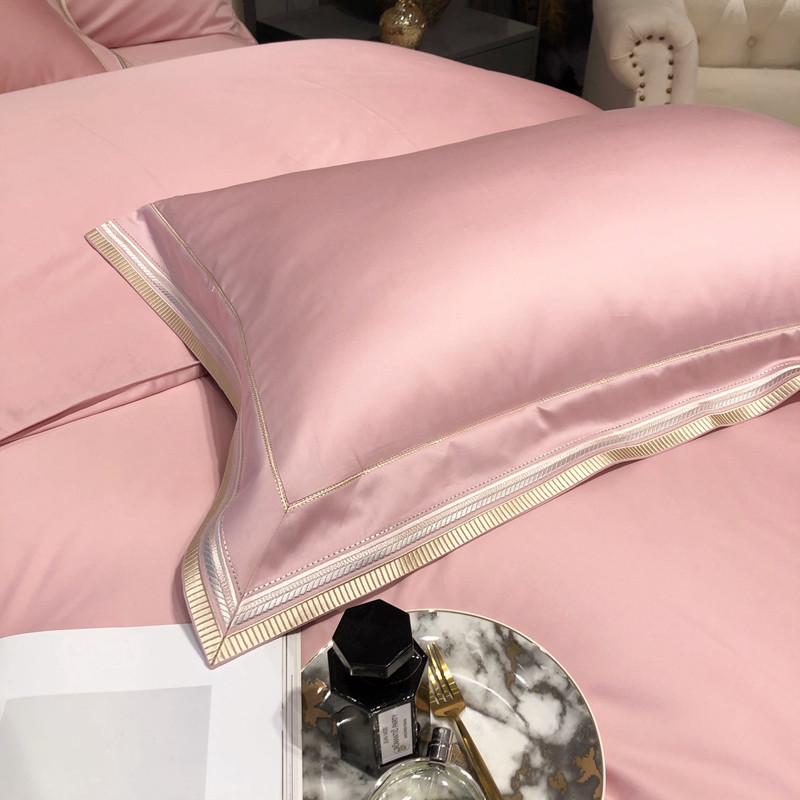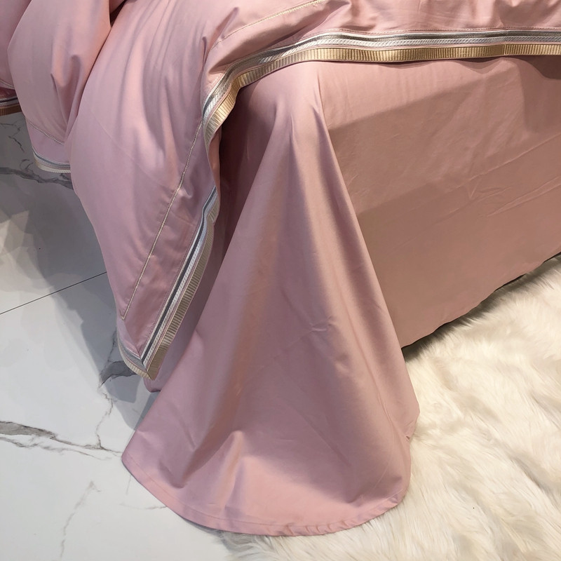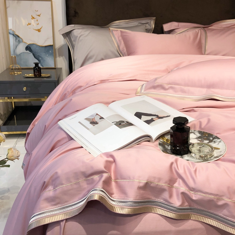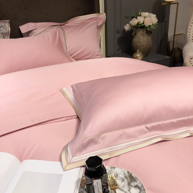 太古汇 2020新款60支长绒棉高定绣花赫本系列四件套 水粉