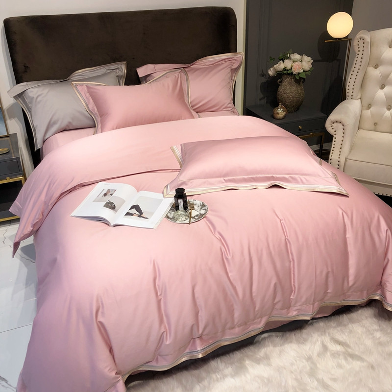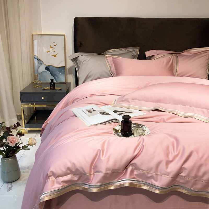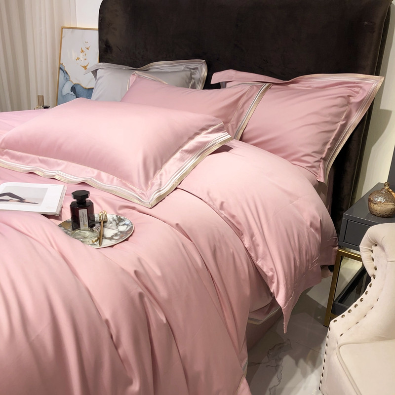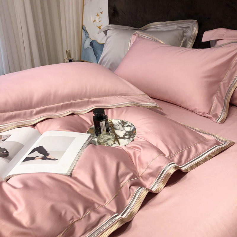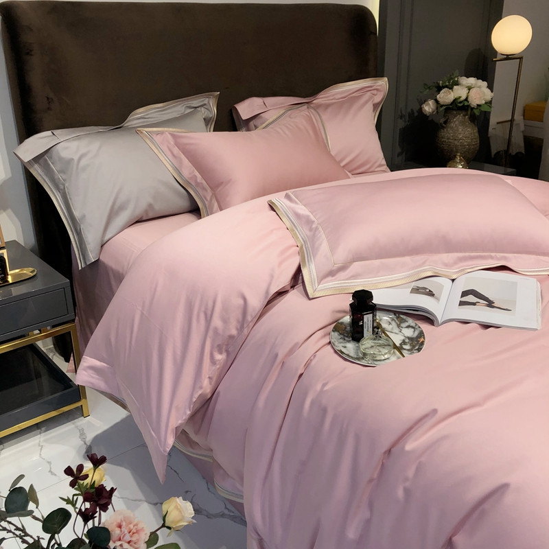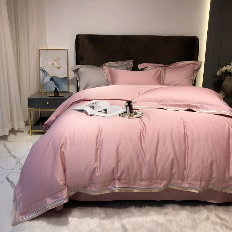 太古汇 2020新款60支长绒棉高定绣花赫本系列四件套 水粉