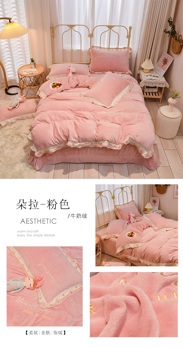 (总)安妮 2022新款朵拉牛奶绒刺绣四件套