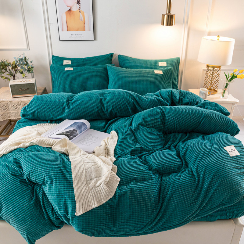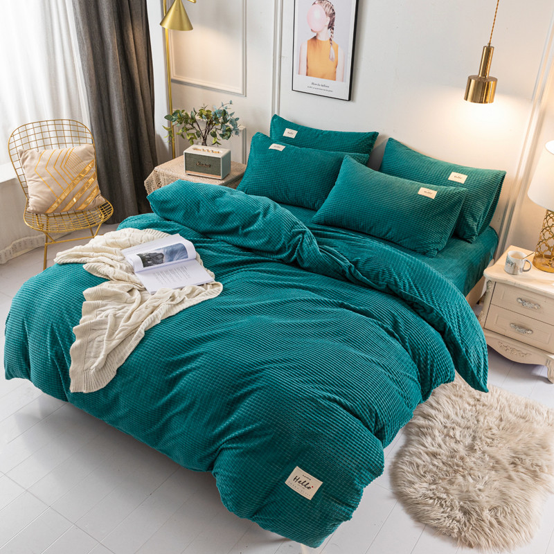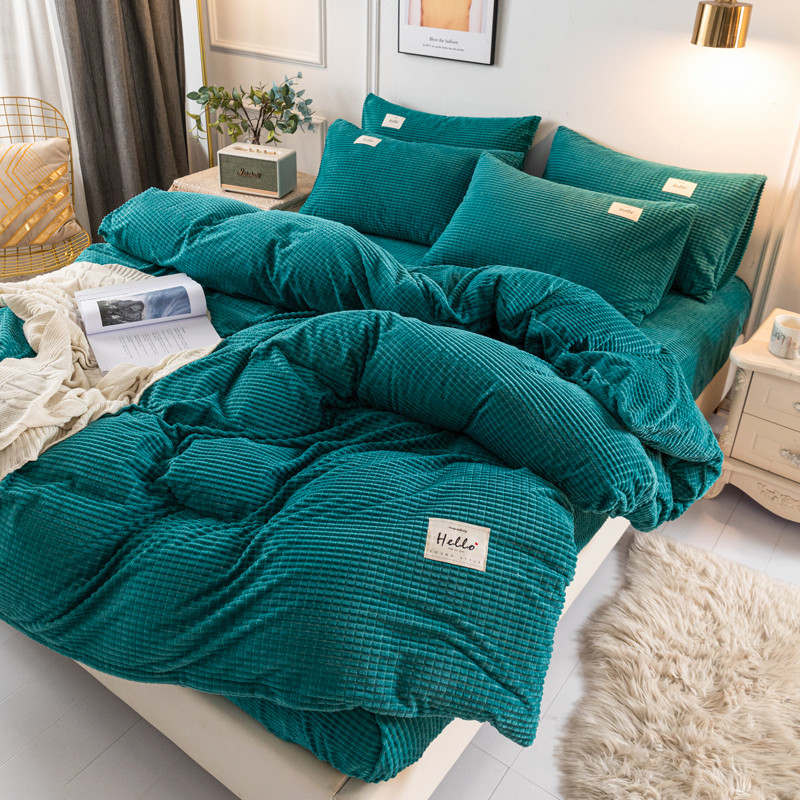 商品名称:仟网汇 2020新款水晶绒牛奶绒魔法绒四件套 婴儿绒-绿色