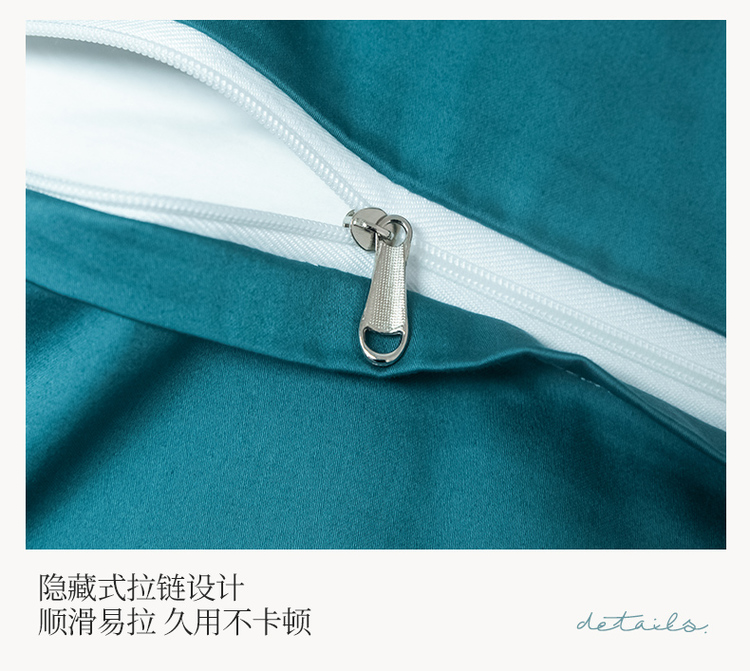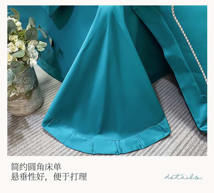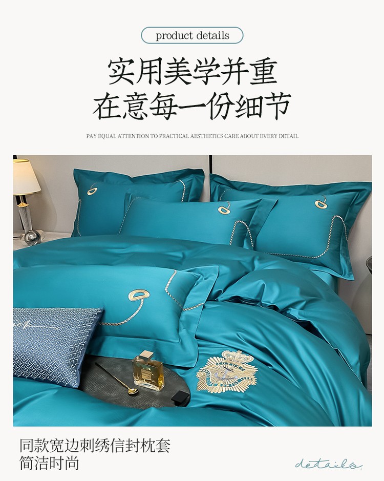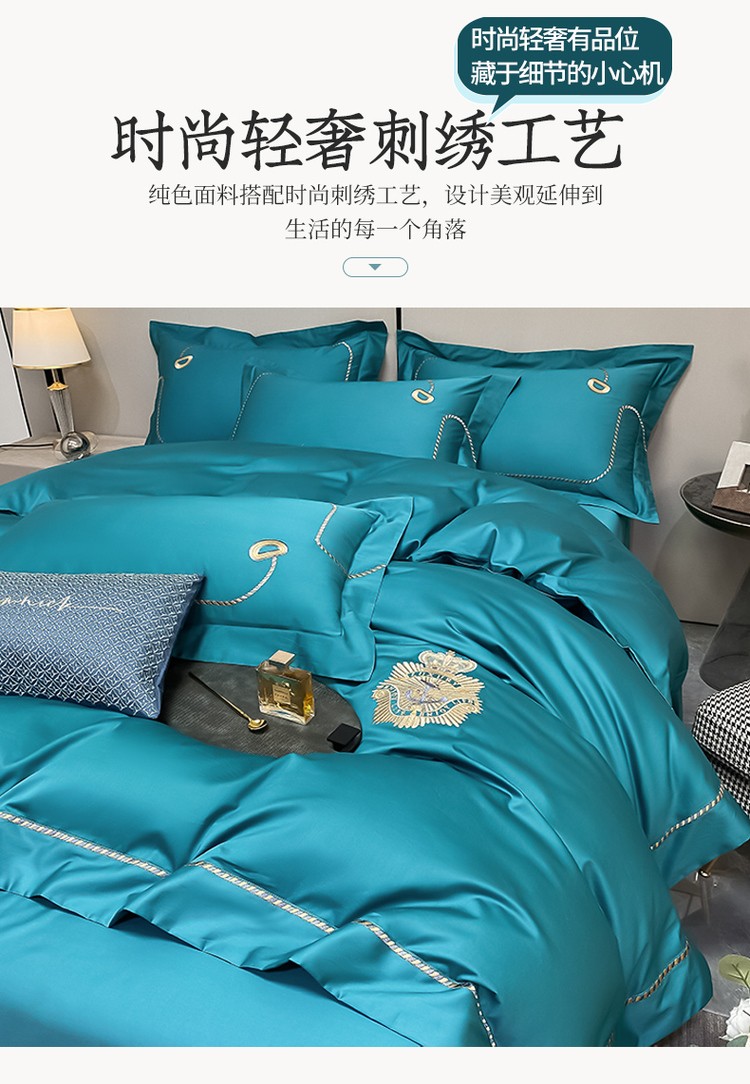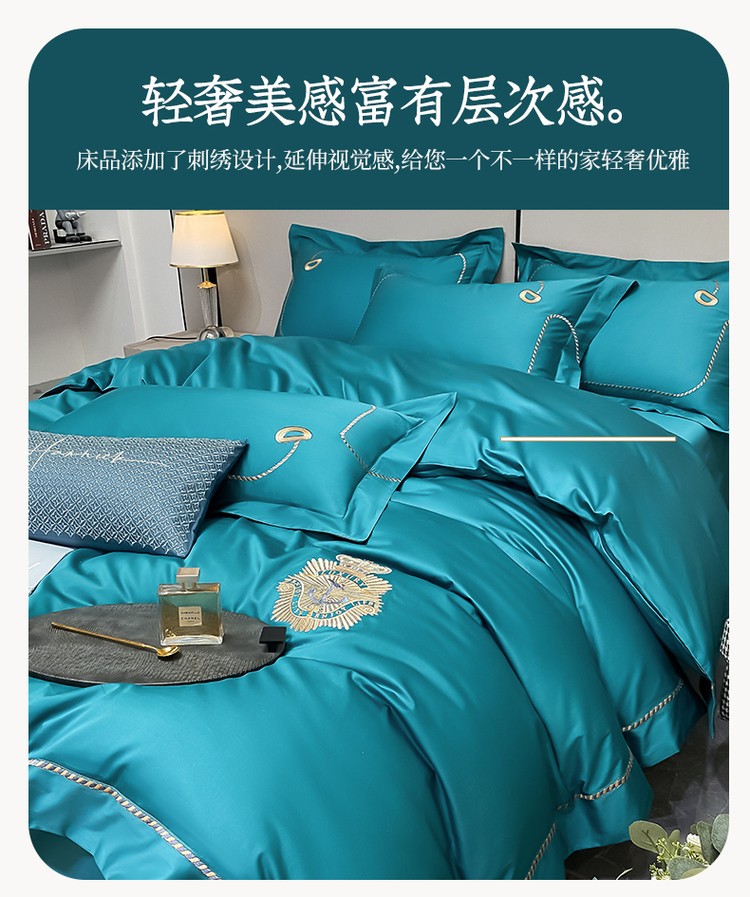 柔觉家纺 天丝刺绣贡缎提花全棉四件套,柔梦-海蓝