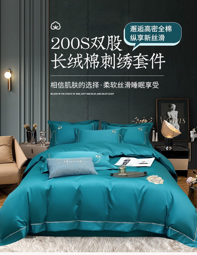 200支新款长绒棉宽边刺绣四件套