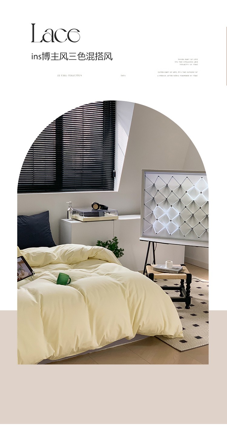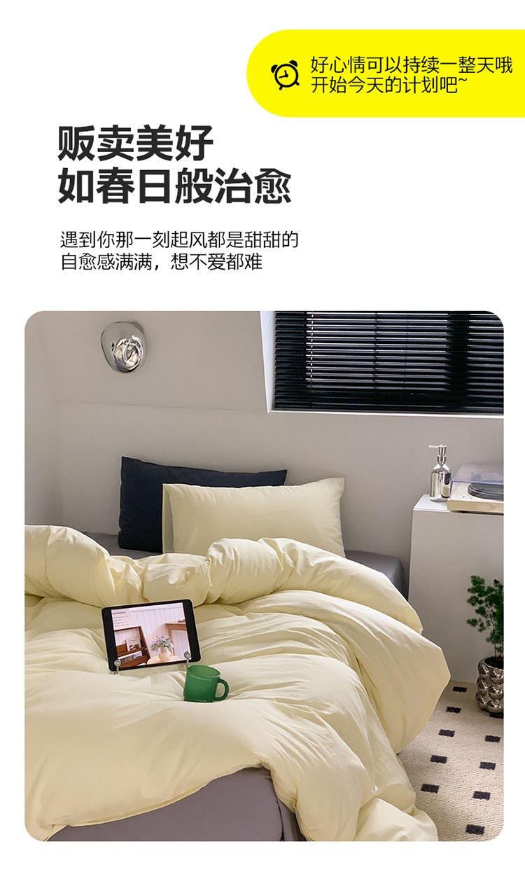 当前位置: 91家纺网 > 商品网购 > 床品套件 > 四件套 > 水洗棉四件套 > 六巷胡同 2023新款ins博主风三色混搭水洗棉四件套 混搭-奶黄藤萝紫