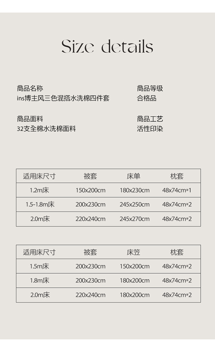 2.0m床笠款四件套 | ¥135.00 |