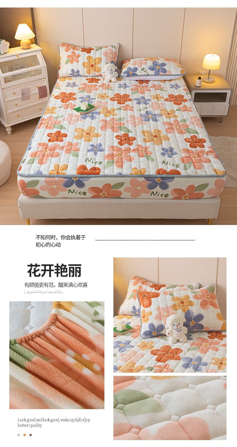 商品名称:格子铺 2023新款印花牛奶绒大豆夹棉床笠 花开艳丽