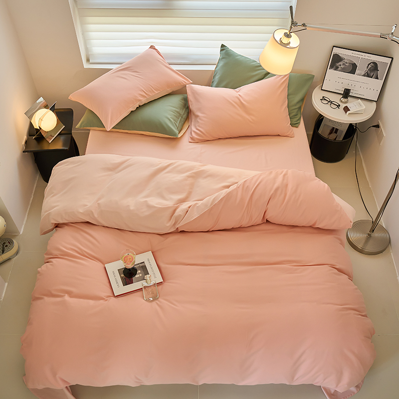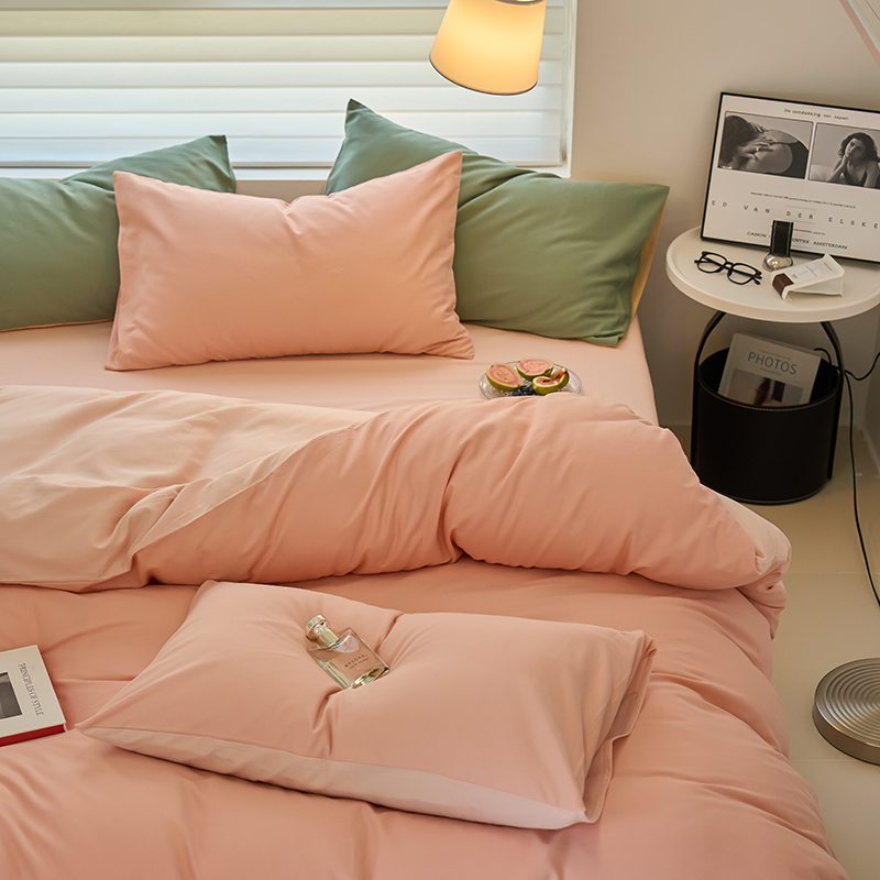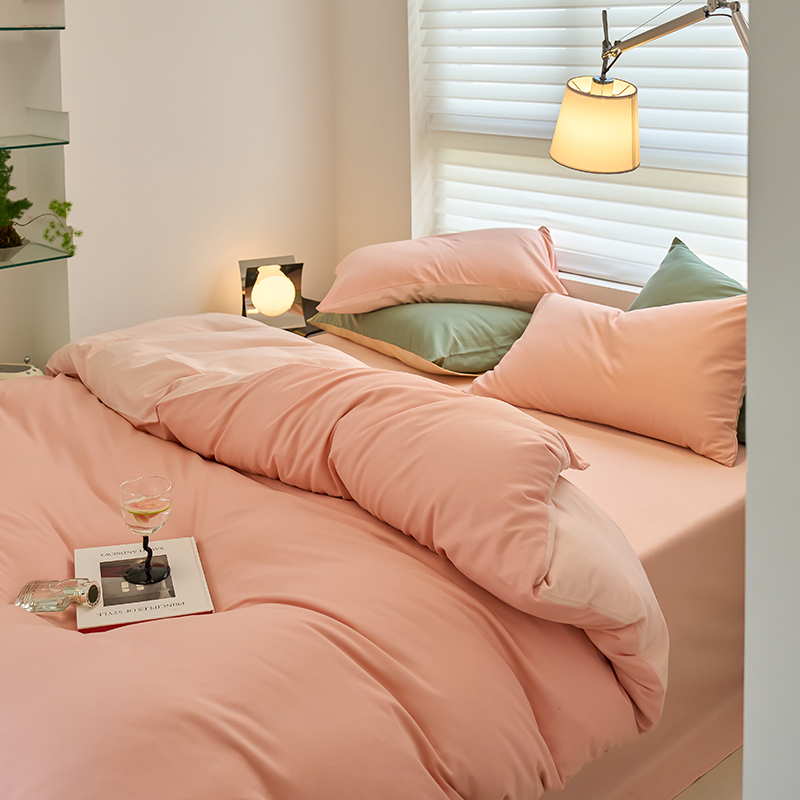 当前位置: 91家纺网 > 商品网购 > 床品套件 > 四件套 > 普通磨毛四件套 > 沐白家居 2023火山小磨毛拼色基础款四件套 粉恋
