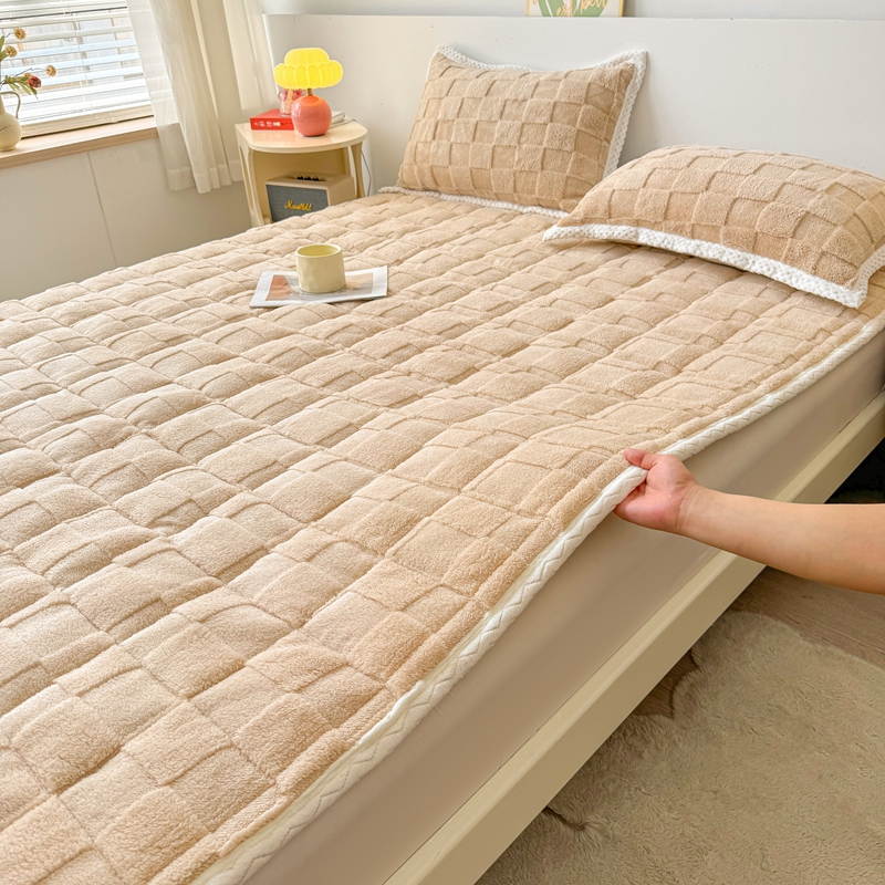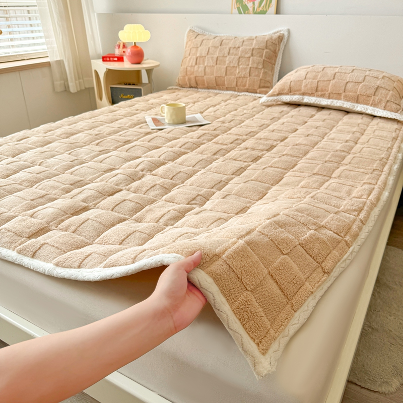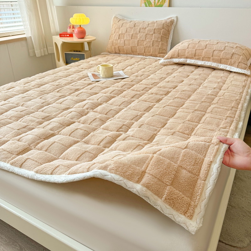 商品名称:湘之帛 2024新款高克重塔芙绒床垫床护垫三件套 拼图-米驼色