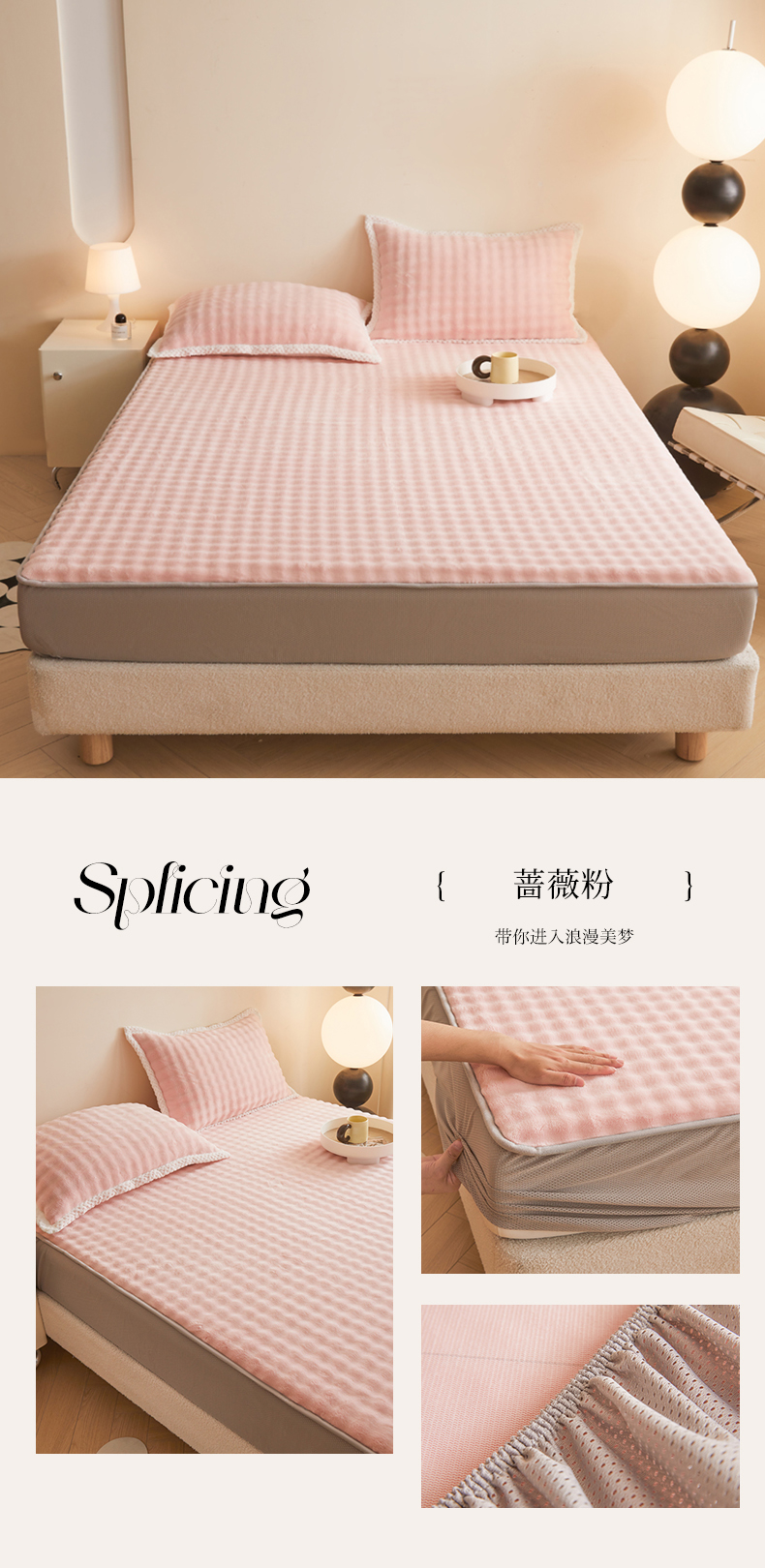商品名称:湘之帛 2024新款高克重牛奶绒泡泡床笠三件套 蔷薇粉