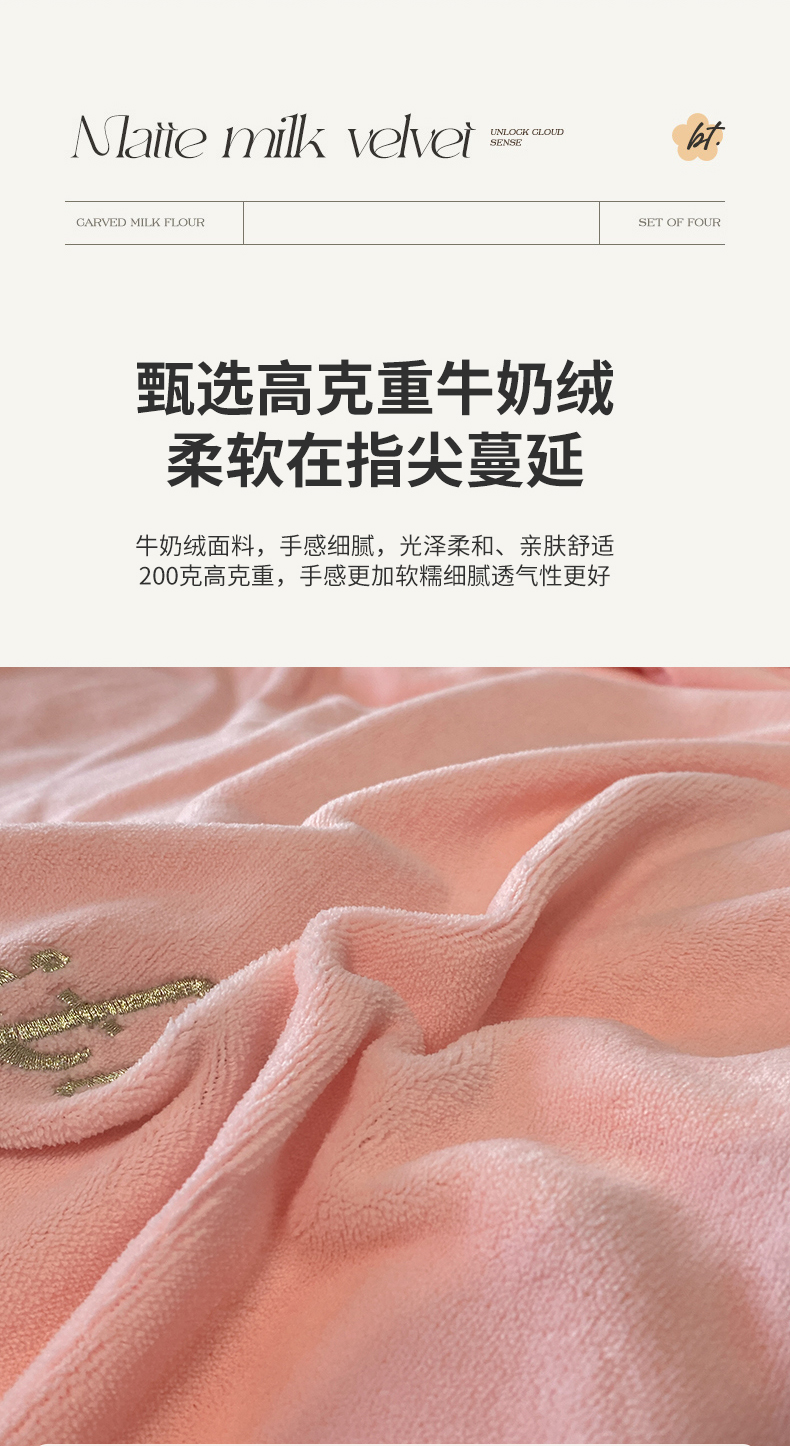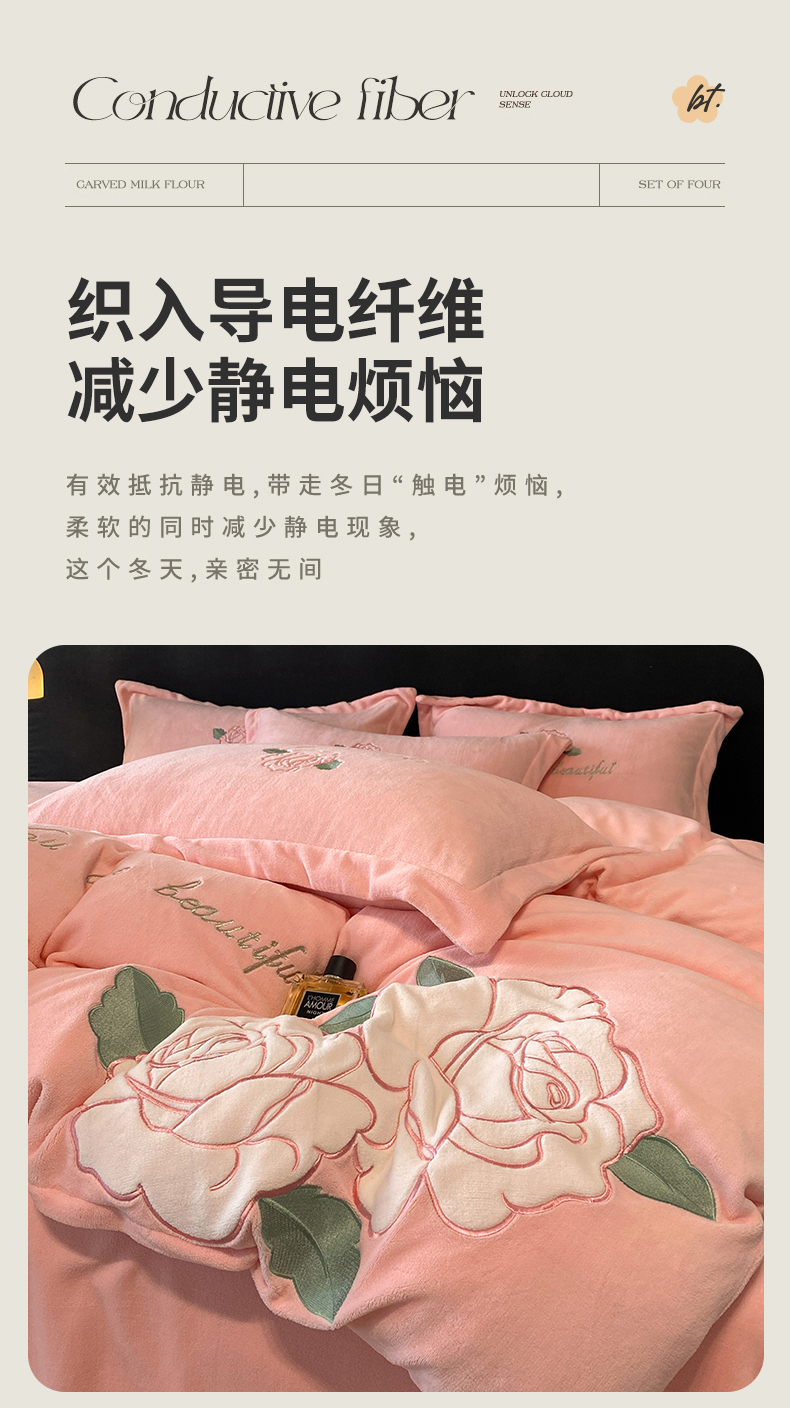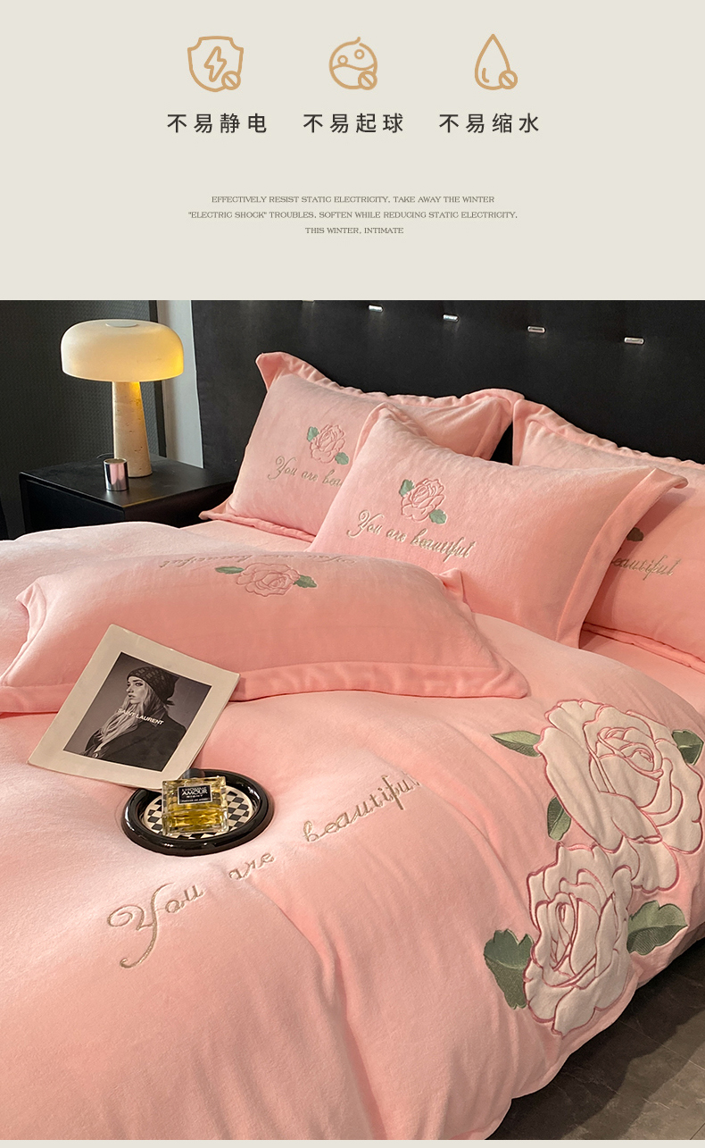 当前位置: 91家纺网 > 商品网购 > 床品套件 > 四件套 > 牛奶绒四件套 > 你好美丽 2025新款200克A类牛奶绒贴布绣大阪四件套雅漾-芬芳 雅漾粉