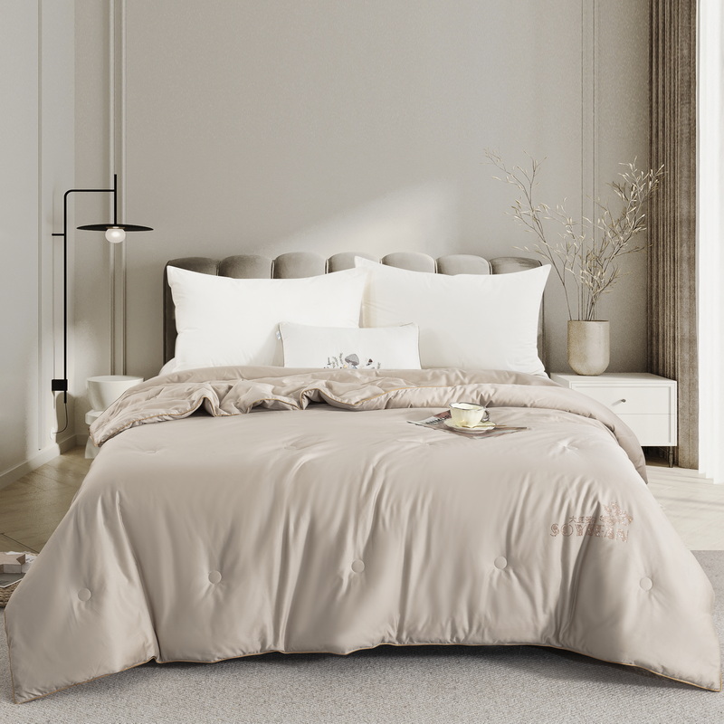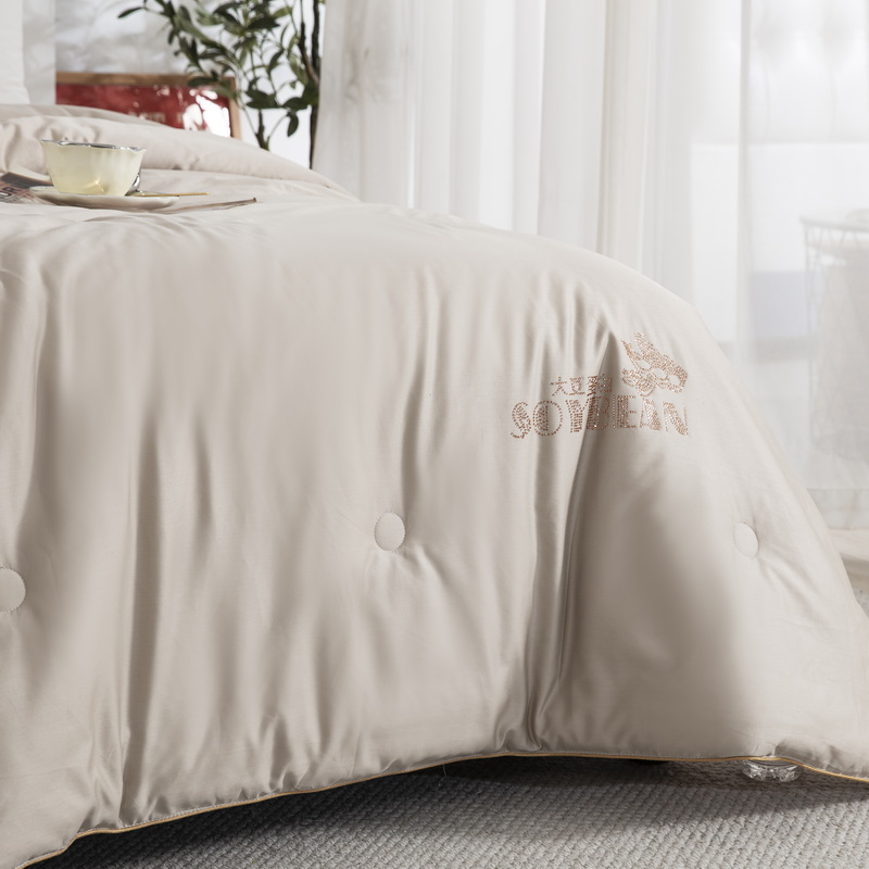 (总)双层纱家居 2024新款100支新疆精梳棉植物大豆蛋白被,卡其色,白色