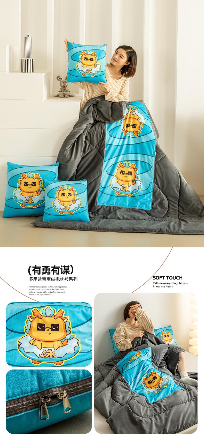 雷人家纺 2024新款多功能印花宝宝绒抱枕被 有勇有谋