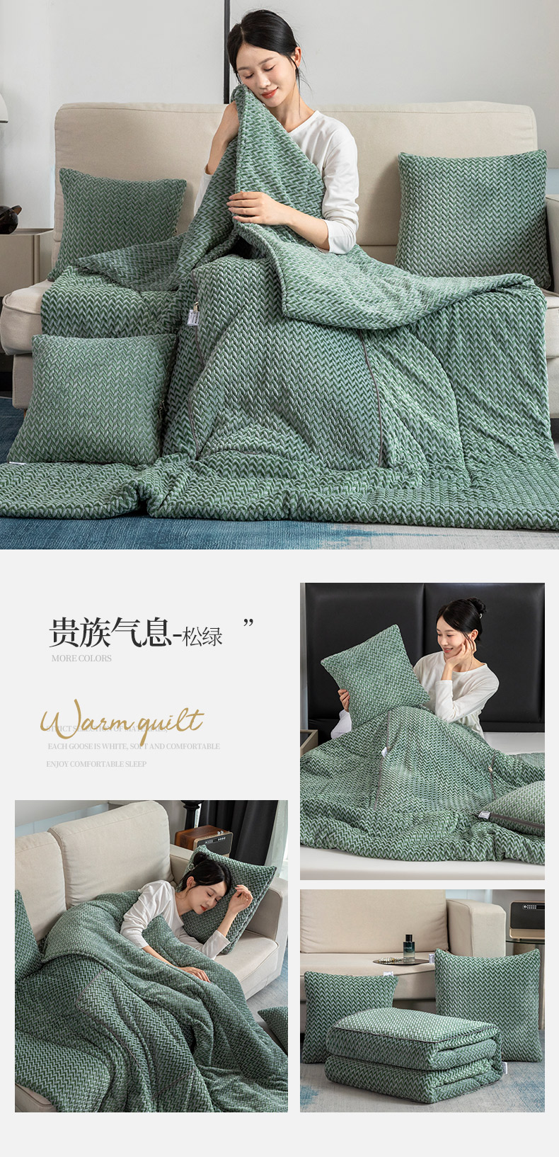 雷人家纺 2023新款时尚塔芙绒多功能加厚抱枕被 贵族气息-松绿