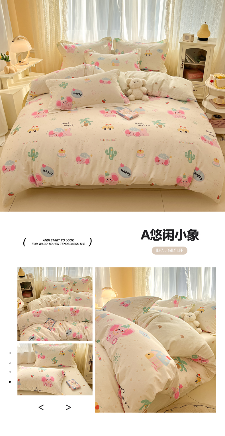 当前位置: 91家纺网 > 商品网购 > 床品套件 > 四件套 > 全棉普通四件套 > 涵宸家纺 2025新款全棉印花四件套 A悠闲小象