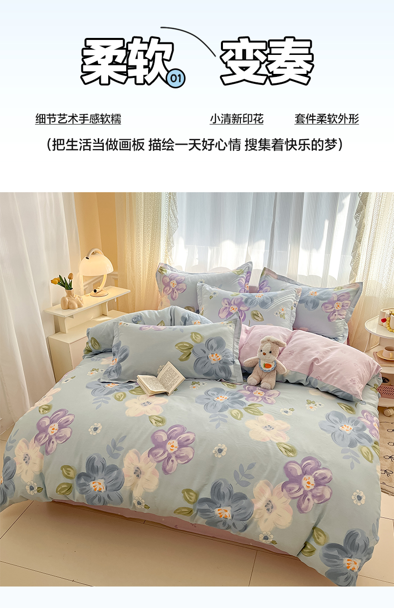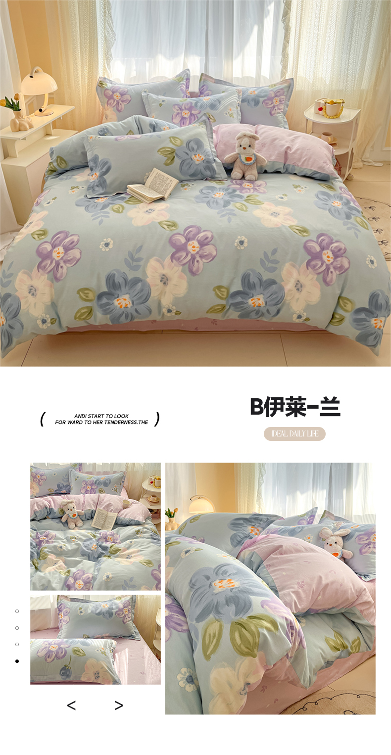 当前位置: 91家纺网 > 商品网购 > 床品套件 > 四件套 > 全棉普通四件套 > 涵宸家纺 2025新款全棉印花四件套 B伊莱-兰