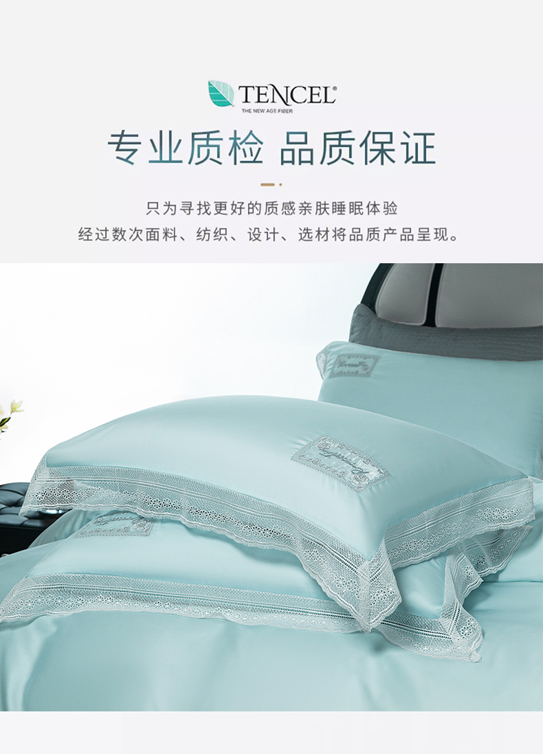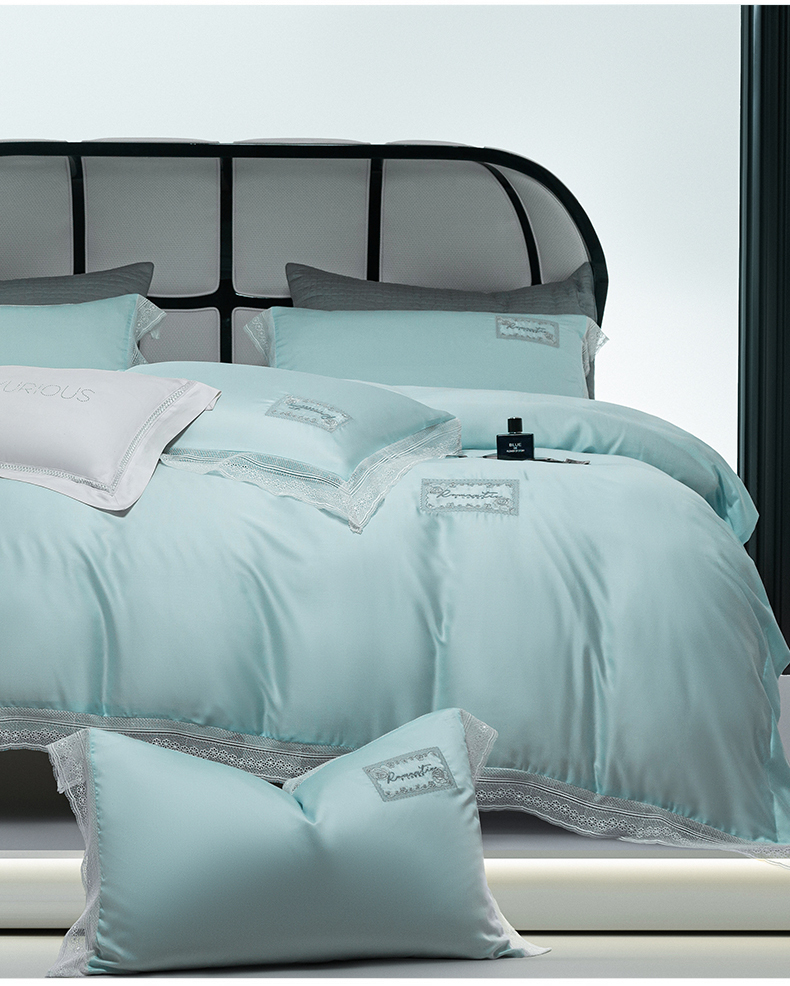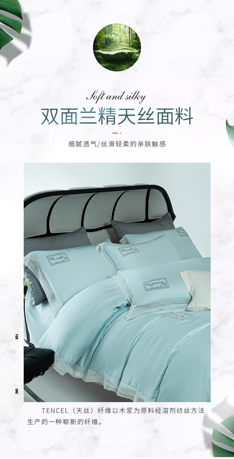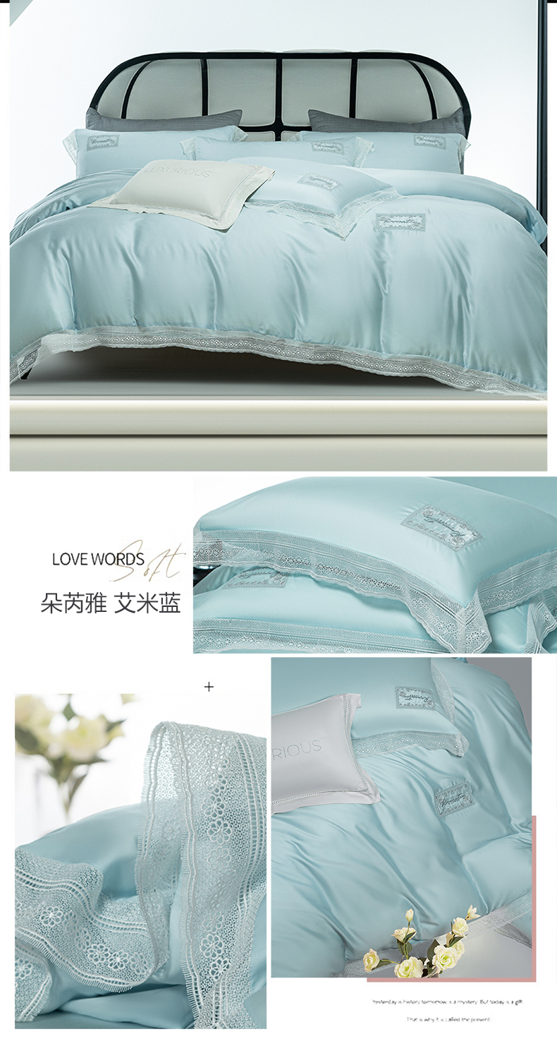 诗黛尔 2025新款春夏100%莱赛尔蕾丝绣花四件套-朵芮雅系列 朵芮雅-艾米蓝