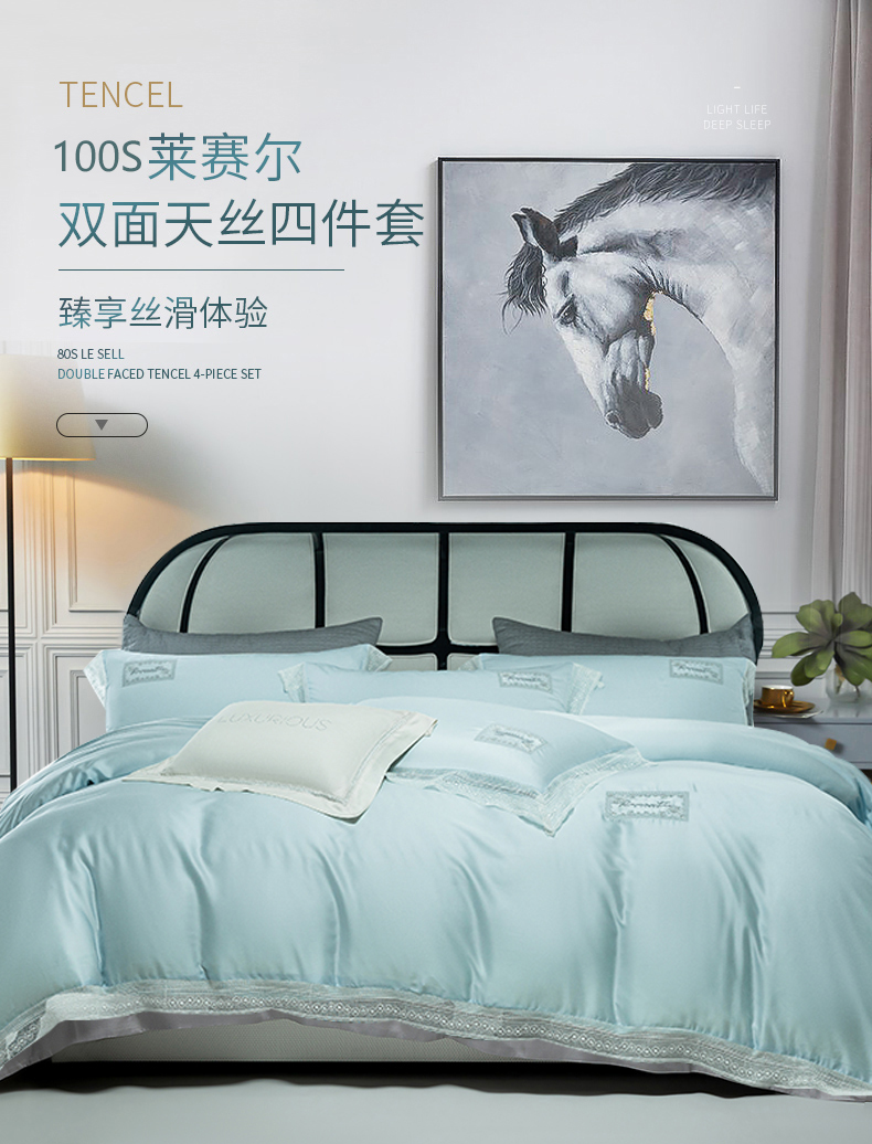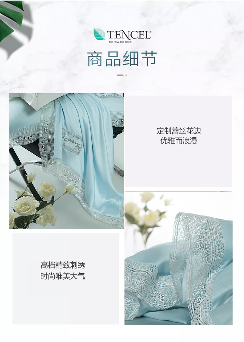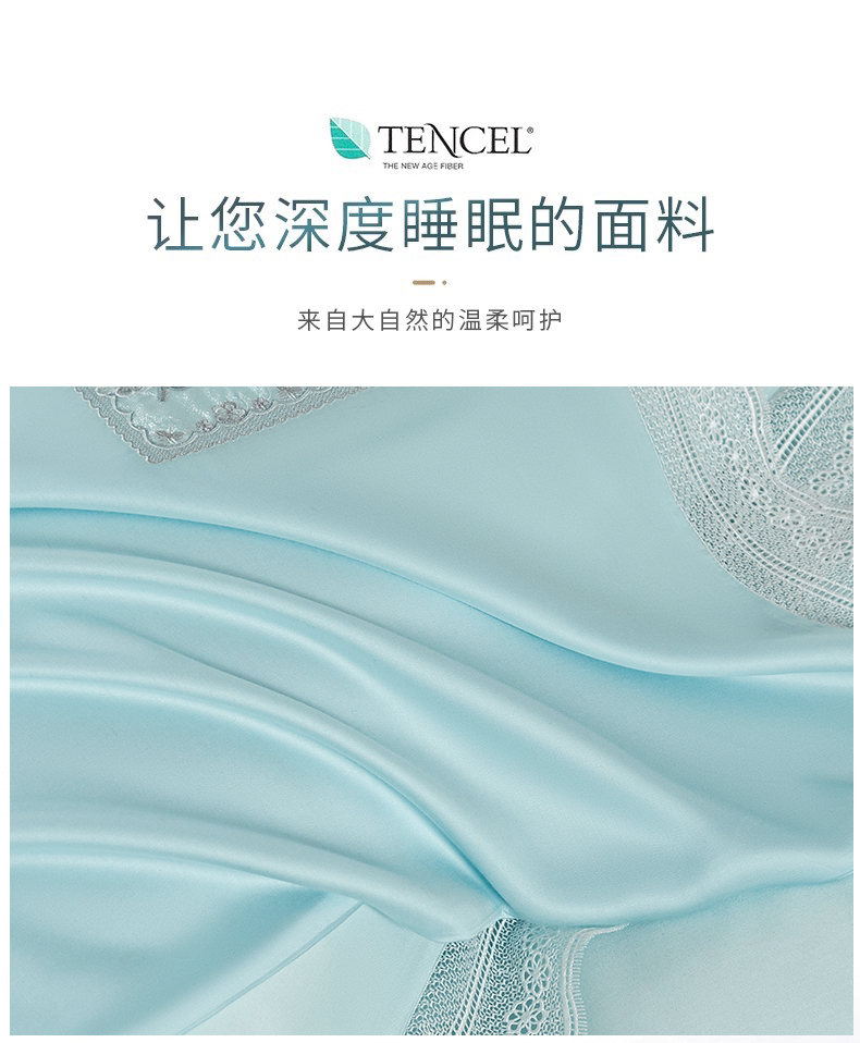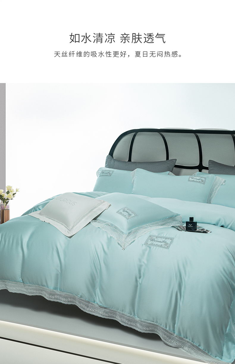 诗黛尔 2025新款春夏100%莱赛尔蕾丝绣花四件套-朵芮雅系列 朵芮雅-艾米蓝