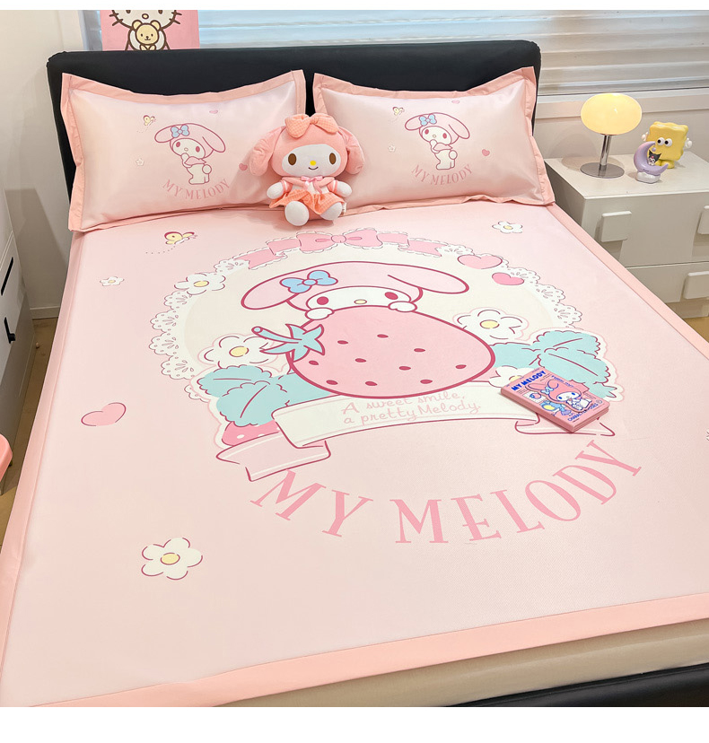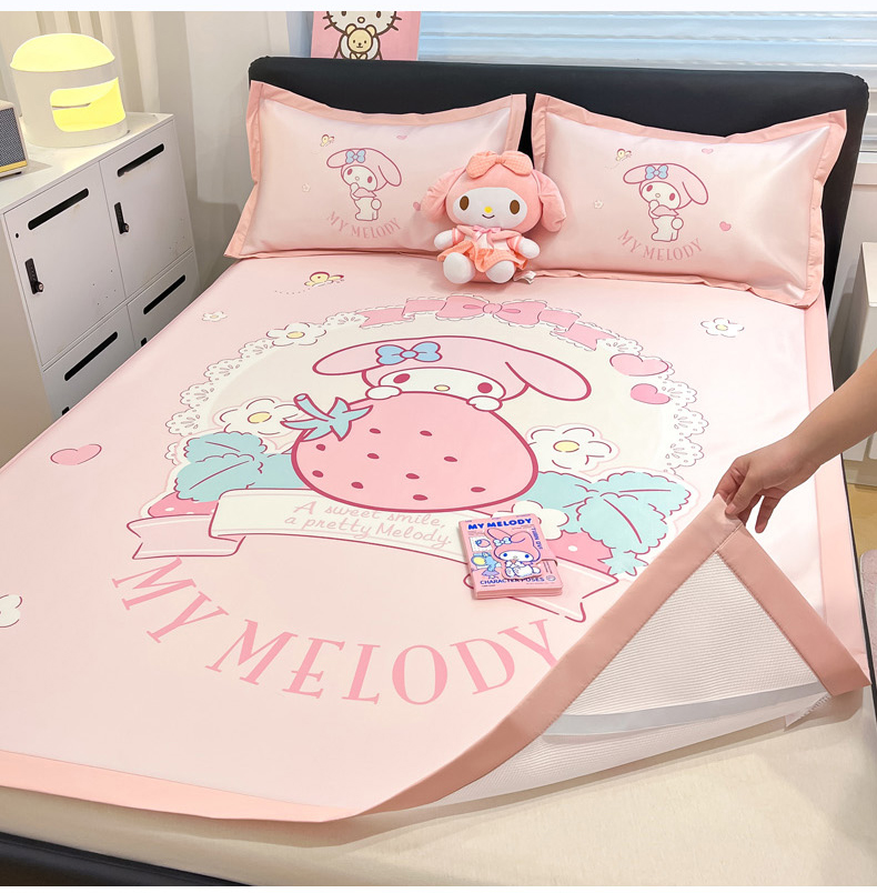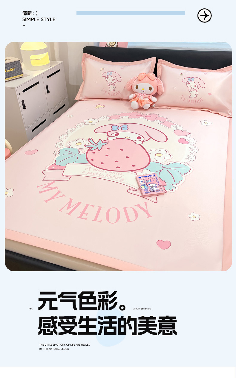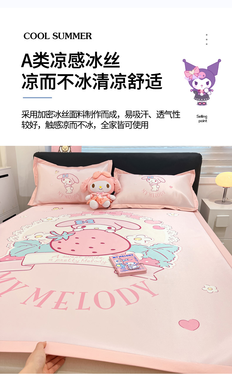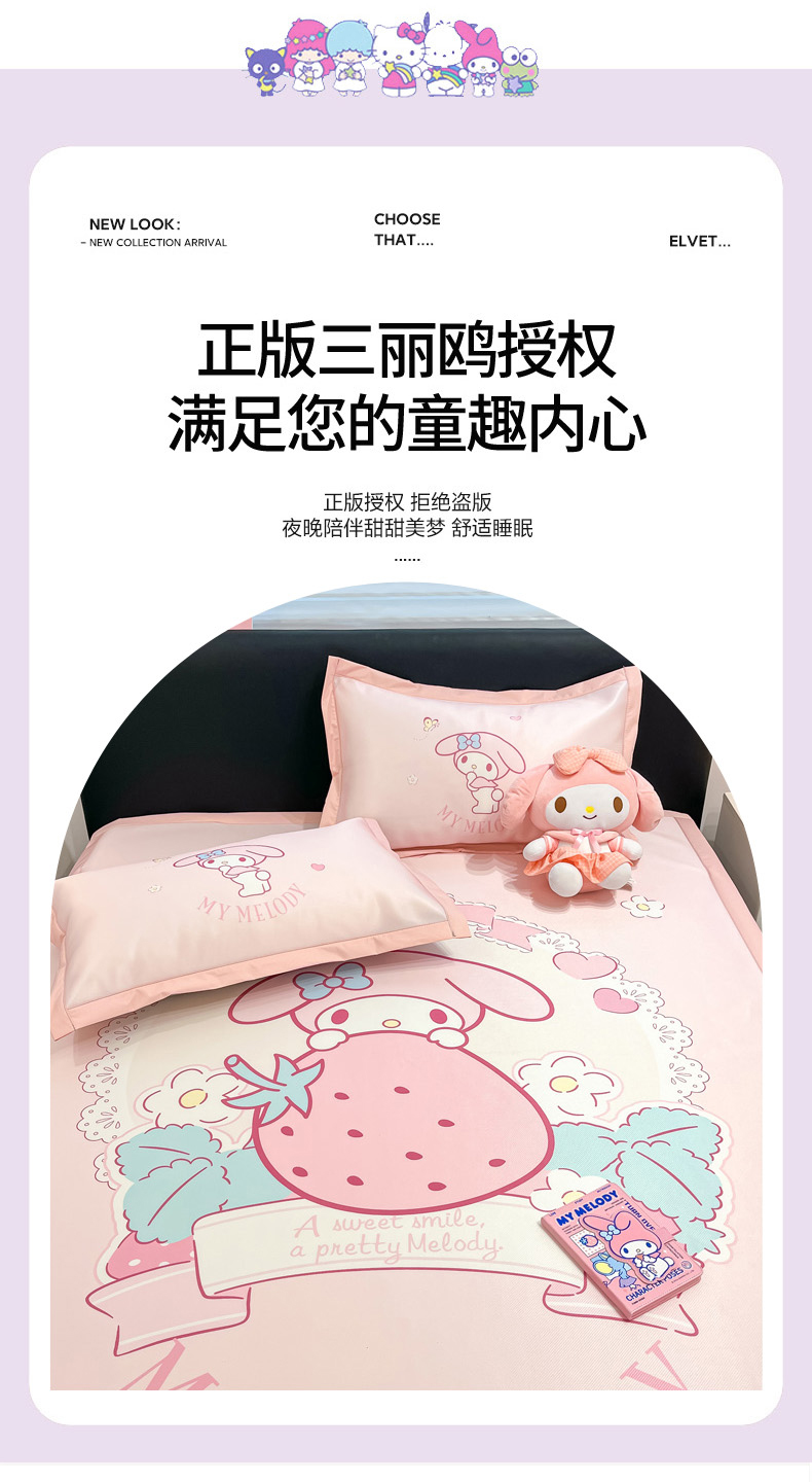 当前位置: 91家纺网 > 商品网购 > 床品套件 > 四件套 > 其它四件套 > 2025新款正版授权A类大版数码印花三丽鸥可机洗1200D冰丝凉席席子凉席可组合针织棉夏被四件套-平铺款 平铺款-粉兔美乐蒂