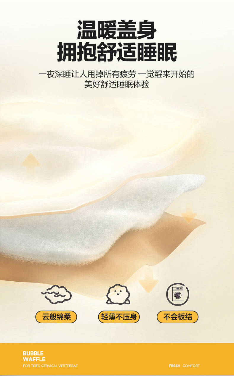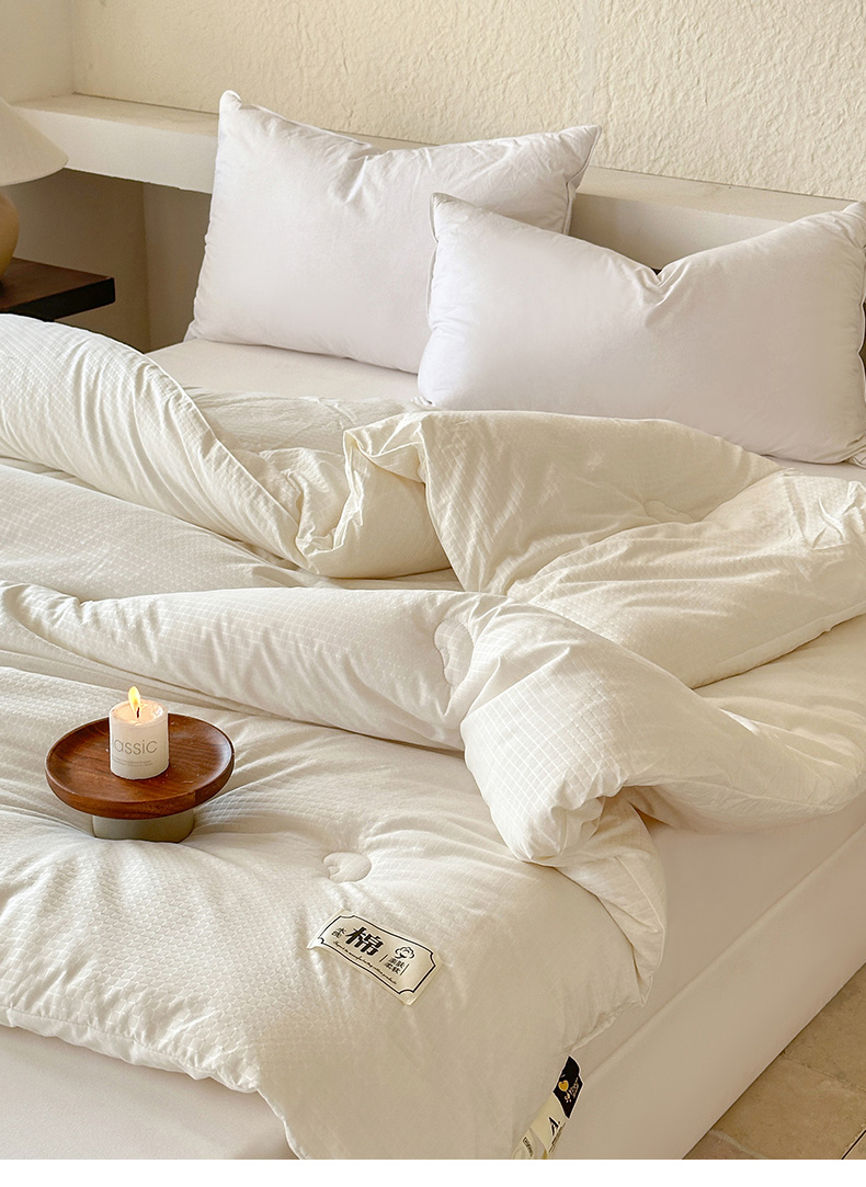 • 91家纺网 家纺一手货源 找家纺 蓝雀翎 2025新款原棉针织棉华夫格大豆被子被芯 米白